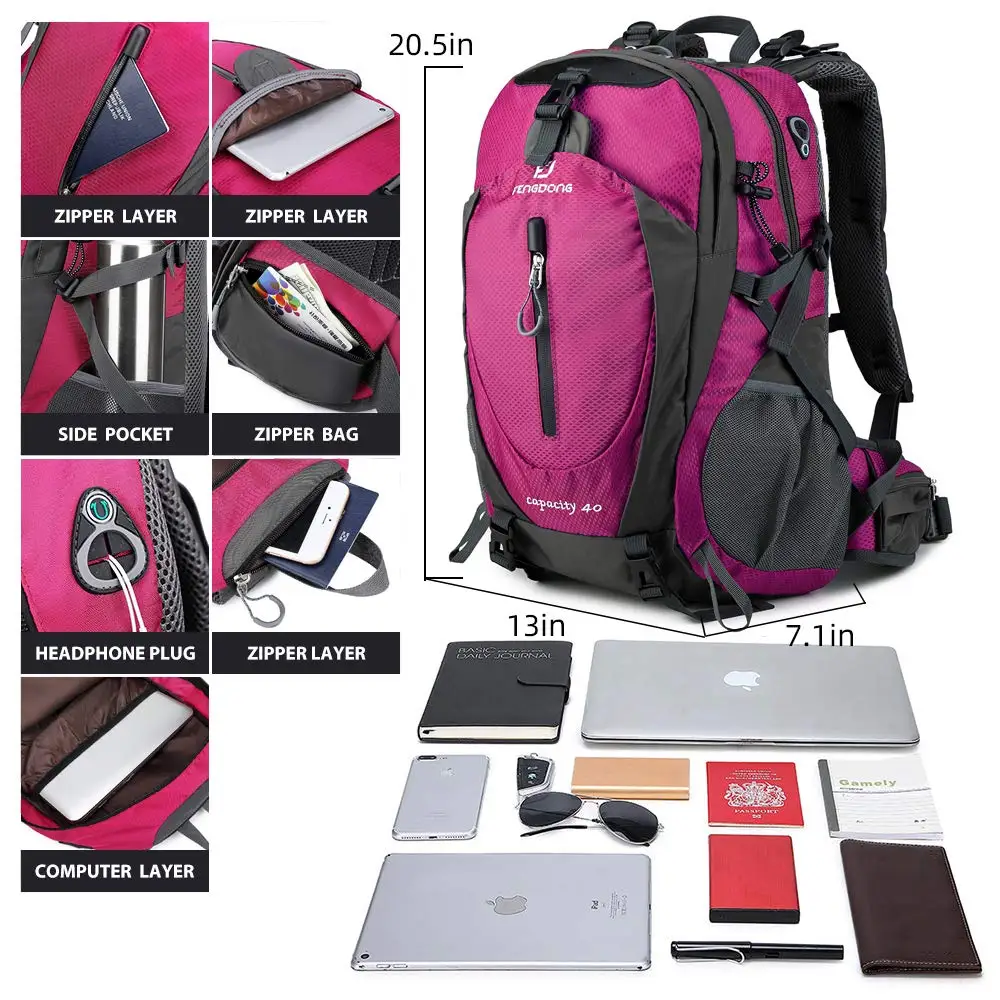 40L Waterproof Lightweight Hiking,Camping,Travel Backpack for Men Women