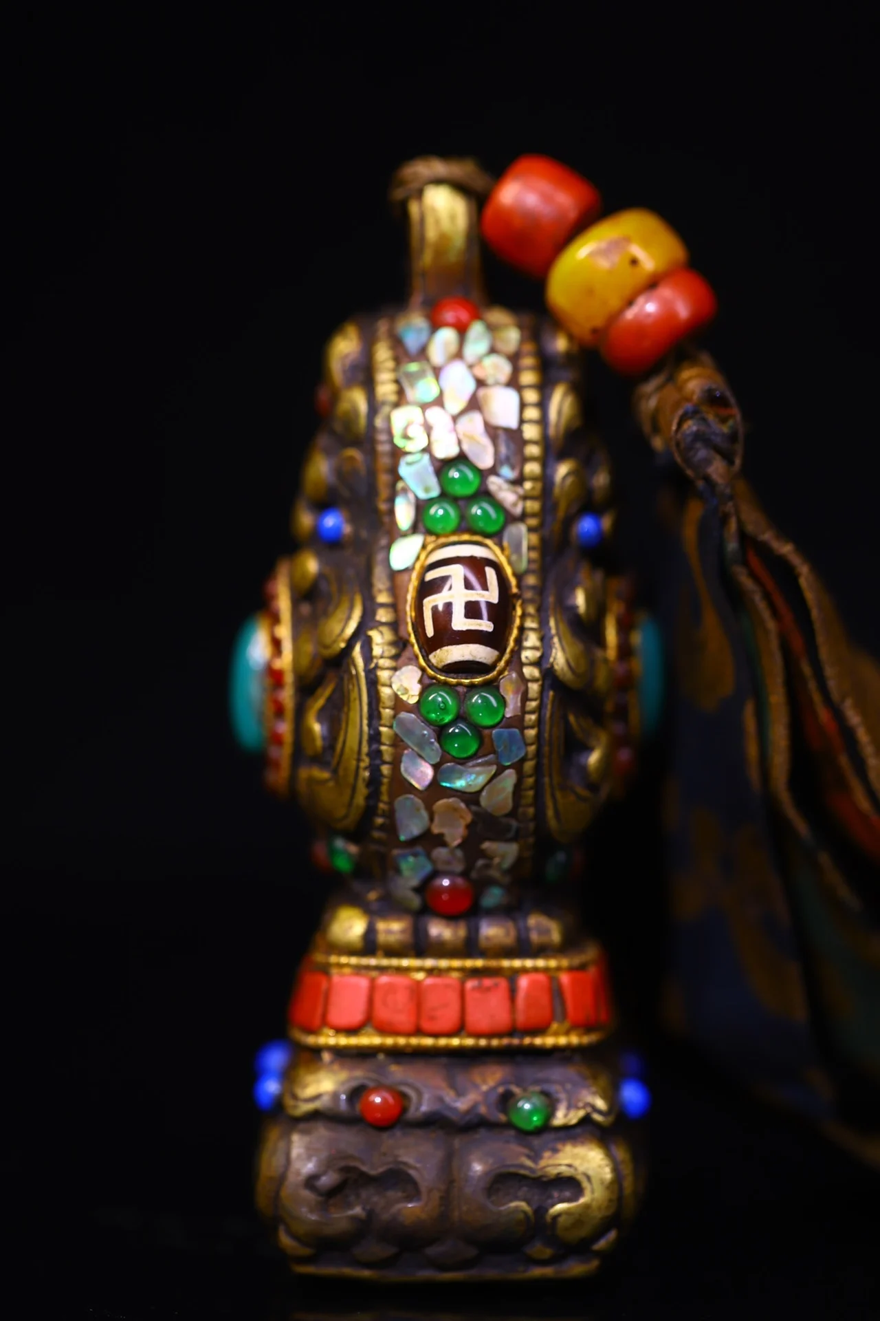 Materials: Old Bronze Cinnabar Mosaic Gem gZi Beads shell