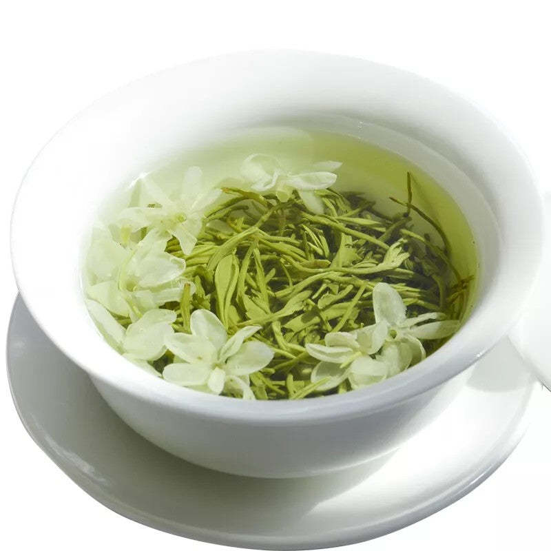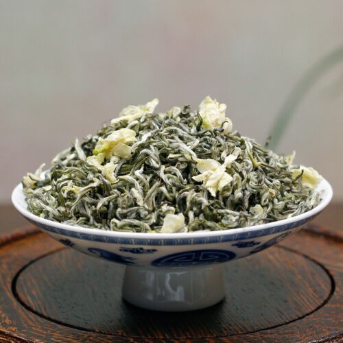 Name: Bi Tan Piao Xue Tea ( Green tea & Jasmine tea ) Origin : Sichuan, China Grade : Good Storage : stored in a dry place and no direct sunshine Suggested Usage: Use about 2 grams of tea leaves (1-2 teaspoons) for every 150ml of water, If you like it light use 1 teaspoon every 150ml. Steep tea leaves in hot water at 70°c (158°F) to 80°c (176°F) for 1/2-1 minute for the first and second brewing. Gradually increase steeping time and temperature for subsequent brewing. About Bi Tan Piao Xue Tea Tippy and used high-quality jasmine elaborately produced, and maintain the Fresh Green leaf characteristics, Gao mean long, outstanding quality, aroma and taste are unique green broth. The name means "Snowflakes", so called because the tea leaves resemble snowflakes falling from the sky when infused. Tea connoisseurs typically do not like jasmine scented teas as they are usually made from low quality tea leaves. Snowflakes is an exception. This rare jasmine-scented tea is produced from the finest quality Green tea leaves from Sichuan province of China. Recommended to all Green tea lovers and a must try if you like jasmine-scented teas. Bi Tan Piao Xue ( snowflakes over aquamarine pond): This tea is processed from choice green tea and white blossoms of jasmines. When in brew, this tea will unfold gradually into magpie-beak shape. Its tea water is clear and green, dotted with white jasmines that delight your eyes. Its taste is pure and aromatic, light and emanating.