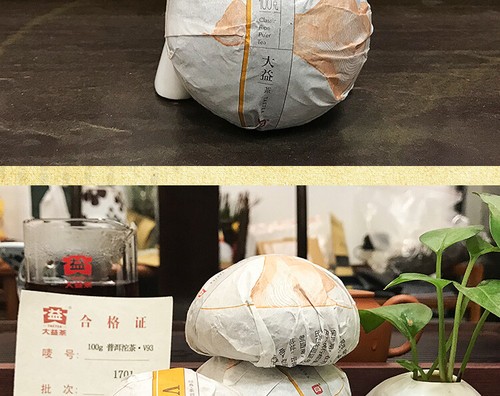 V93 Yunnan Menghai TAETEA Dayi Pu-erh Chinese Pu'er Tea Tuo Cha 2017 Ripe 500g Puer Category: Ripe pu er, shu puerh Net Weight: 100g one piece. 5 pcs/bag, The price is only for 500g. Production date: 2017 , 1701 batch Storage time: The longer the better. List of ingredients: Big leaves drying green maocha Manufacturer: Menghai Tea factory, TAETEA Group Origin: Xishuangbanna Yunnan, China mainland V93 ripe Pu Er tea was first released in 2005, a high classic, quality ripe Pu Er tea. Why it is called V93? Because it inherits the special recipe of high quality Menghai Pu Er tea produced in 1993; V is the code summary for the V93, V2, V4 series of Pu Er tea, whose recipes are the combination of past classic Maocha techniques, quality characters, taste and aroma with the new processing and invention.