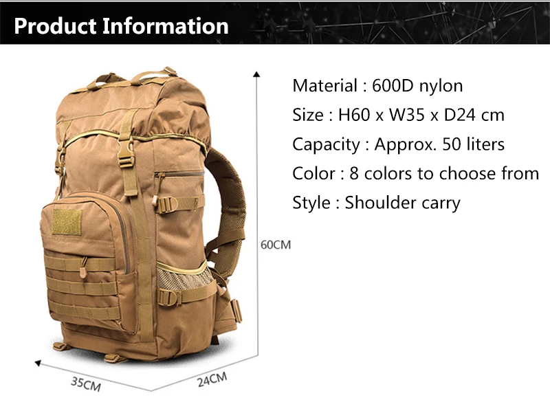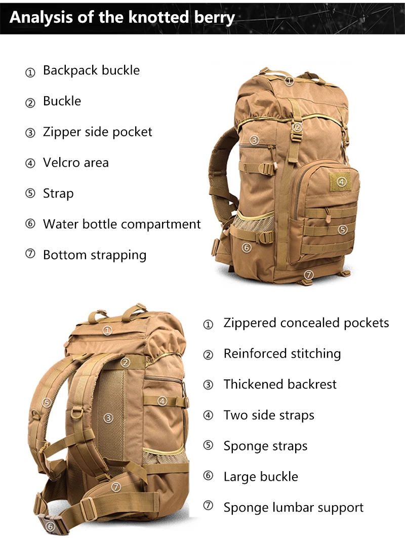 50L Backpack Large Tourism Military Tactics Large Capacity for Men Nylon Army Climbing Hiking Travel Mochila Camouflage Backpack