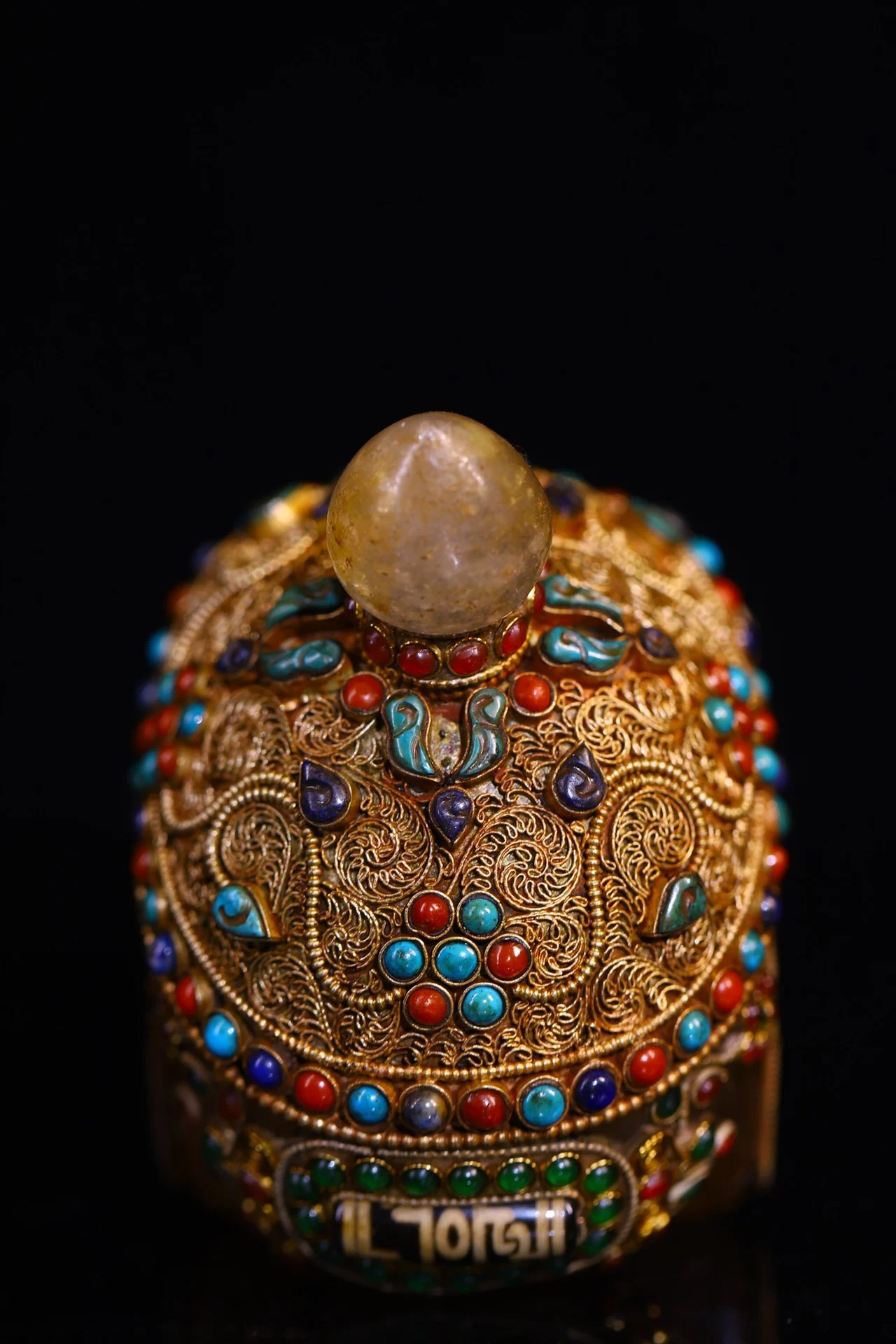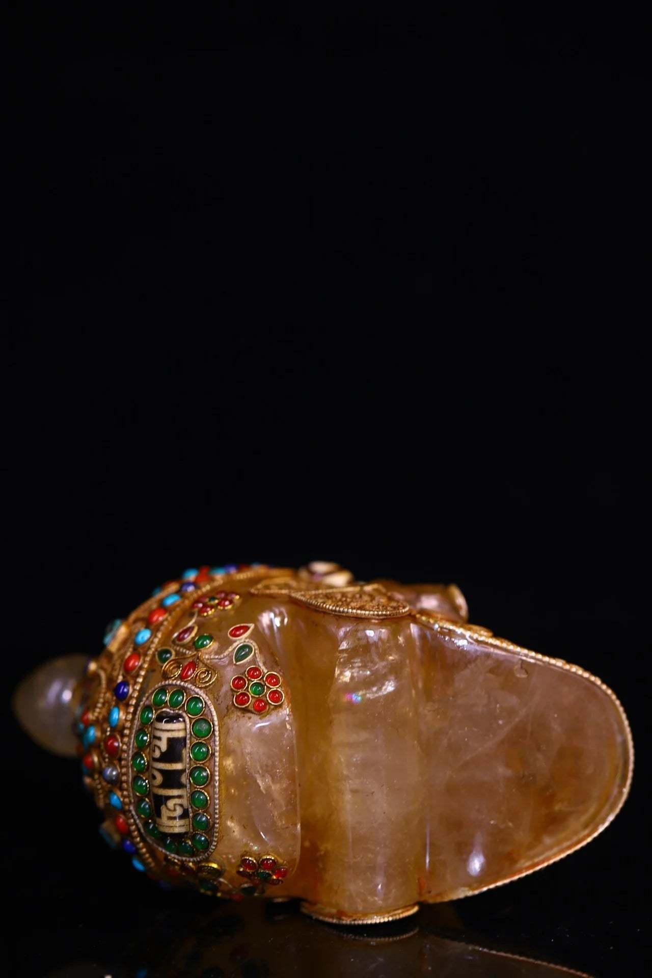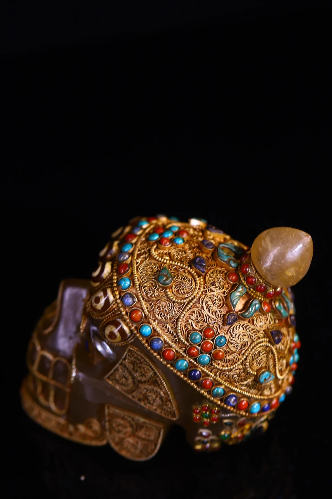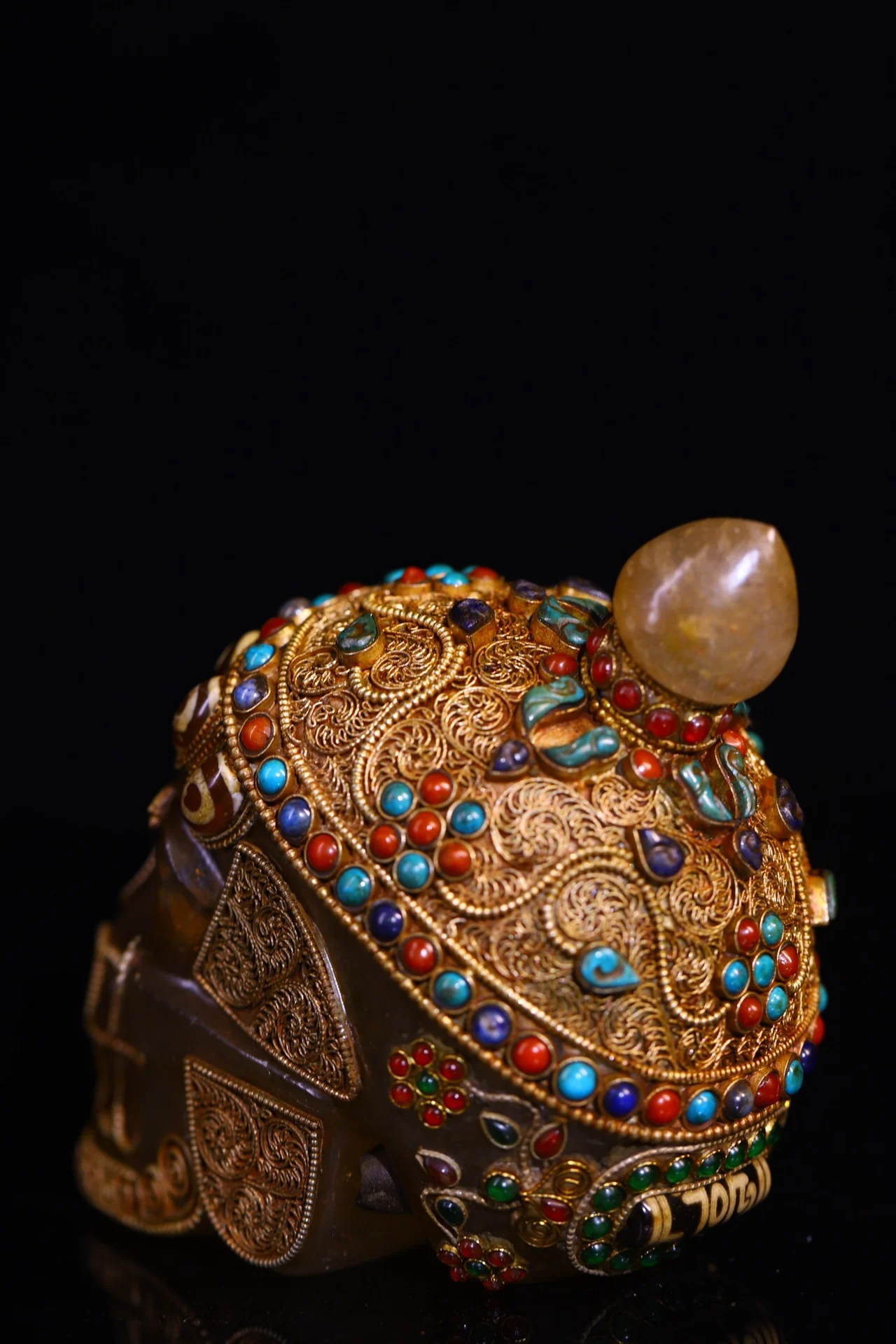 5"Tibetan Temple Collection Old Natural Crystal Cinnabar Tibetan silver Mosaic Gem gZi Beads Skull Head Worship Hall Town house