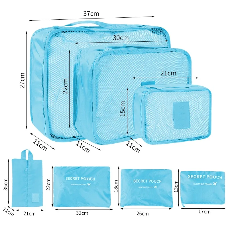 Size:Large net bag: 40cmx31cmx12cm Large bag: 34cmx27cm Medium mesh bag: 31cmx28cmx12cm Medium bag: 27cmx26cm Small mesh bag: 30cmx31cmx12cm Small bag: 21cmx17cm