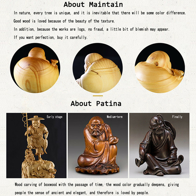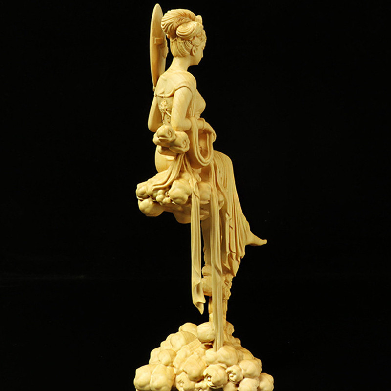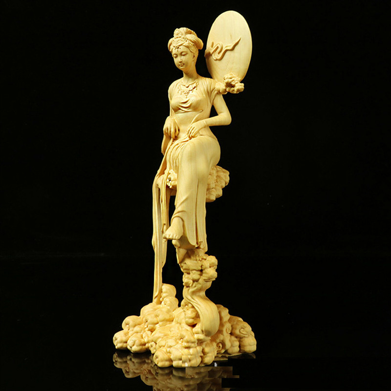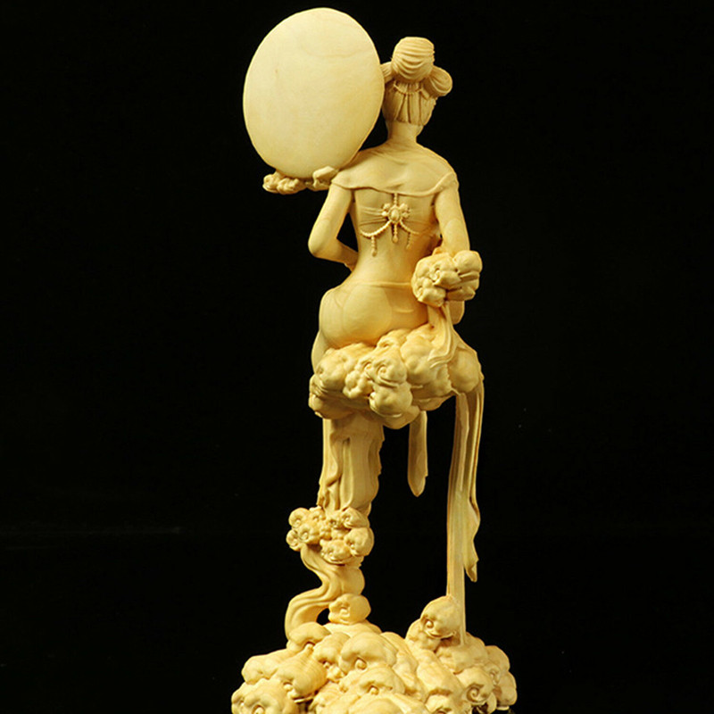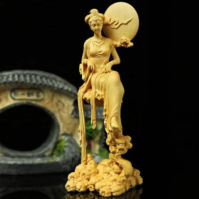 7" Boxwood Wood Carving Chang'e Statue Mythological Figure Sculpture Collection
