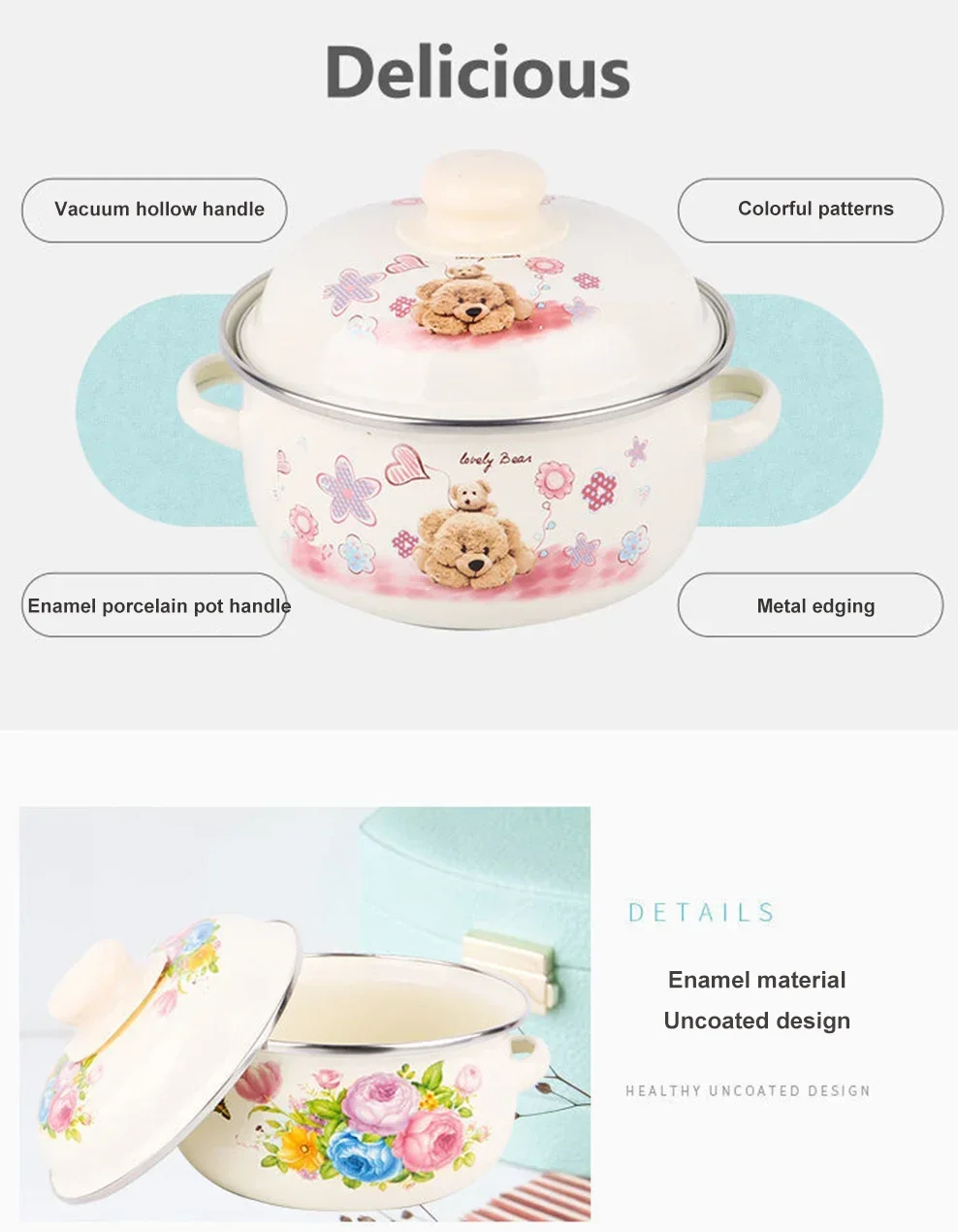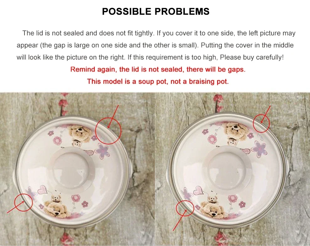 --The lid of this enamel pot is smaller than the pot, and it will be looser when it is covered, but it will not affect normal use. If you mind, please do not place an order!