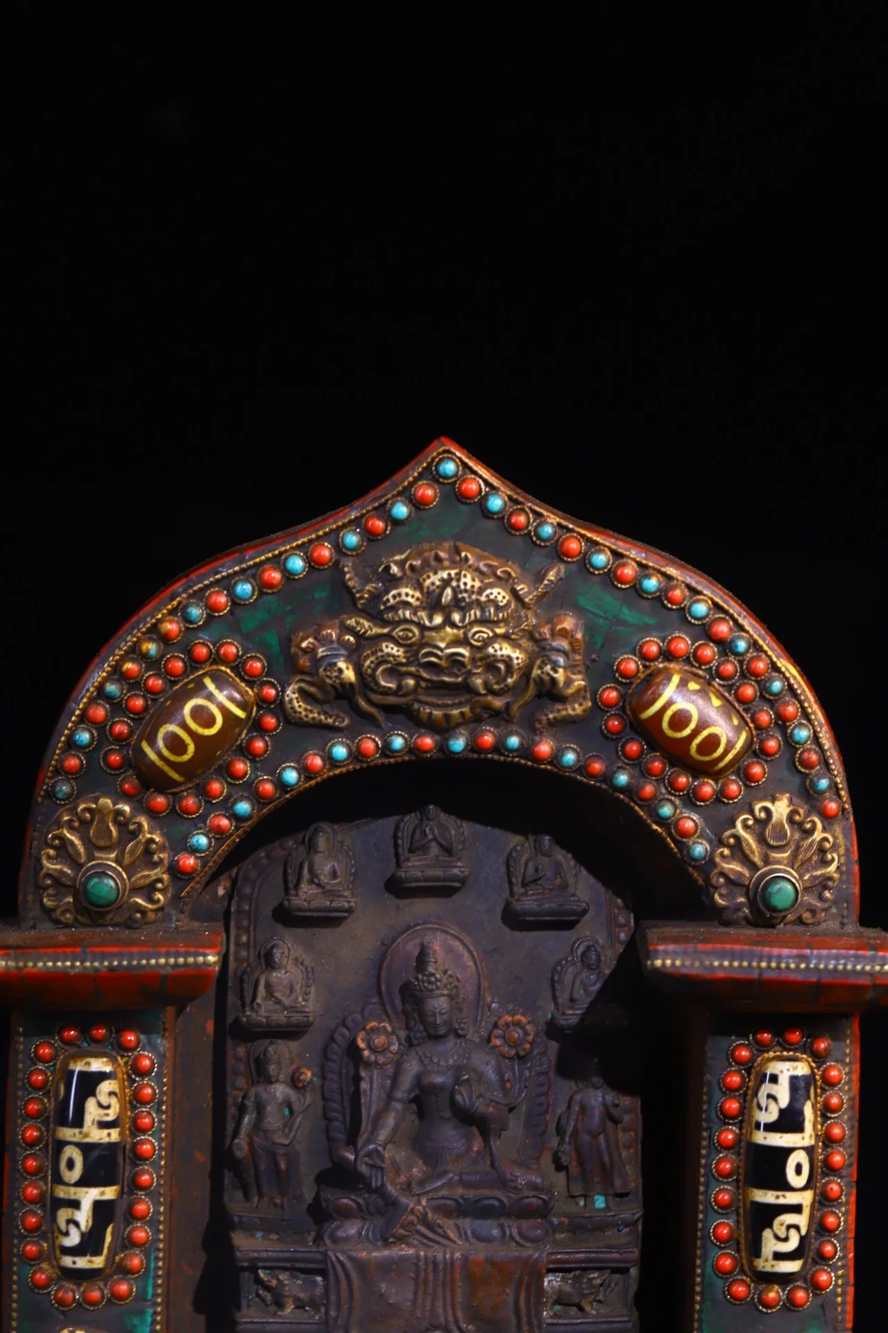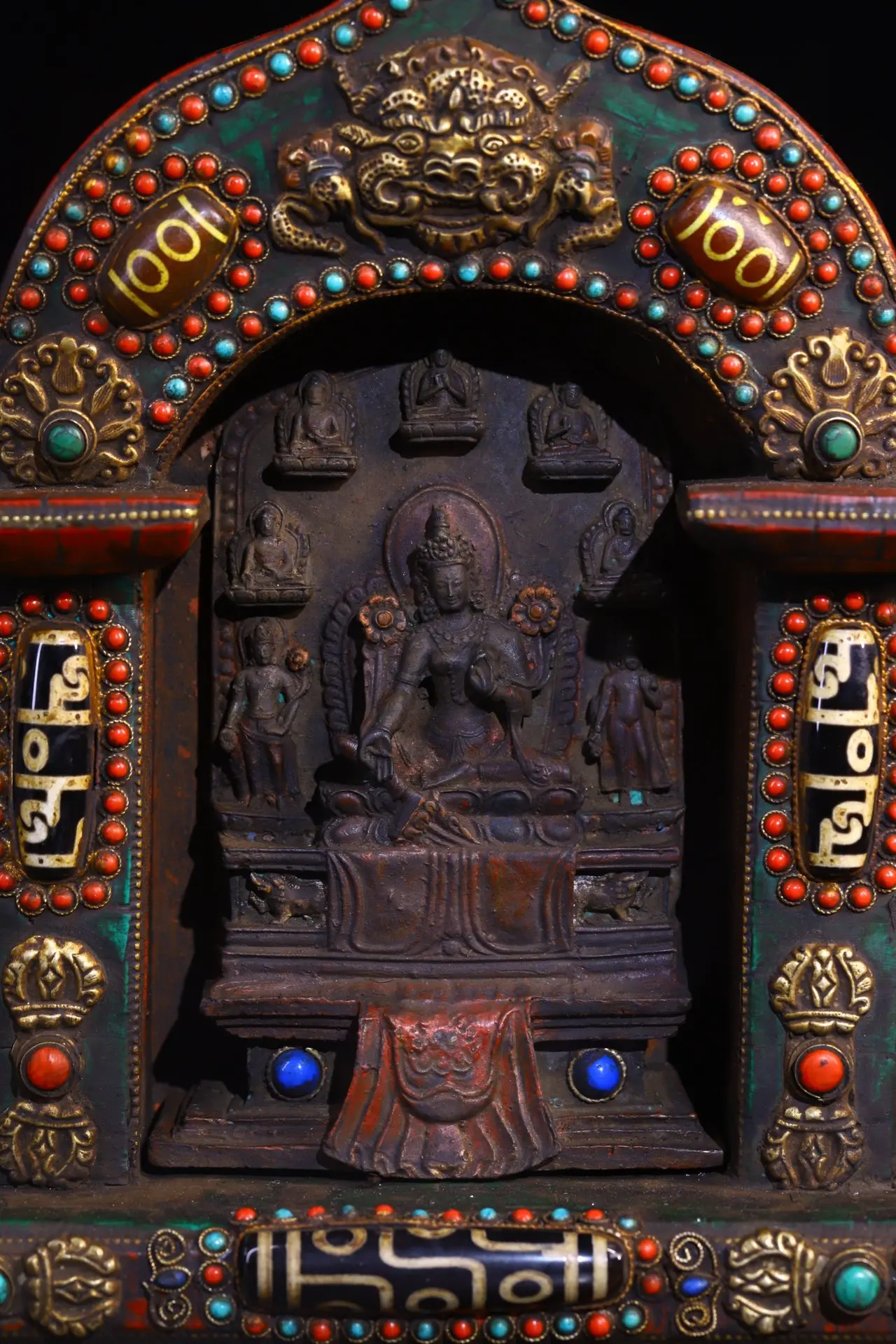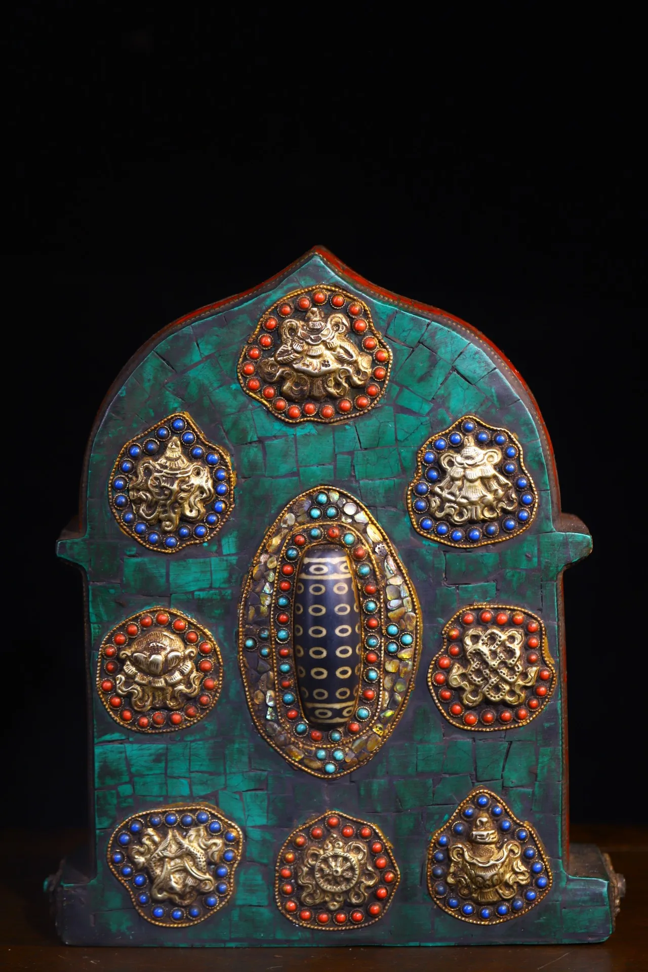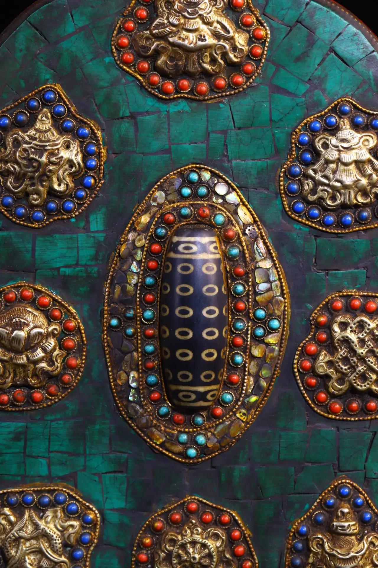 Materials: Old Old Bronze Mosaic Gem gZi Beads Turquoise Painted Tibetan silver gilding filigree