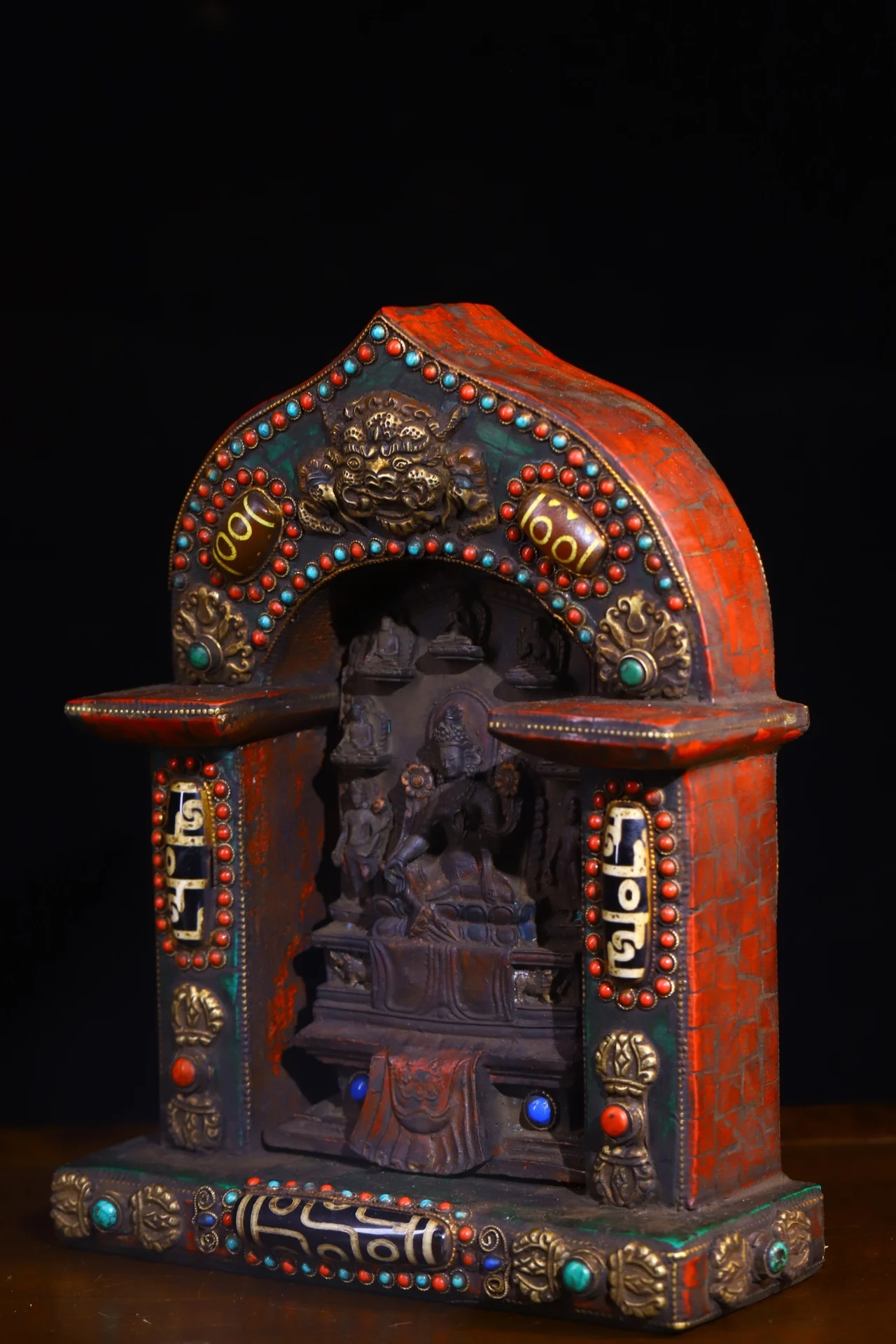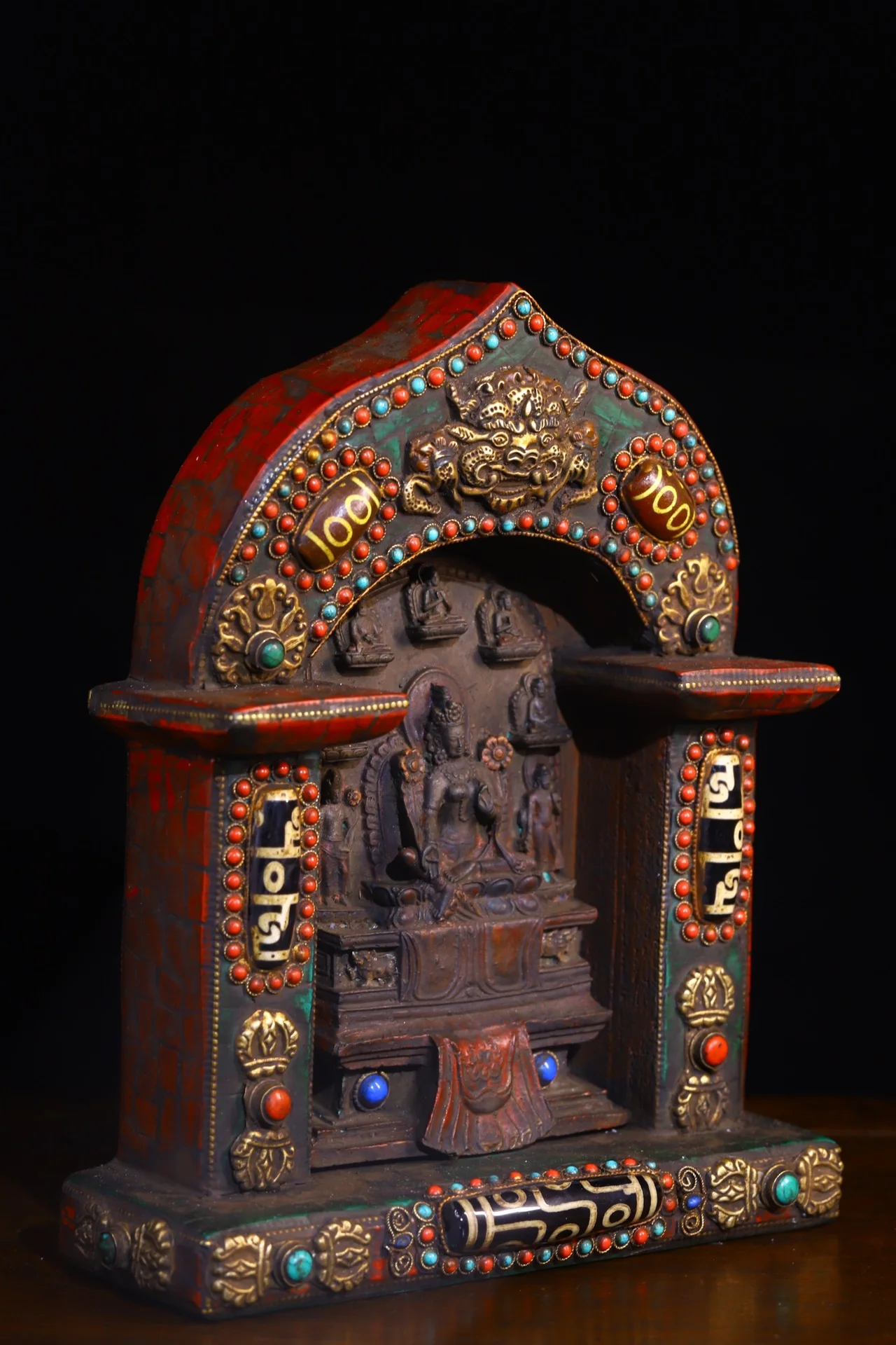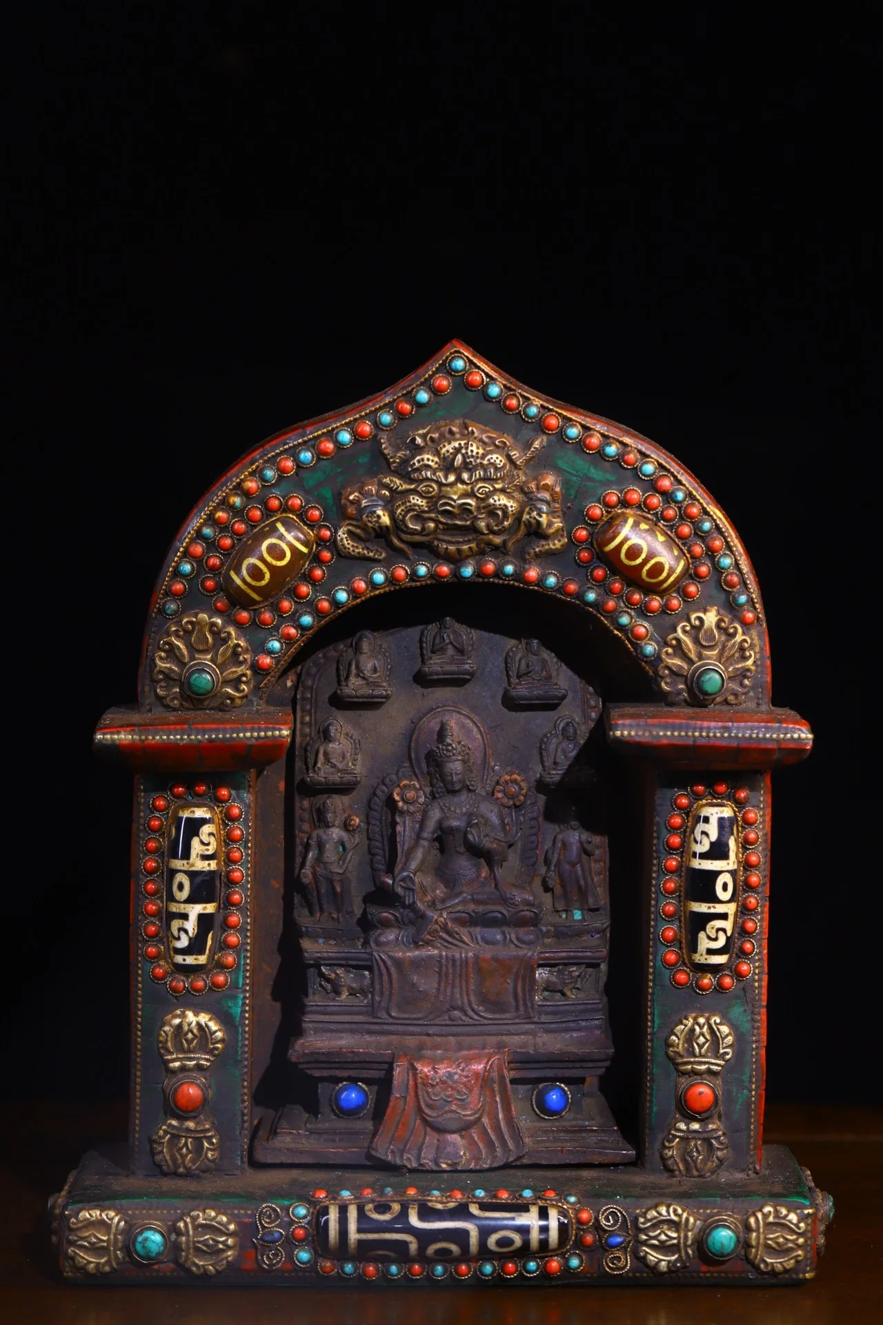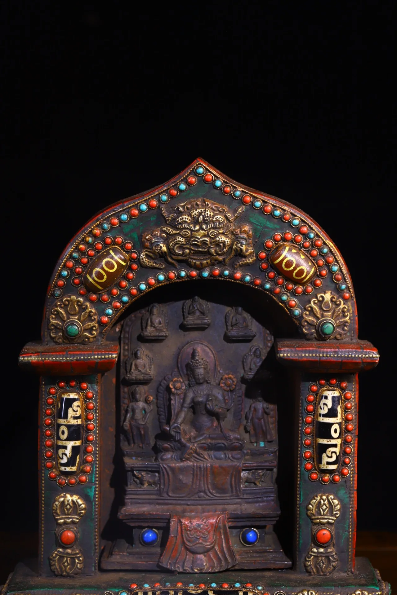 Materials: Old Old Bronze Mosaic Gem gZi Beads Turquoise Painted Tibetan silver gilding filigree