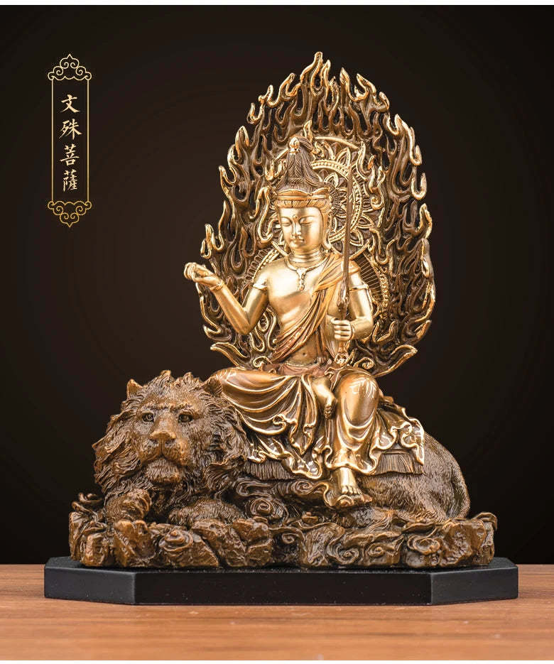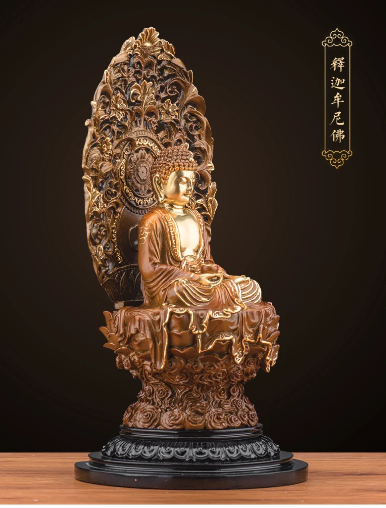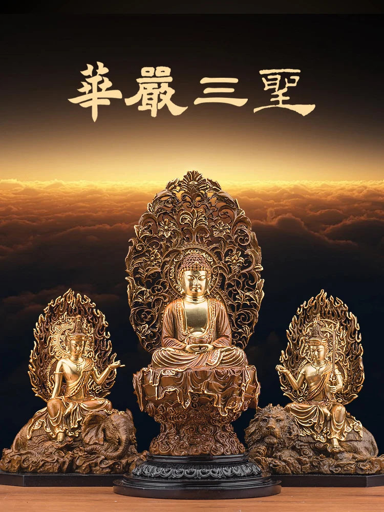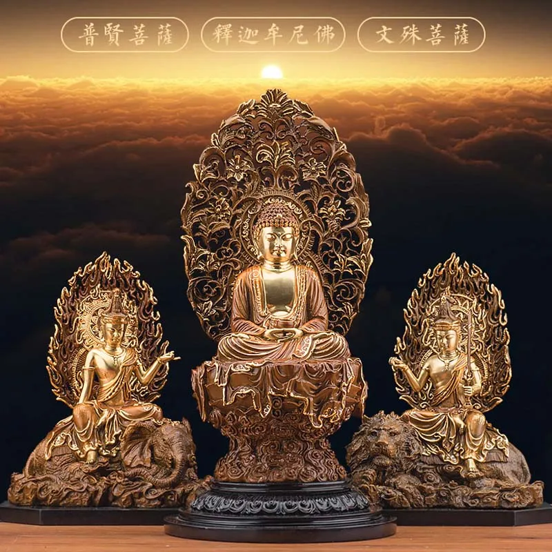 A Set 3P Asia HOME Temple Shrine Protection Tantra Buddhism Amitabha Sakyamuni Buddha Manjusri Samantabhadra PU SA Bronze statue