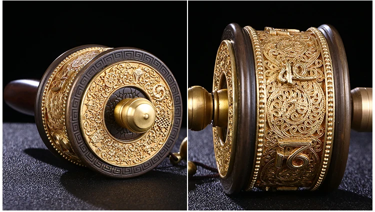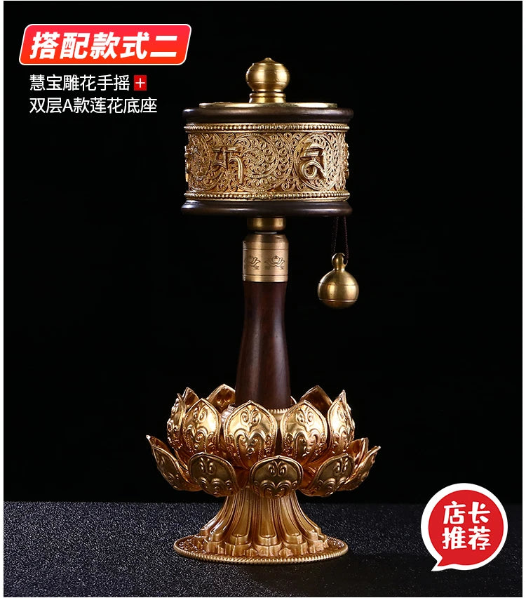 A set # high grade Buddhism recite chant scriptures Mantra Turning Scripture prayer wheel + copper lotus flower base