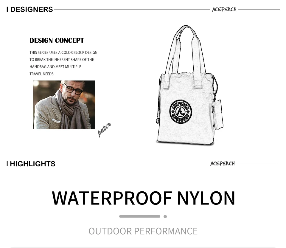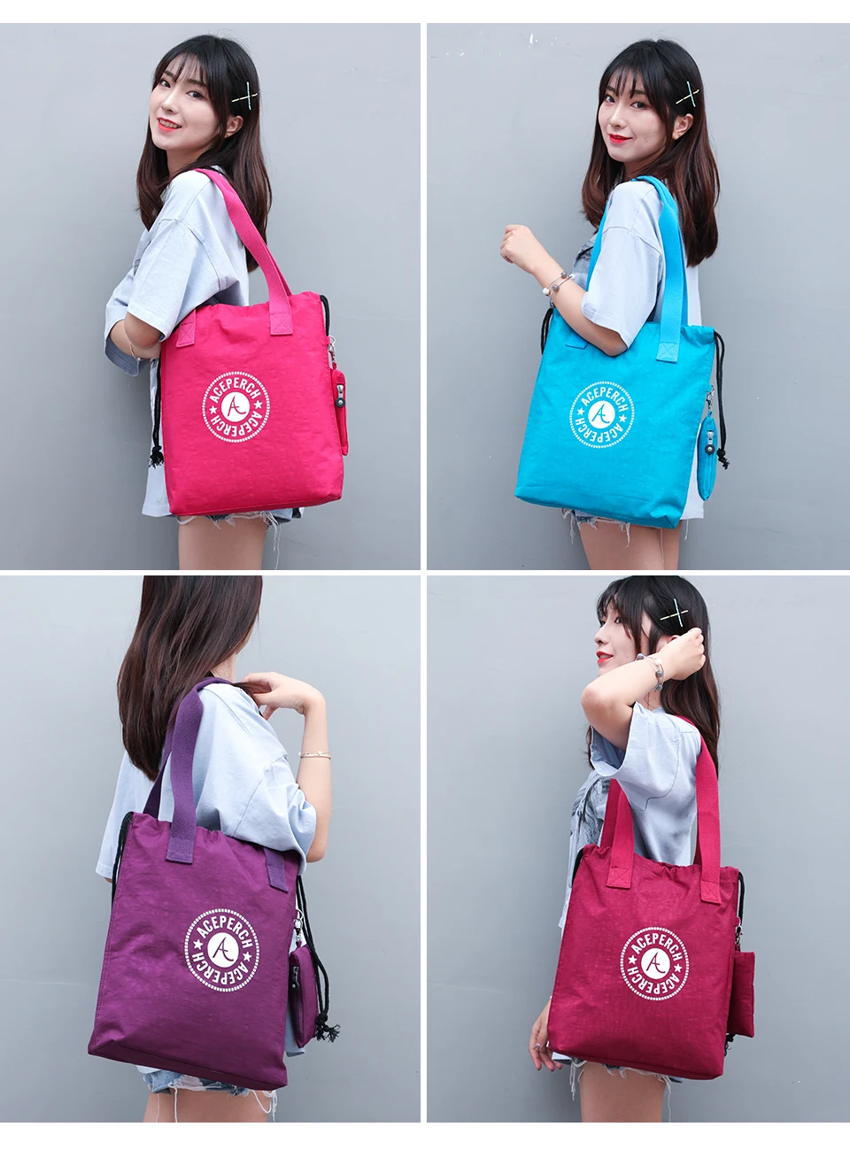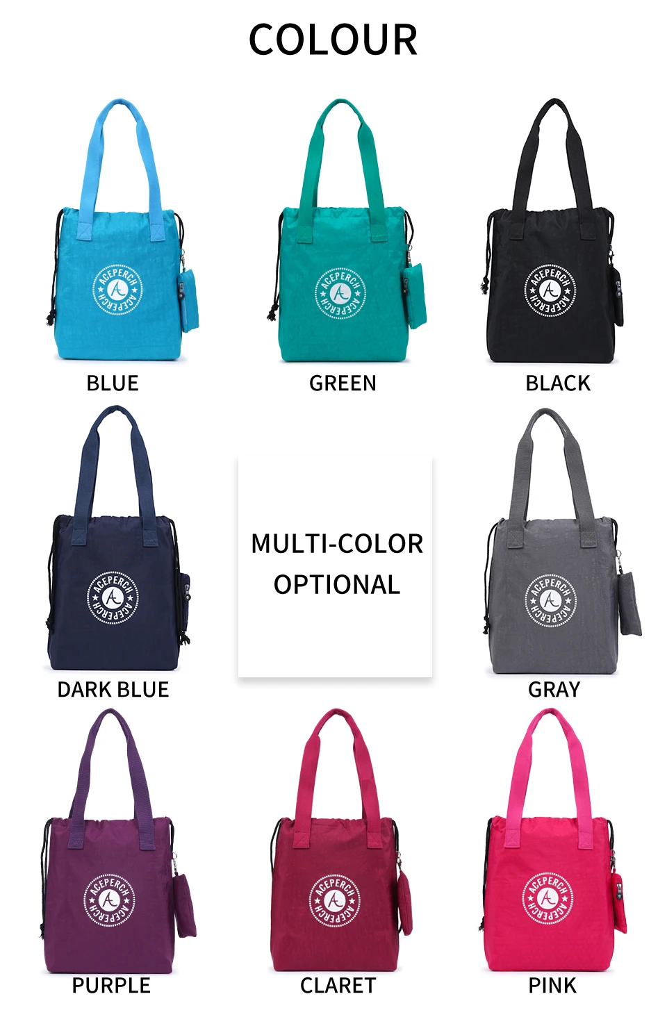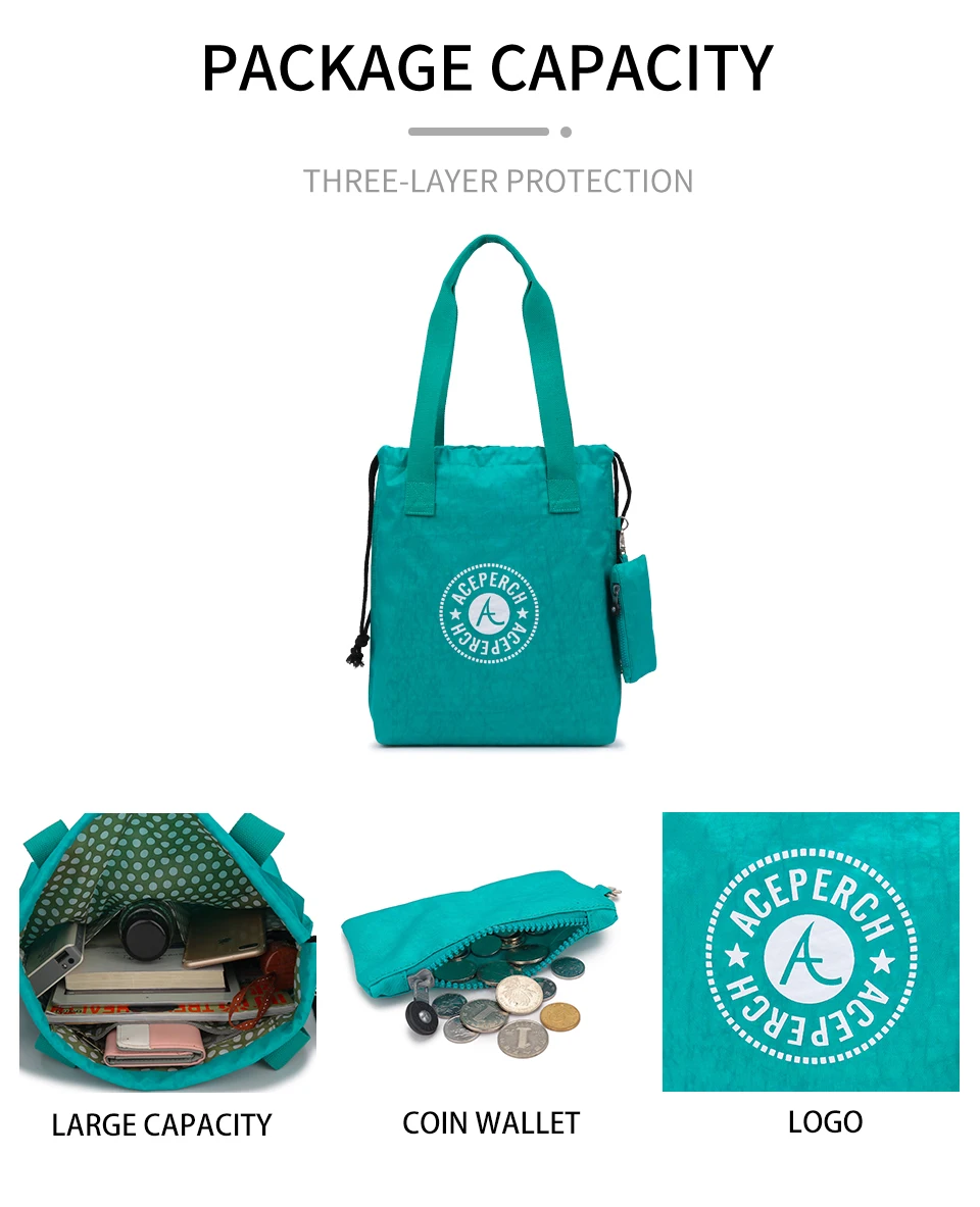 ACEPERCH Handbag Women Large Shoulder Bag Nylon Big Tote Luxury Brand Black Blue Green Purple Mummy Diaper Bags bolsas