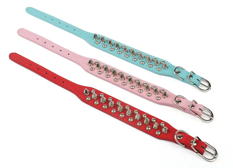 Adjustable Small Dog Collar Harness Spiked Studded Faux Leather punk rivet dog collar PU round nail dog chain pet supplies dog