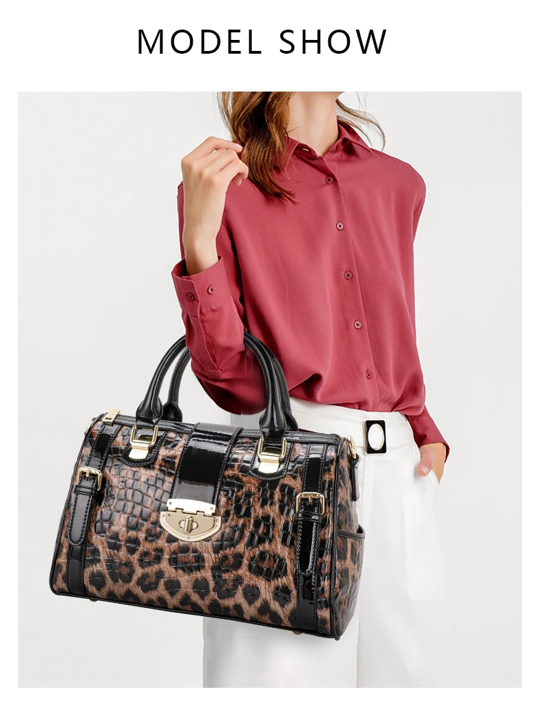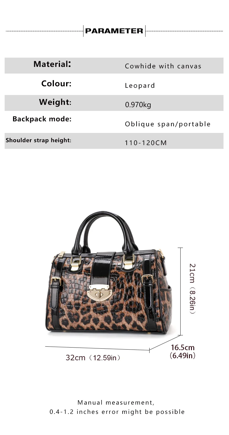 Aidrani Classic Leopard Pattern Genuine Leather Women's Bag Large Capacity Women's Handbag Cowhide Shoulder Bag