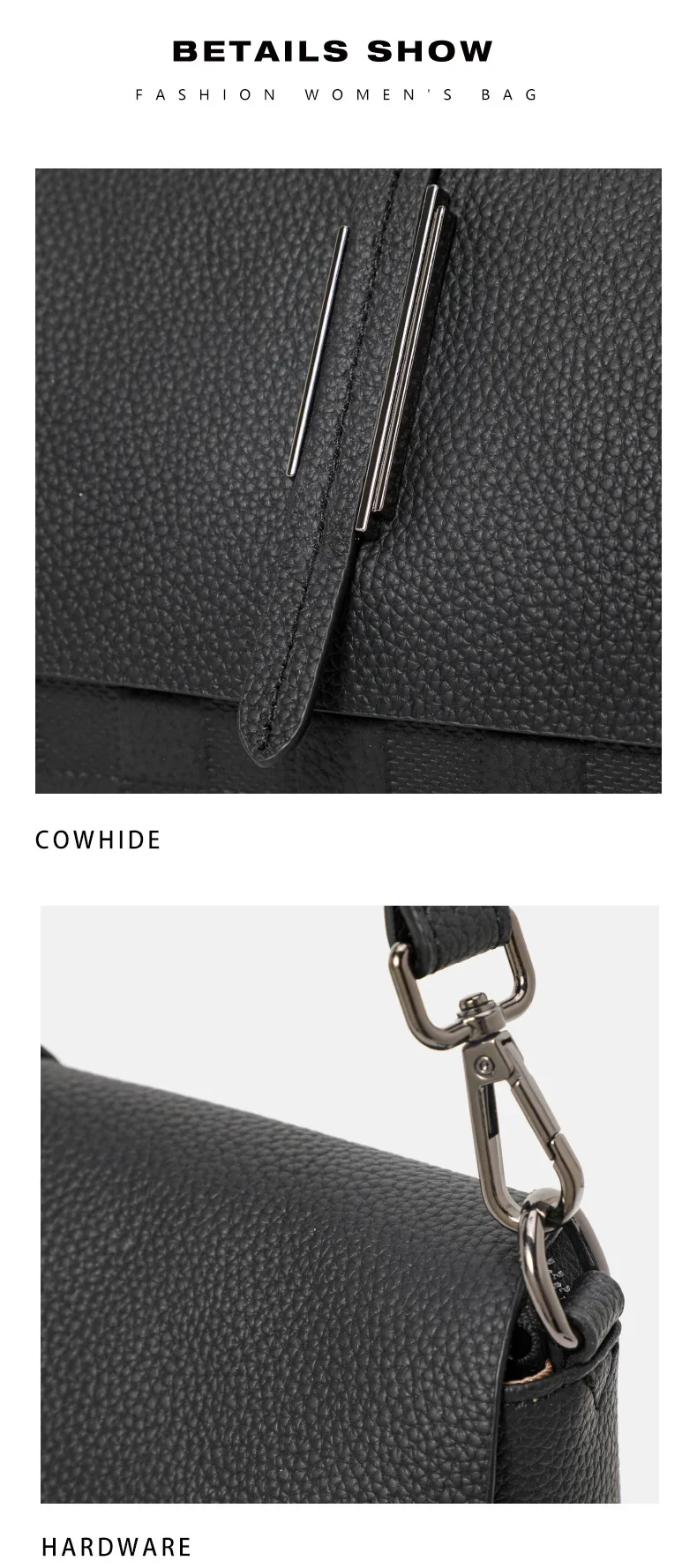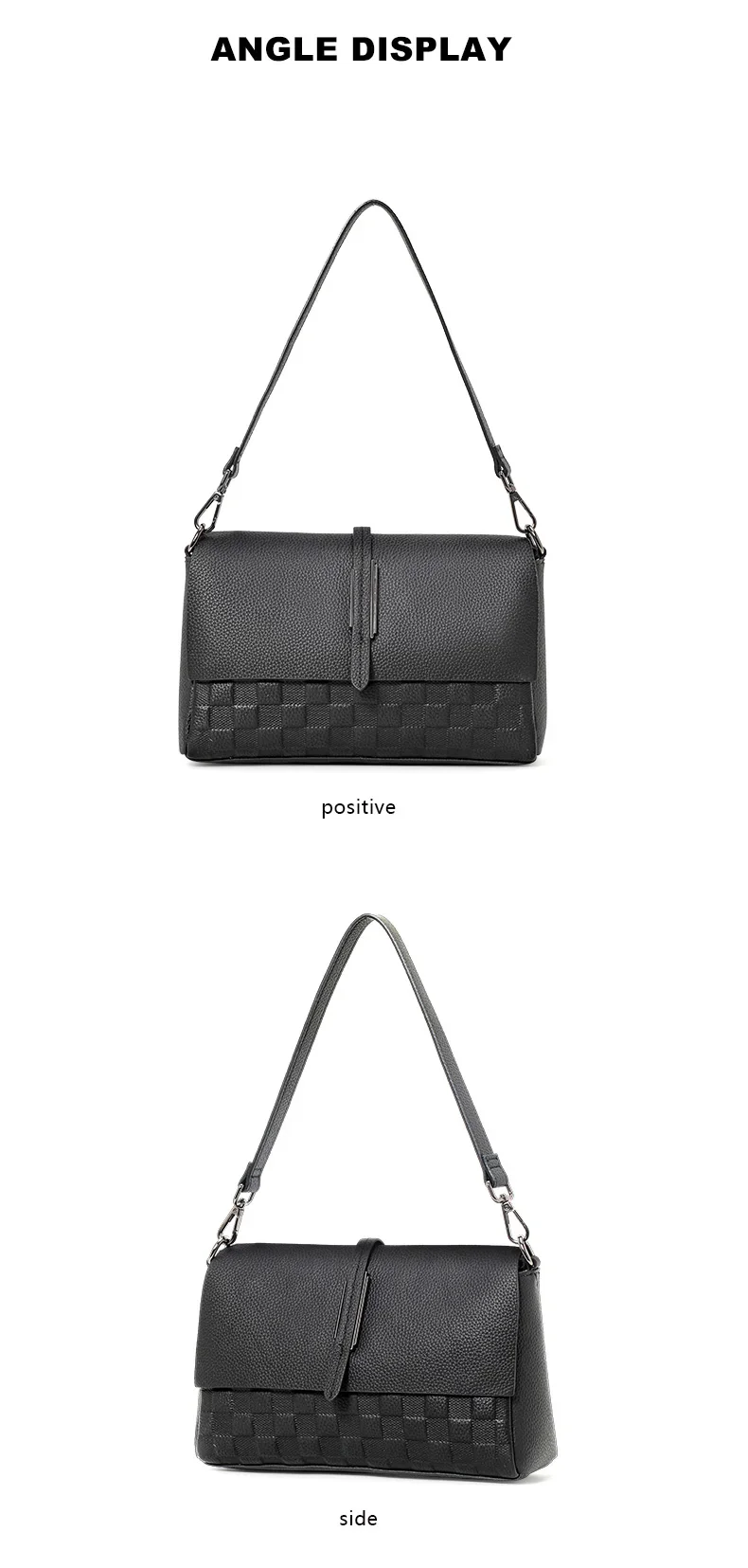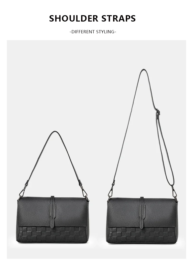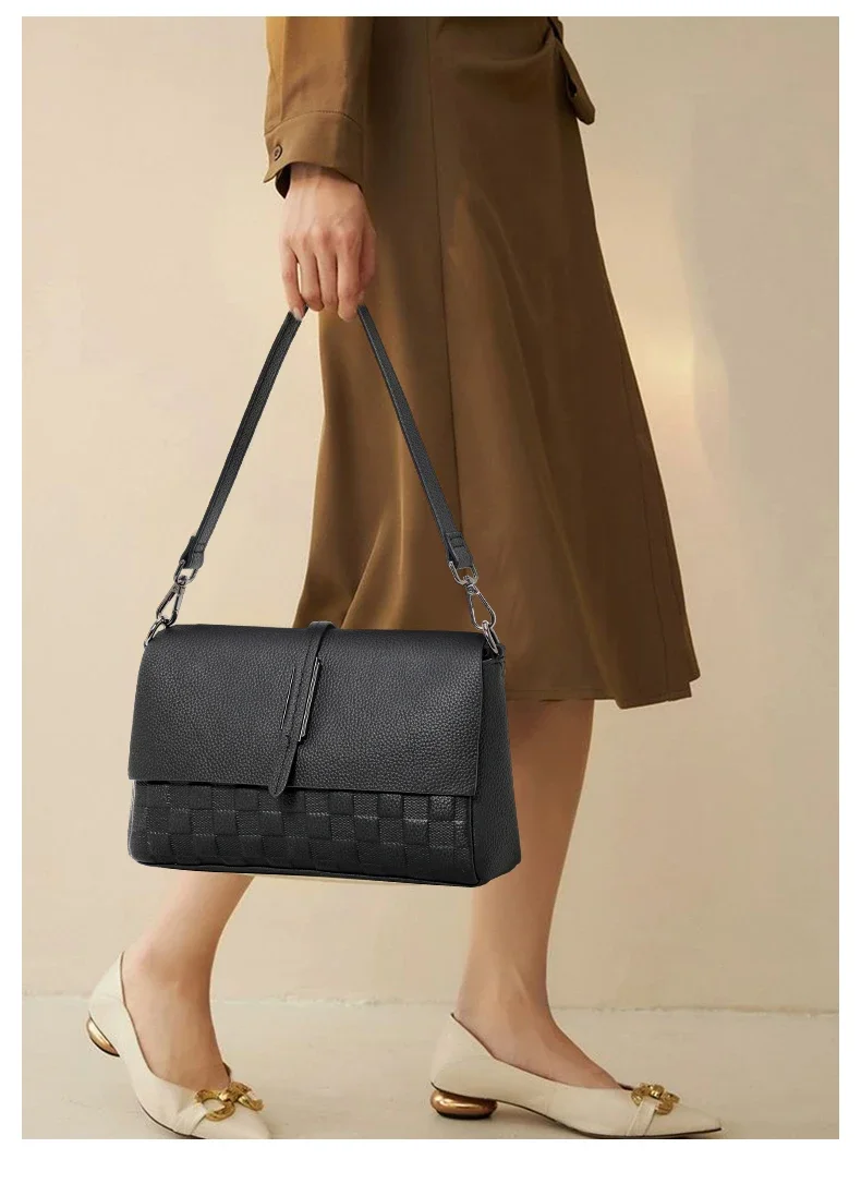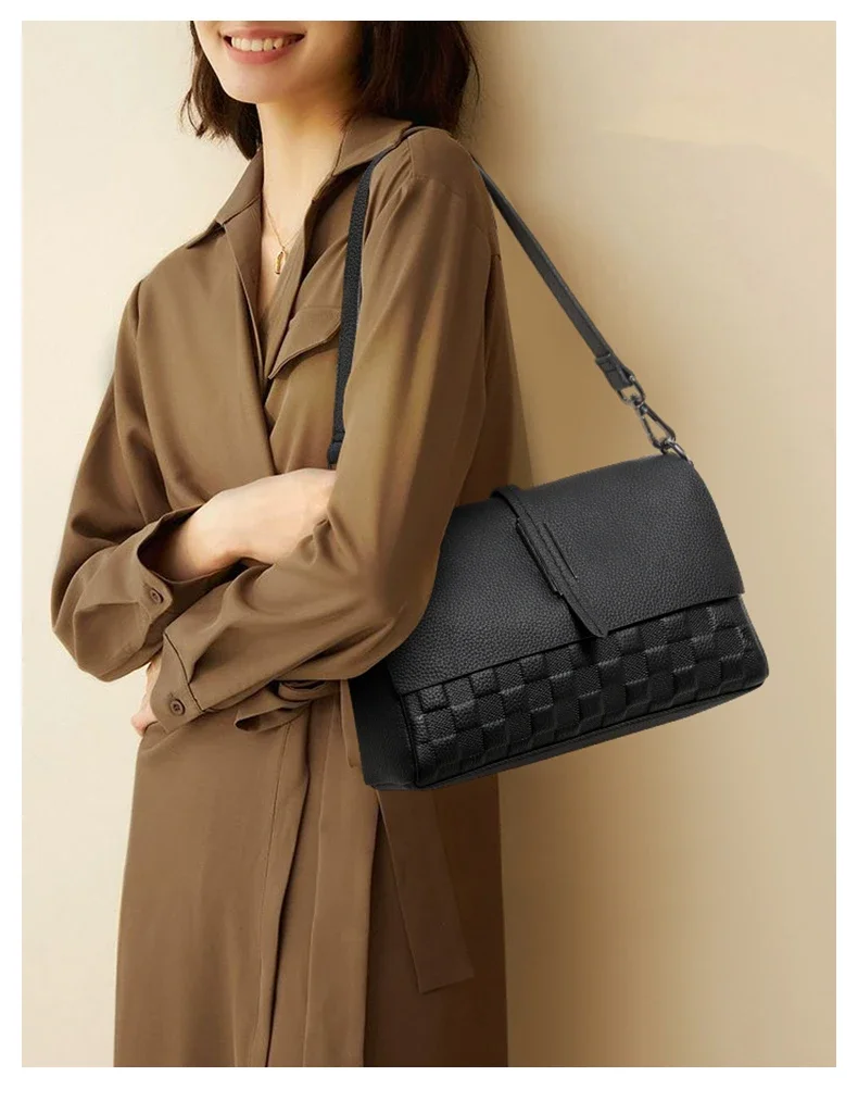 Aidrani Genuine Leather Single Shoulder Bag for Women, Fashion Handbag in Black Cowhide with Woven Design, New Model for 2024