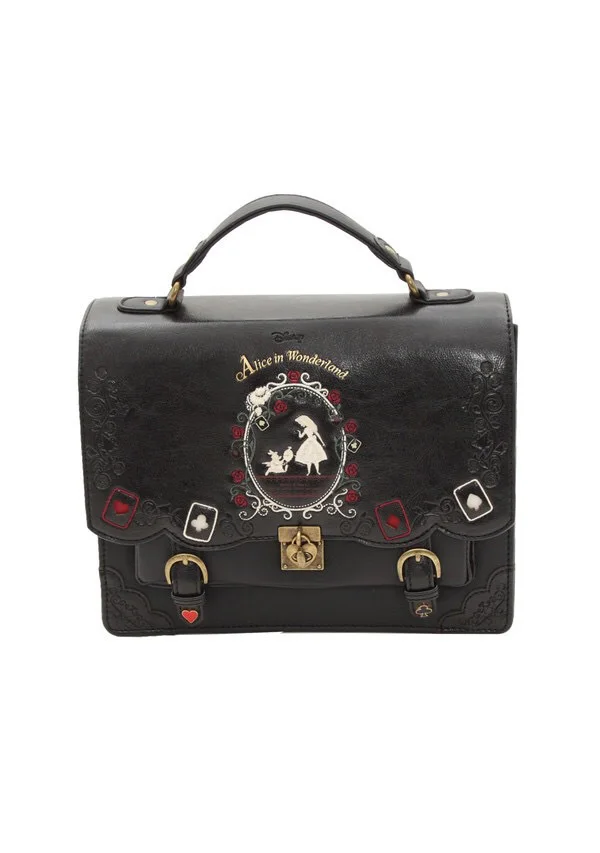 Alice In women backpack axes femme vintage student schoolbag playing cards Silhouette Embroidery backpack leather bag