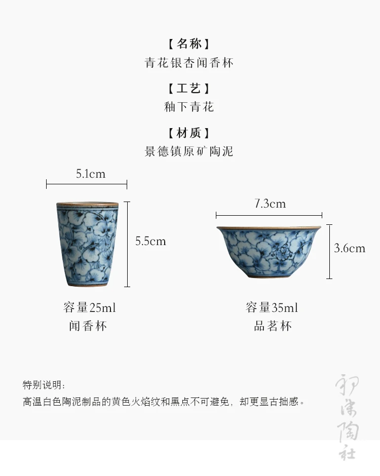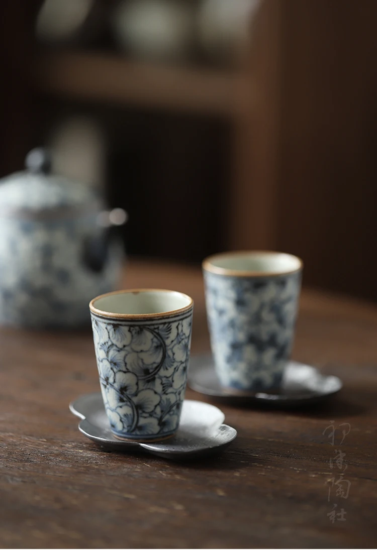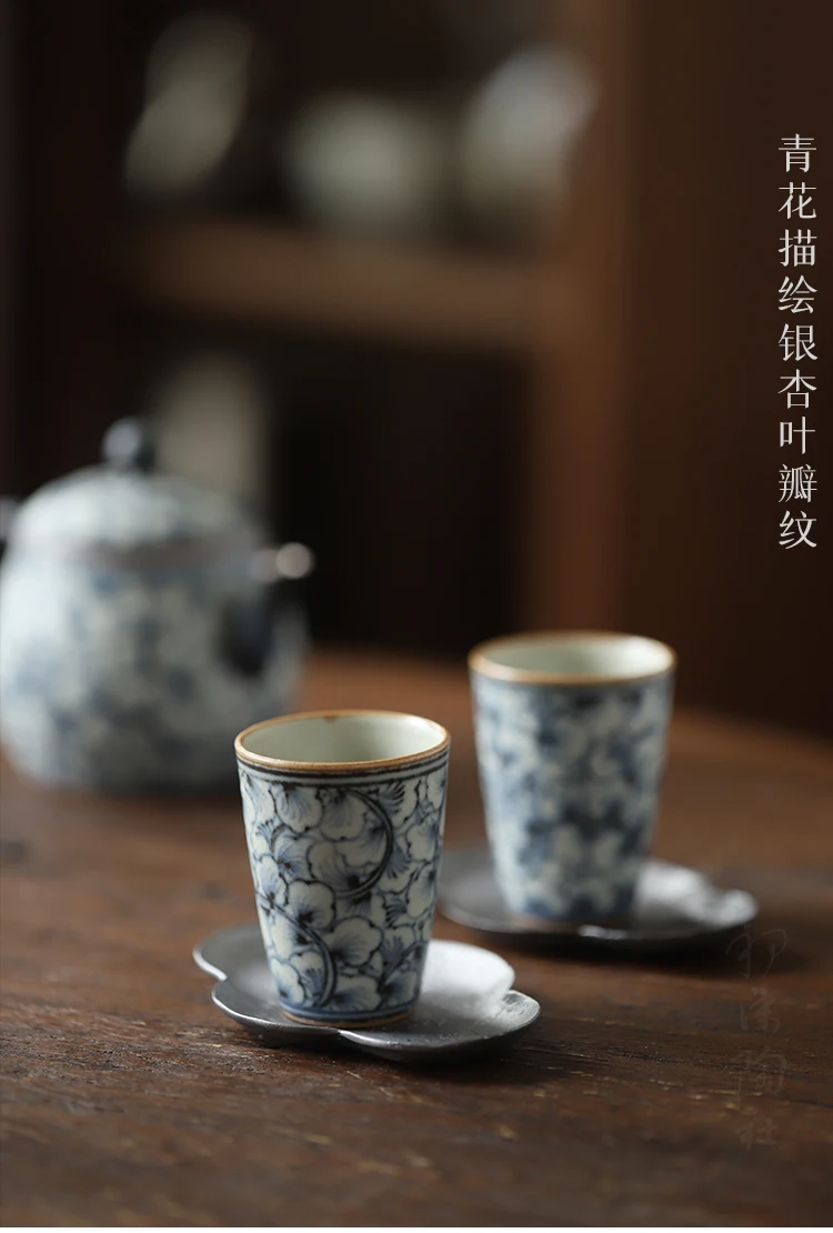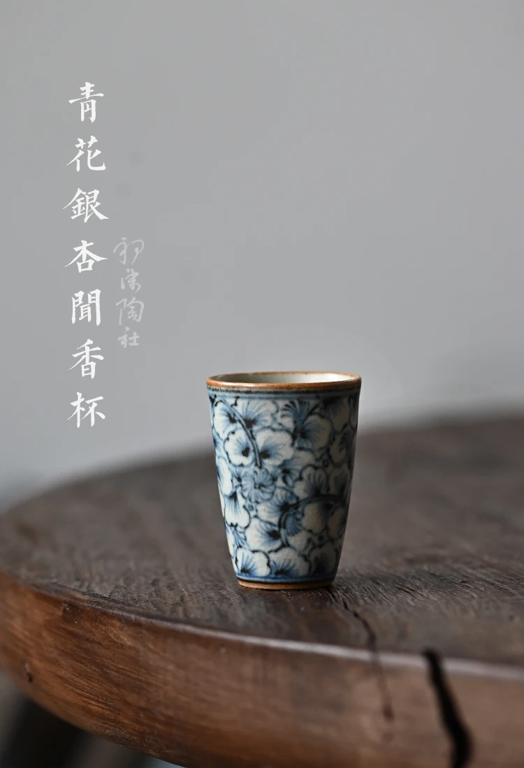 and white kung fu tea masters cup fragrance-smelling cup hand-painted ginkgo restoring ancient ways straight cup of tea