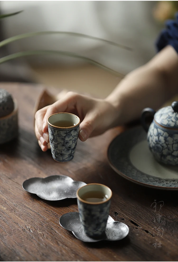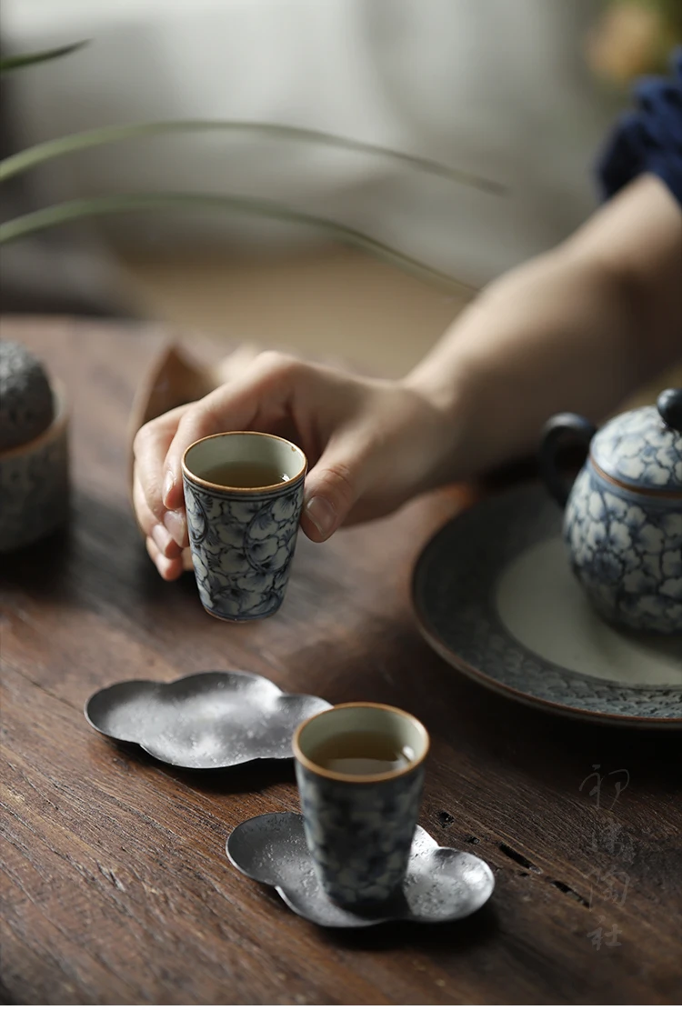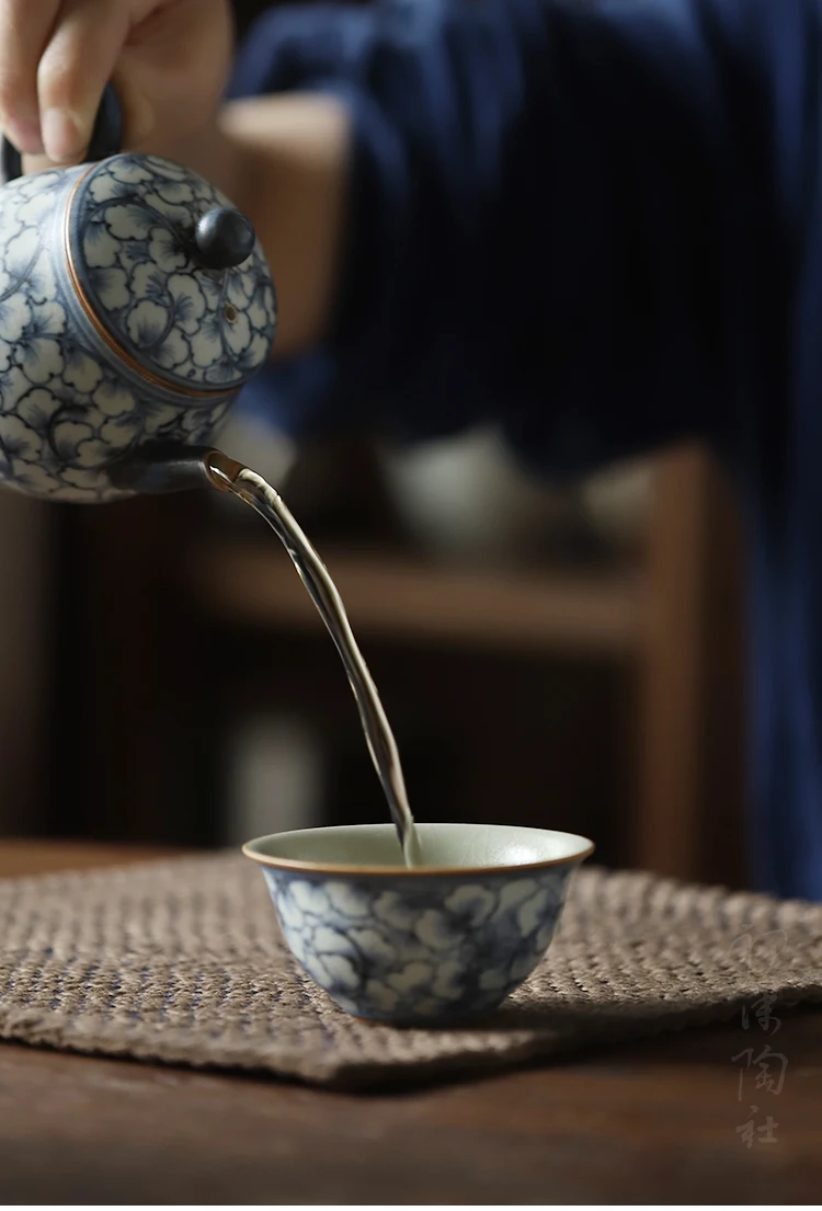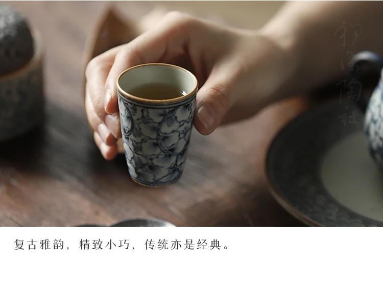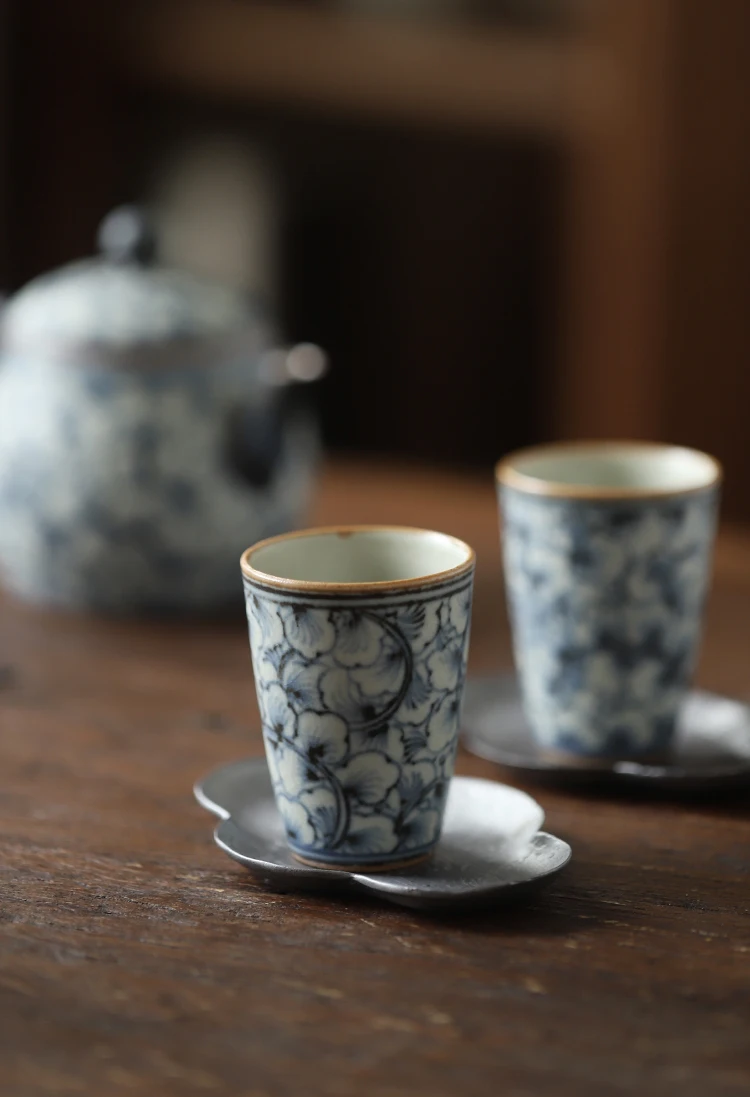 and white kung fu tea masters cup fragrance-smelling cup hand-painted ginkgo restoring ancient ways straight cup of tea