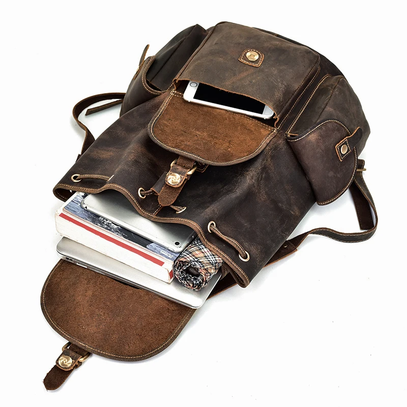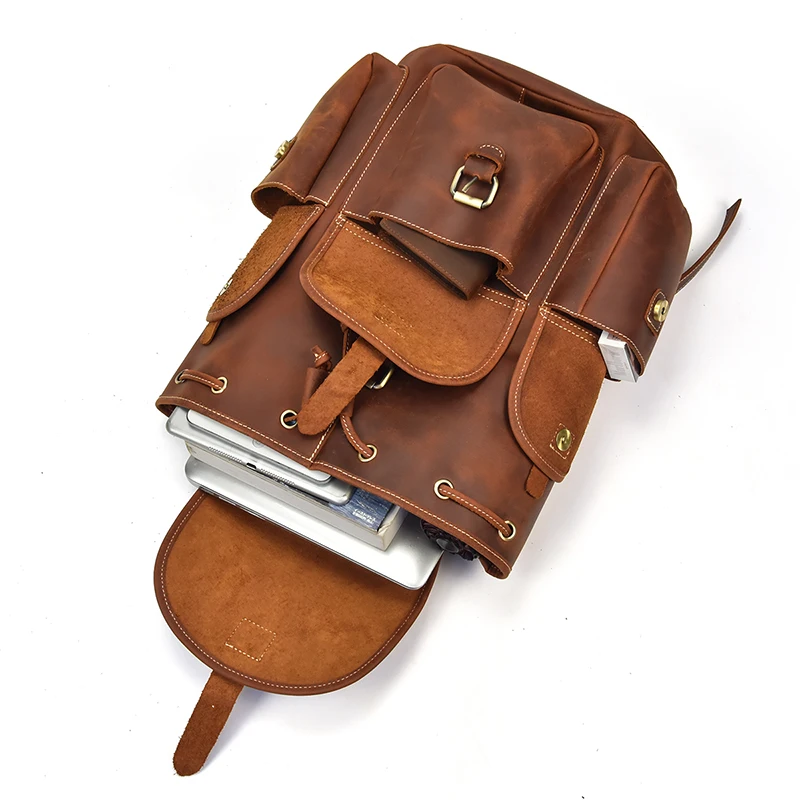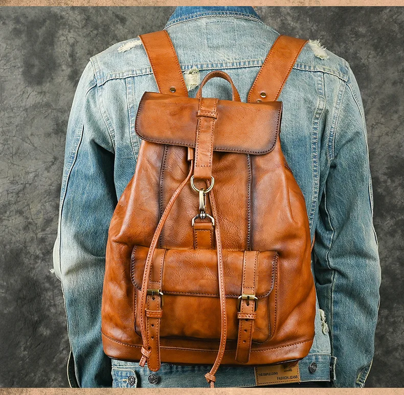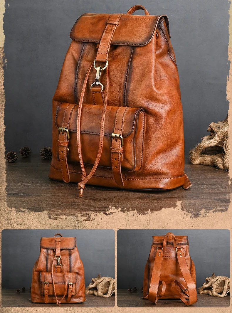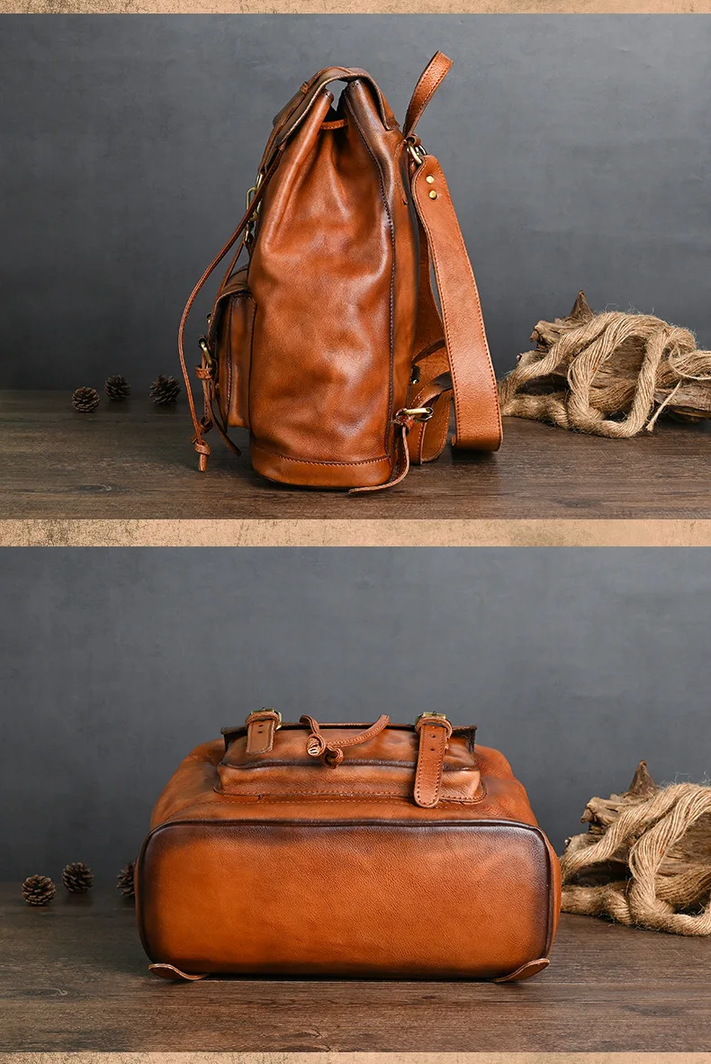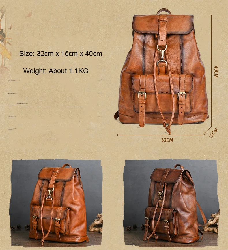 Material: 100% Genuine LeatherDesign: Vintage Leather Backpack
