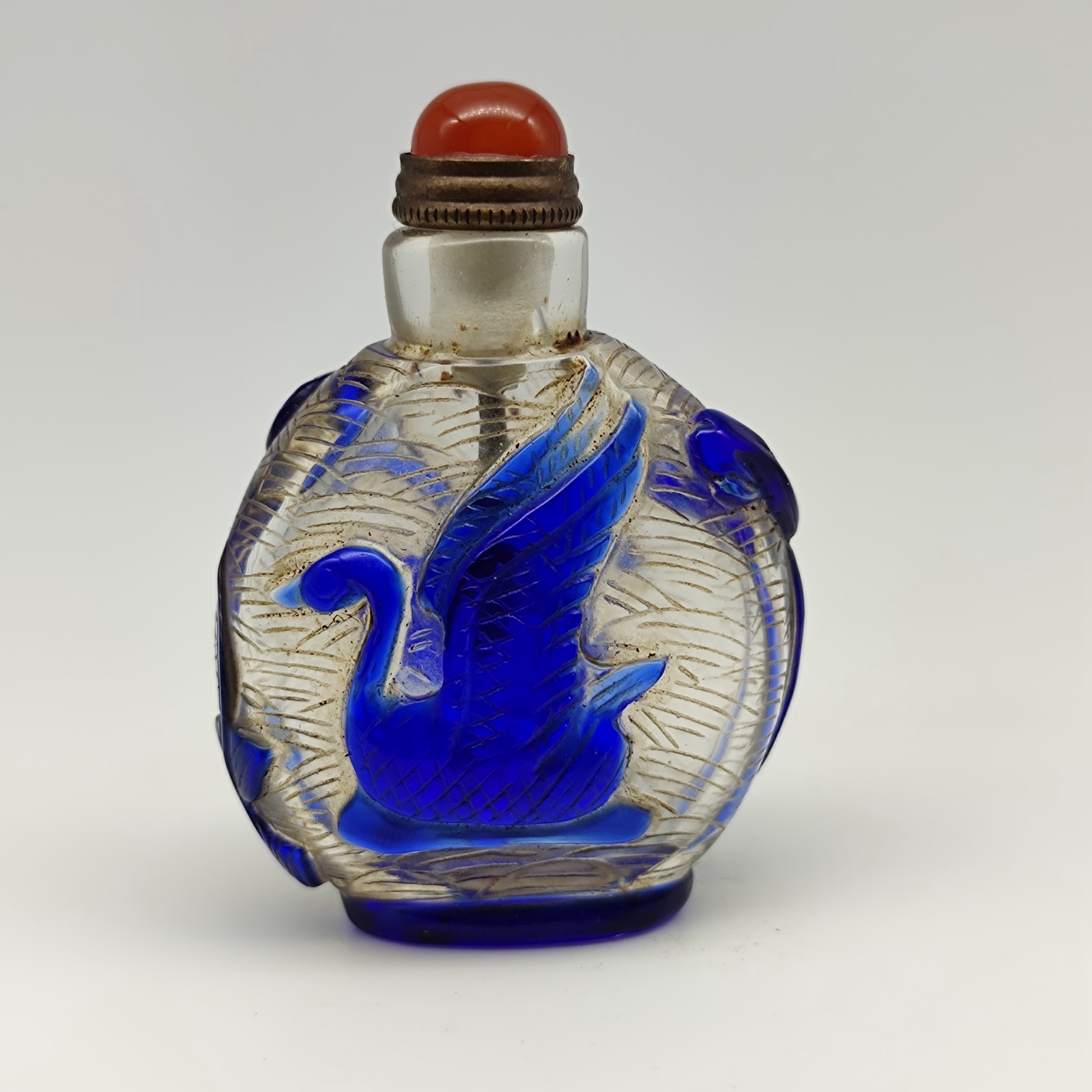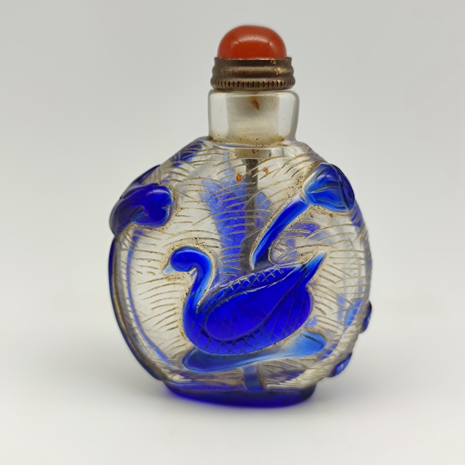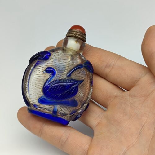 Antique Chinese Old Beijing Glaze Snuff Bottle Carved Swan Statue Collectibles
