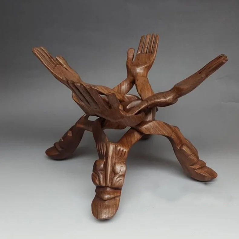 Antique Solid Wood Facai Handmade Ornaments Treasure Rack Bergamot Wooden Tray Home Decoration Craft Gifts
