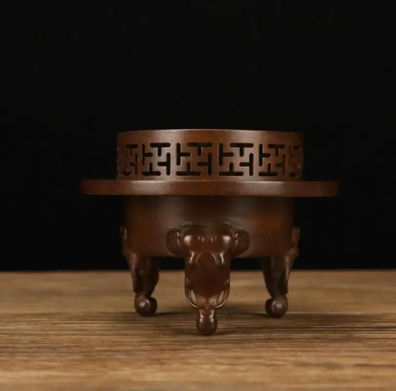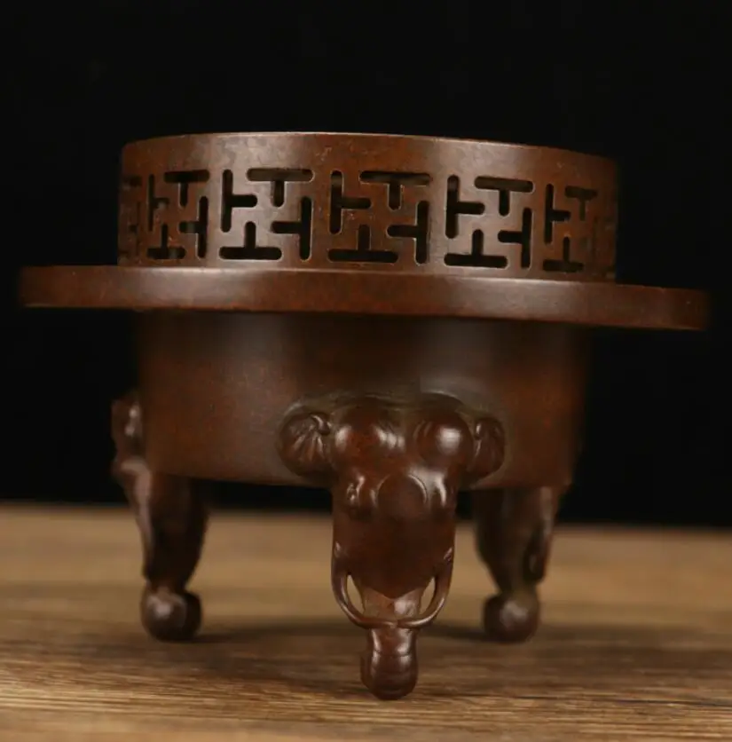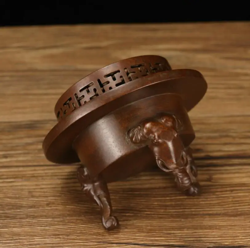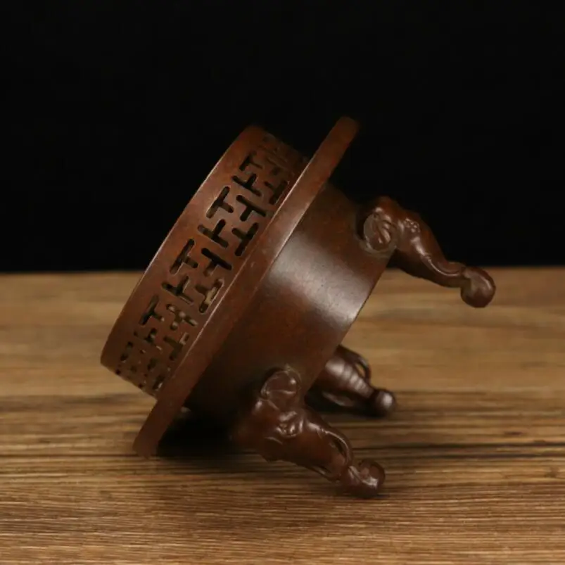 Archaize seiko brass three foot elephant head Hollow out Incense burner crafts statue