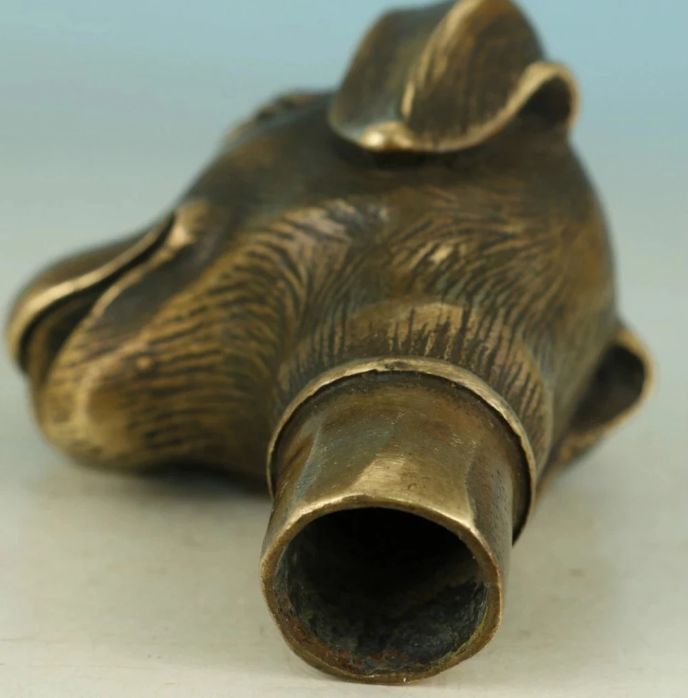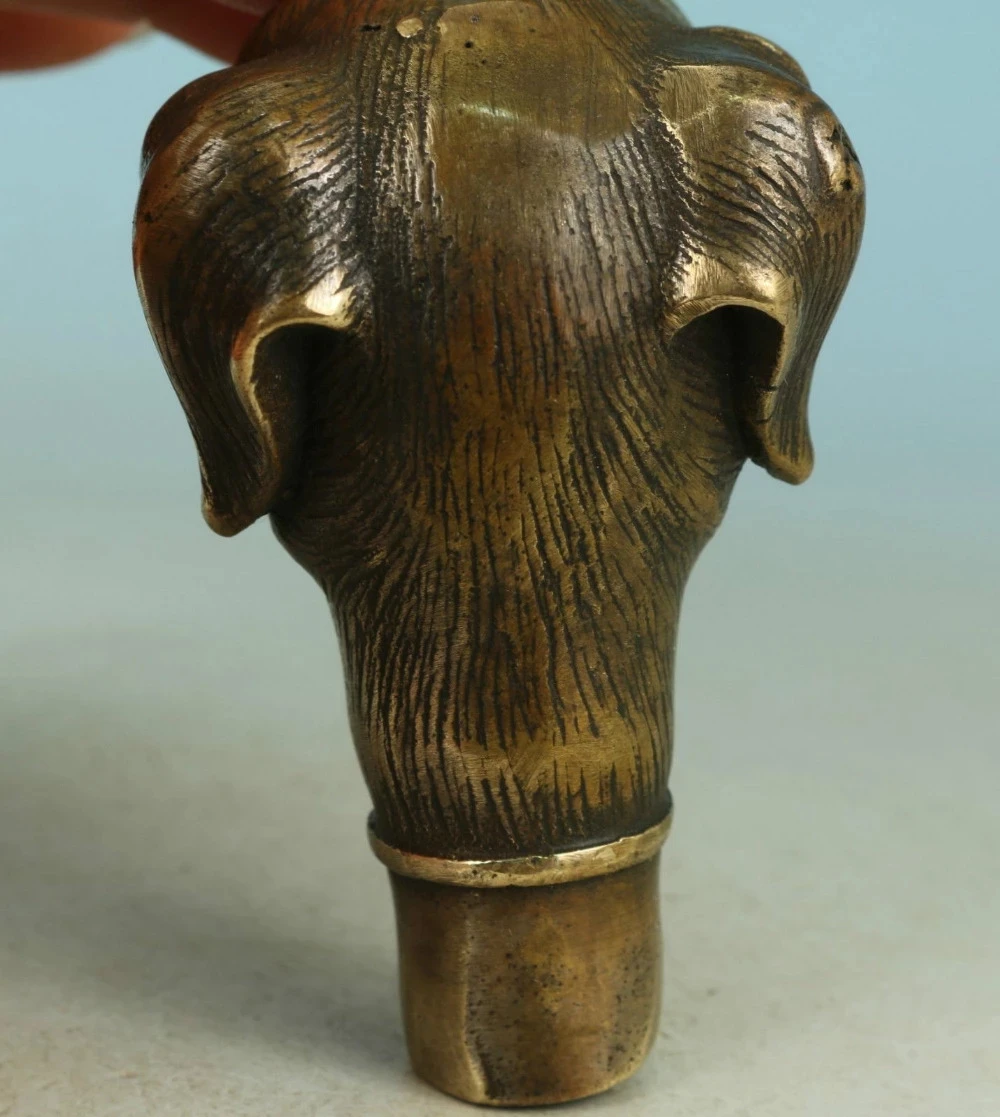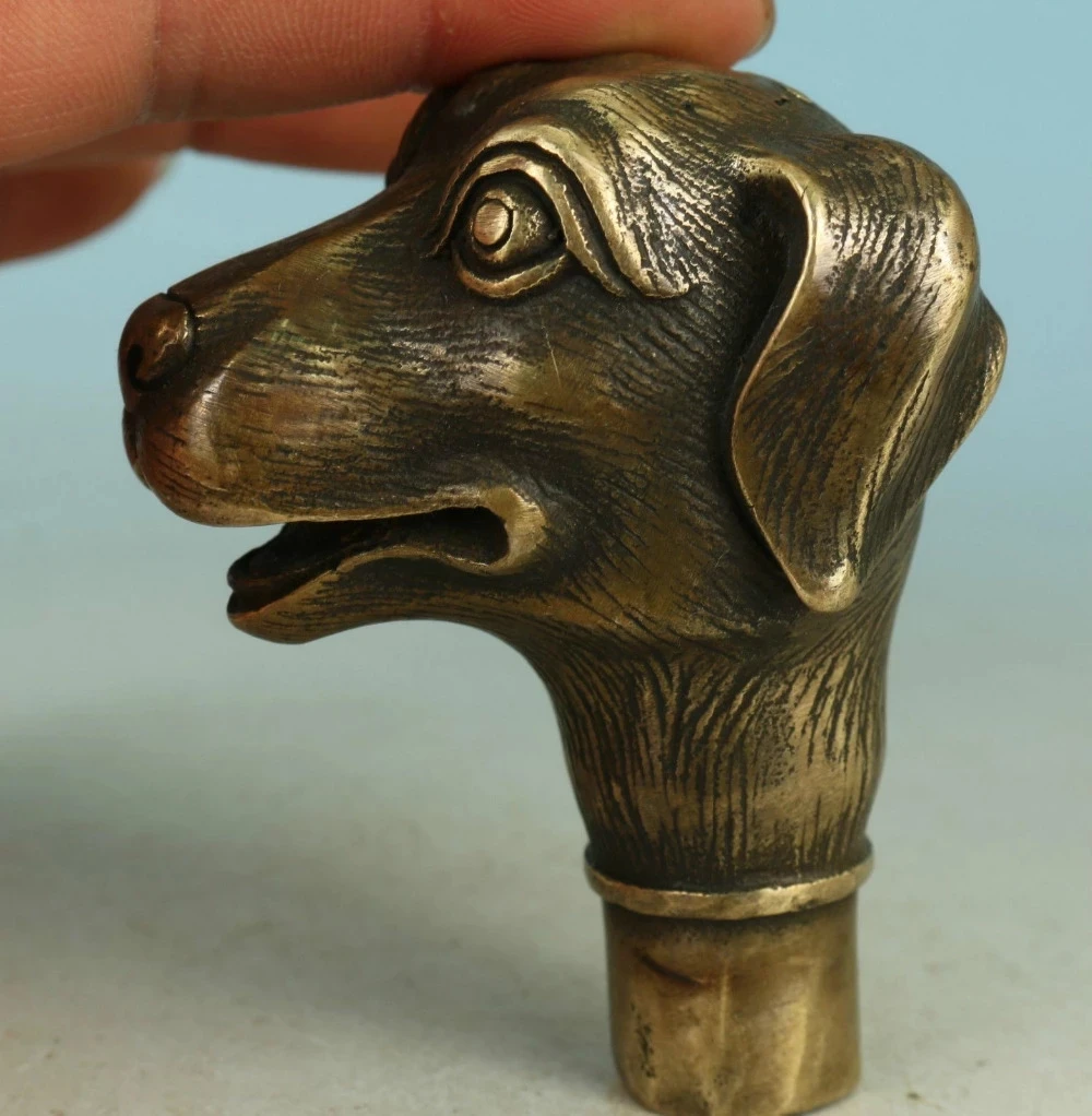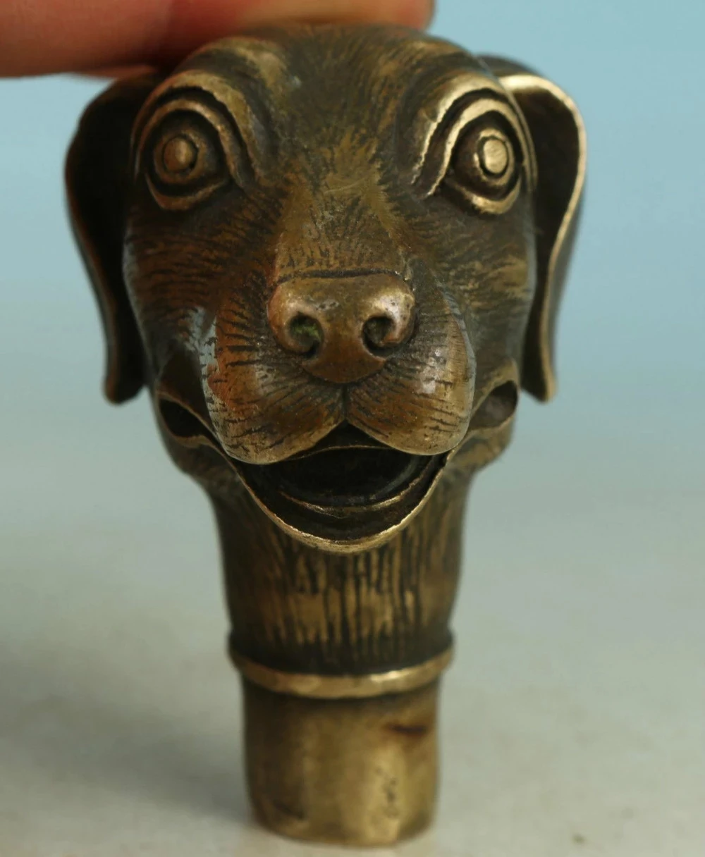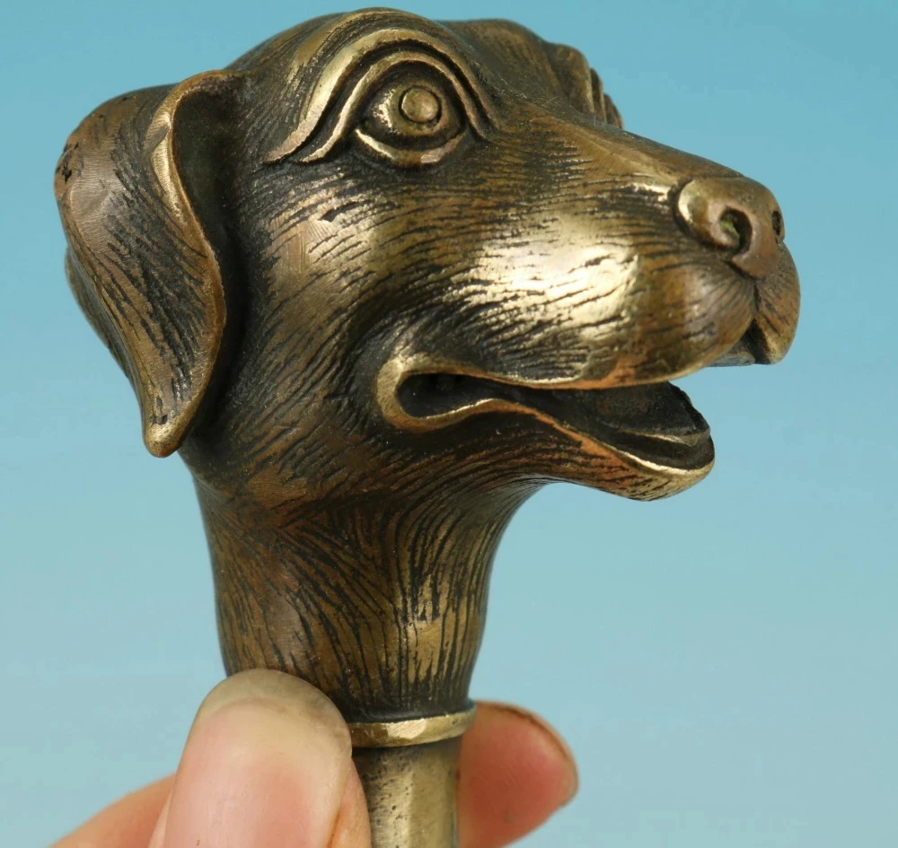 Asian Chinese Old Bronze Handmade Carved Dog Collect Statue Walking Stick Head