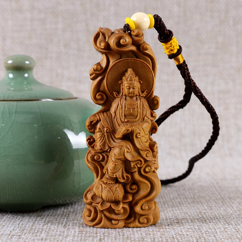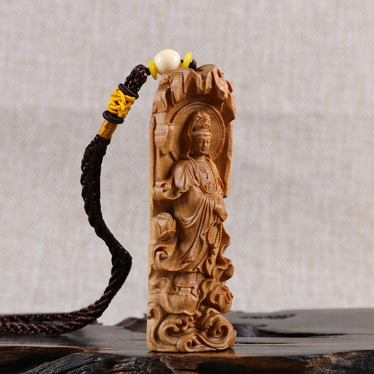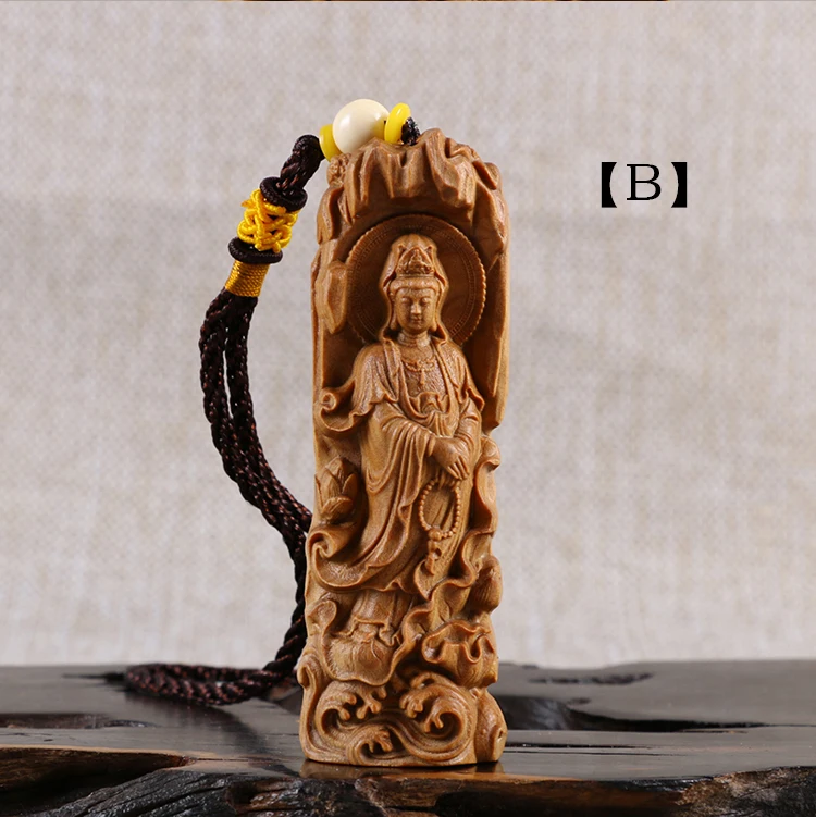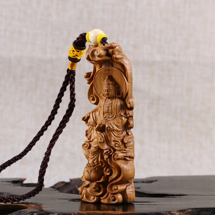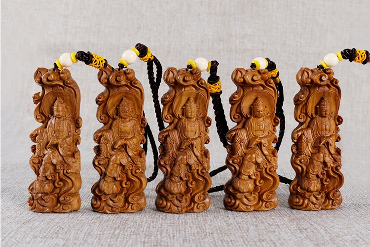 Australian Sandalwood Carving Car Pendant Statue Craft Real Wood Buddha Statue Guanyin Sculpture Home Decor