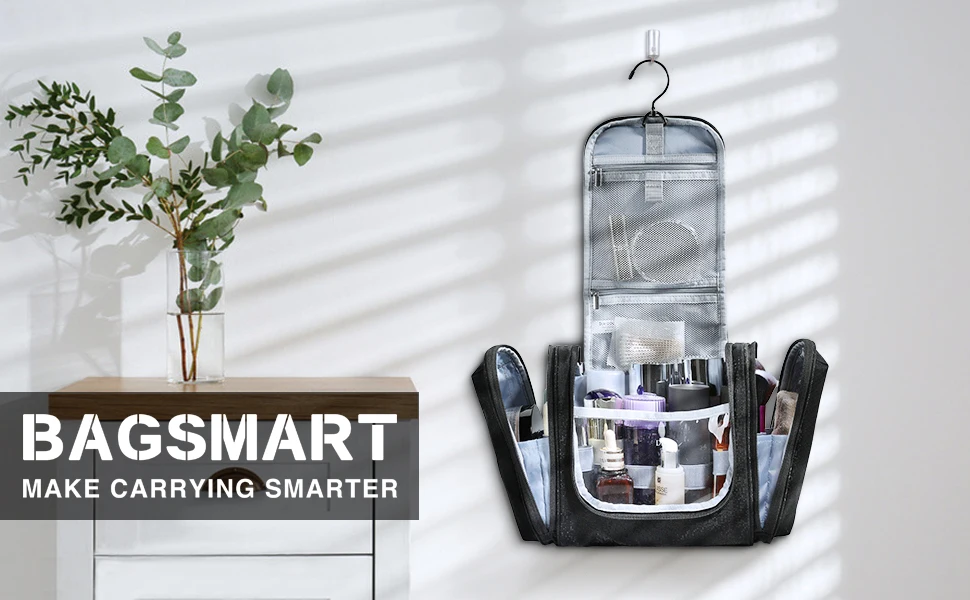 BAGSMART Hanging Toiletry Bag for Women Travel Toiletries Storage Bag With Hook Men Travel Waterproof Storage Bag Toiletries