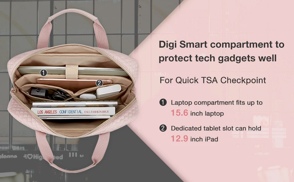 • All laptop accessories together- a15.6inch laptop compartment, a dedicated pocket for 12.9 inch iPad, 2 mesh pockets for accessories like laptop charger, mouse, kindle, notebooks, etc;
