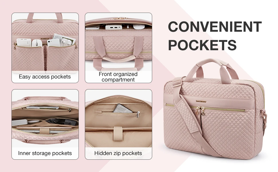 The BAGSMART women laptop briefcase is the perfect companion for the nomadic urban lifestyle. Its appearance is clean and unobtrusive, allowing to use it for all occasions and to be combined with and integrated within diverse personal styles. Whether you are professional business person, digital nomad or college student, this multiple compartments laptop bag would be a smart choice for you.