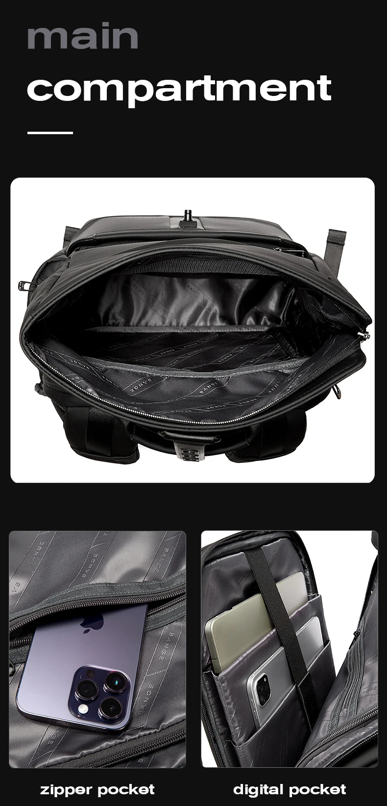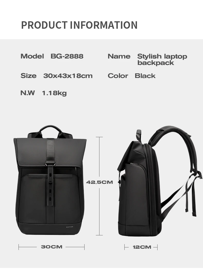 BANGE 15.6-inch laptop Men's business backpack waterproof multi compartment travel bag Black backpack suitable for men and women