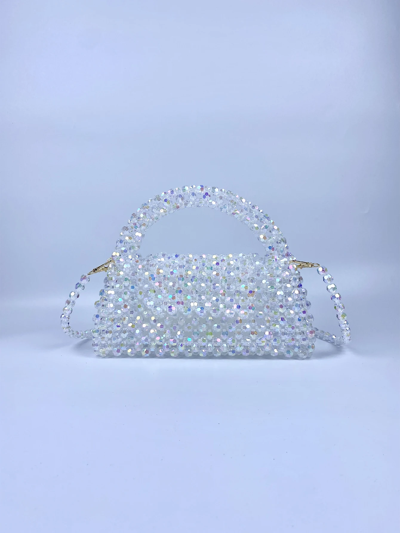 Beaded Knitted Pillow Type Handheld Crossbody Dual Purpose Acrylic Bag