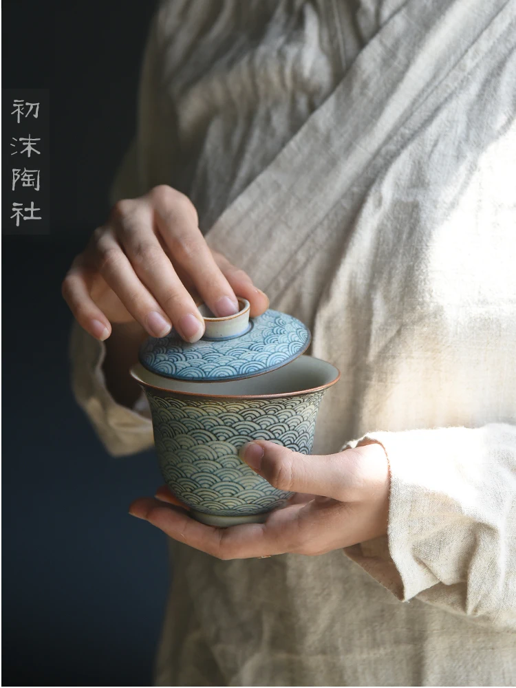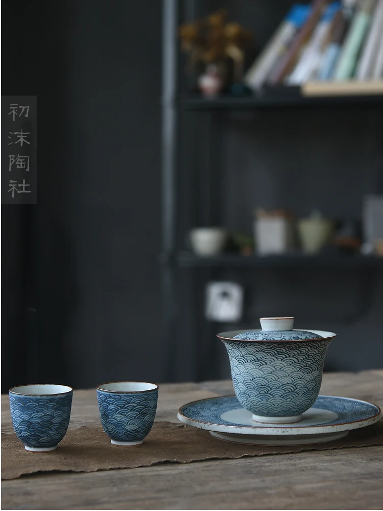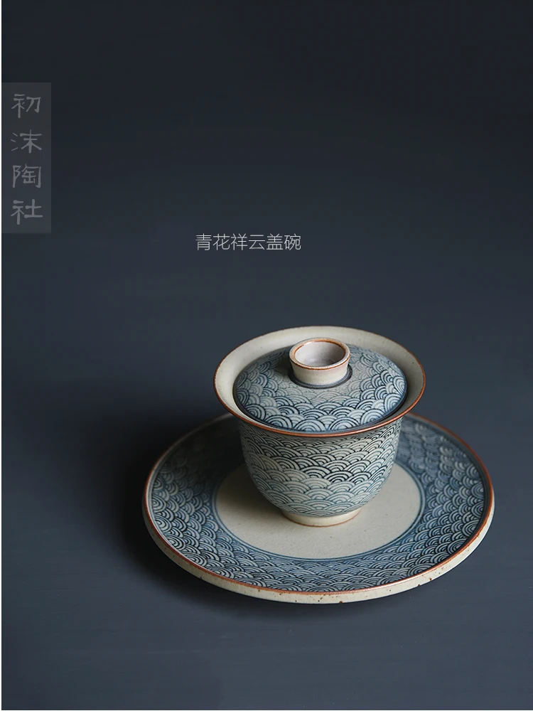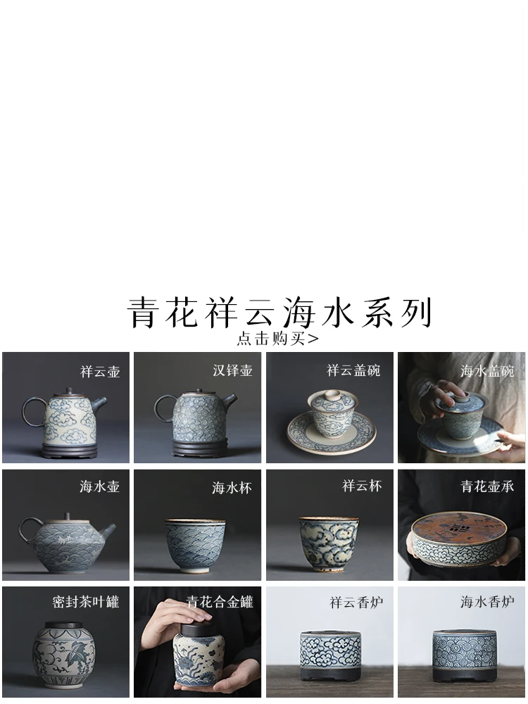 beginning of the pure manual only three tureen under glaze blue coarse pottery tureen xiangyun pot of kung fu tea cups