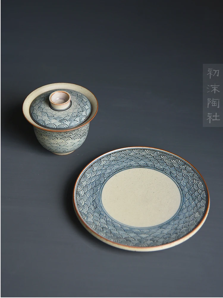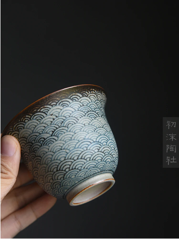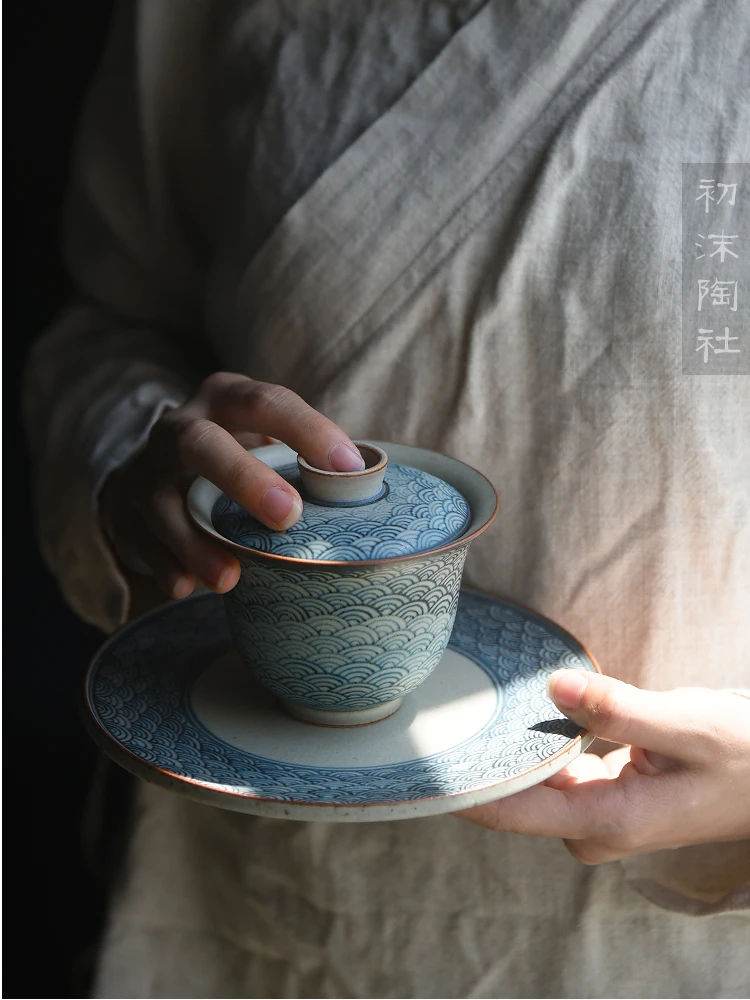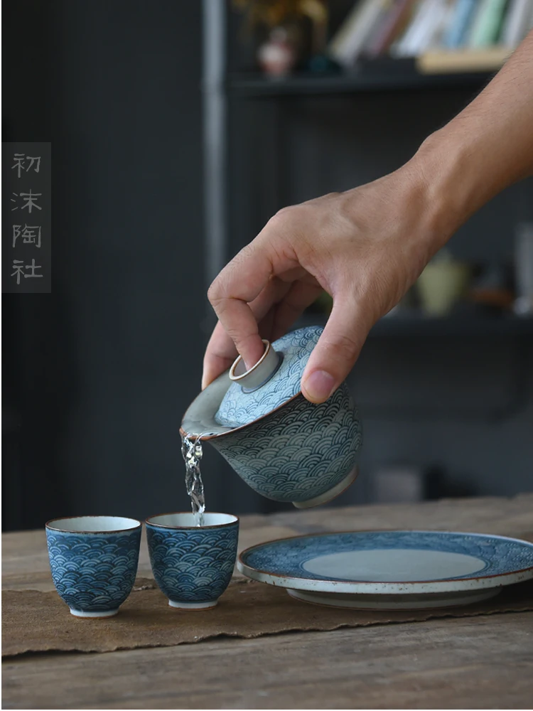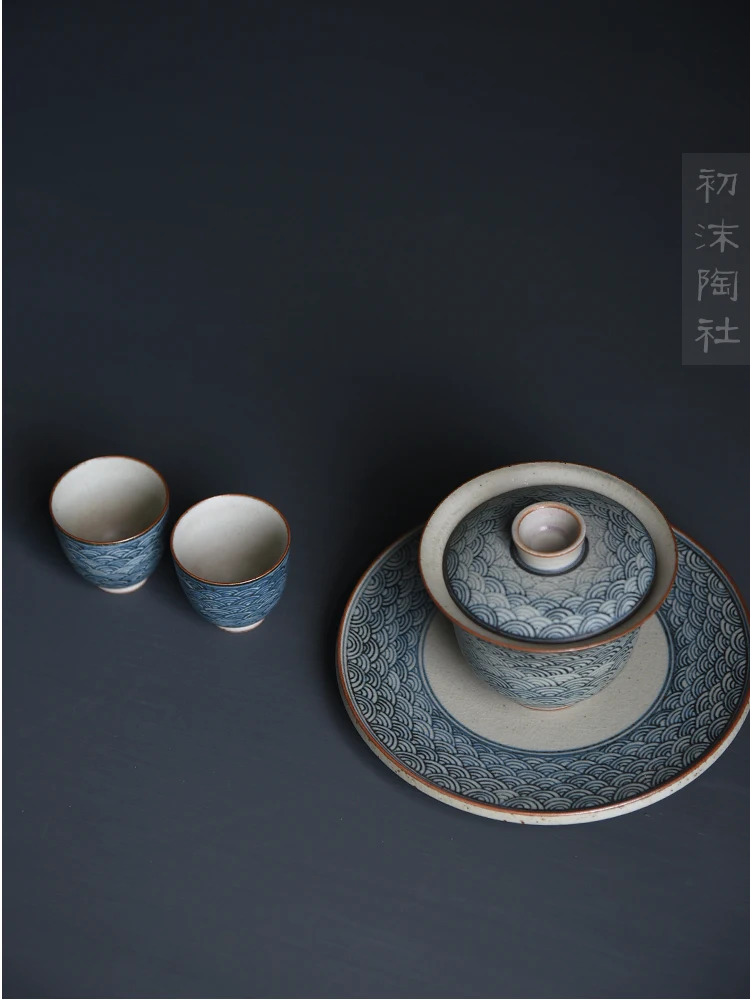 beginning of the pure manual only three tureen under glaze blue coarse pottery tureen xiangyun pot of kung fu tea cups