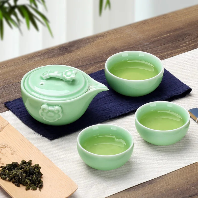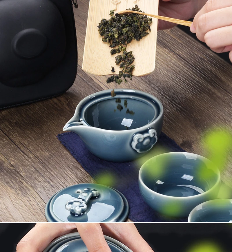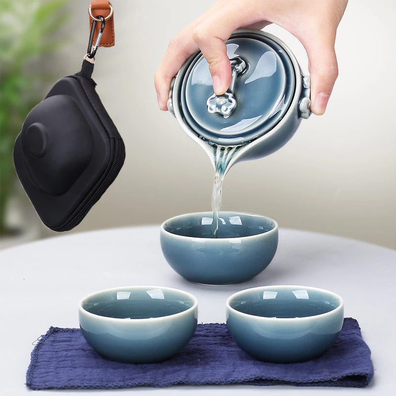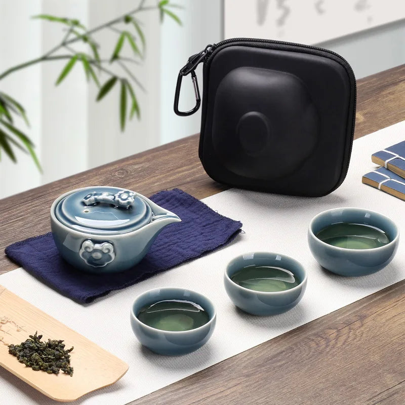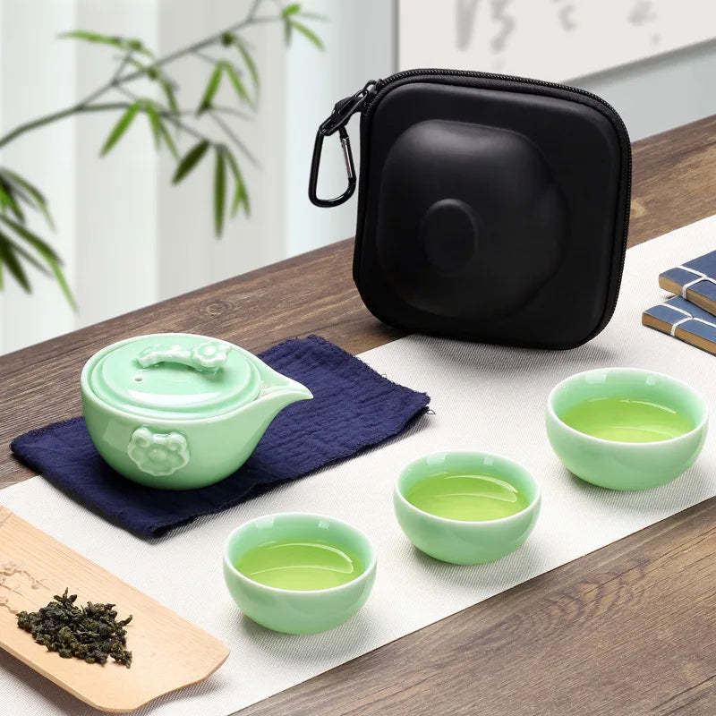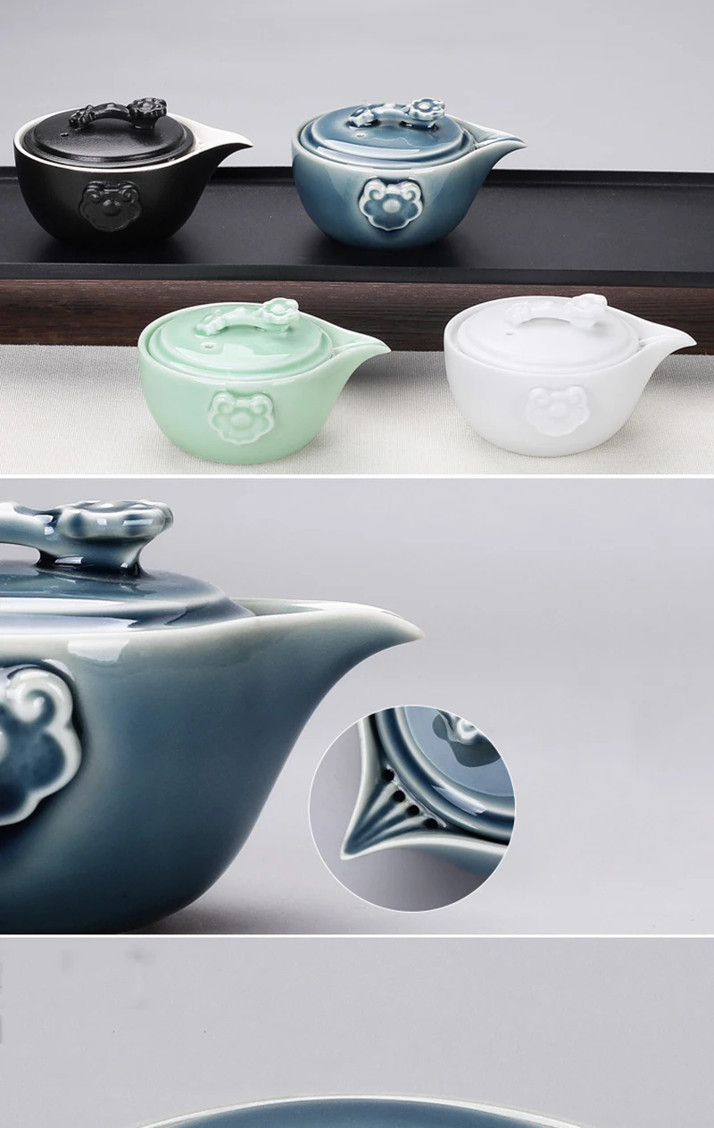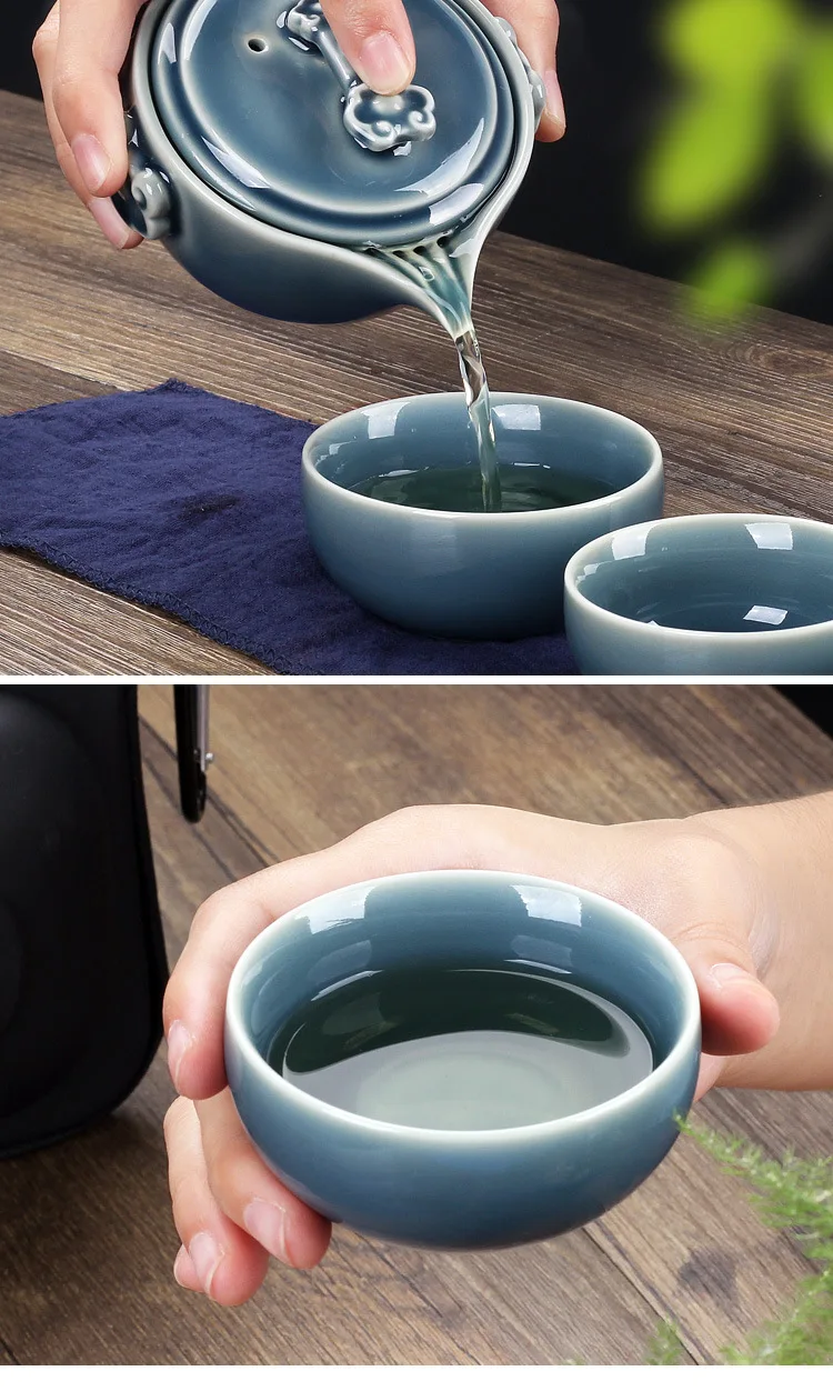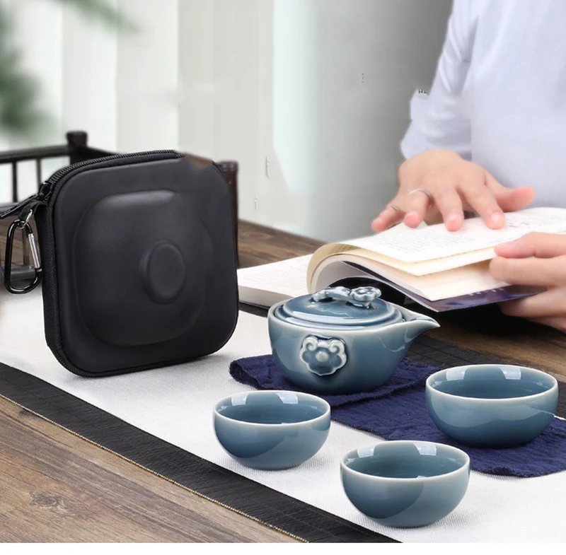 Black Pottery One Pot Three Cups Tea Sets Portable Travel Home Office Cups Ceramic Tea Coffee Container With Bag Free shipping
