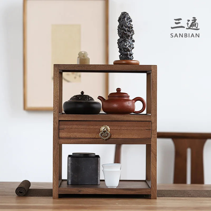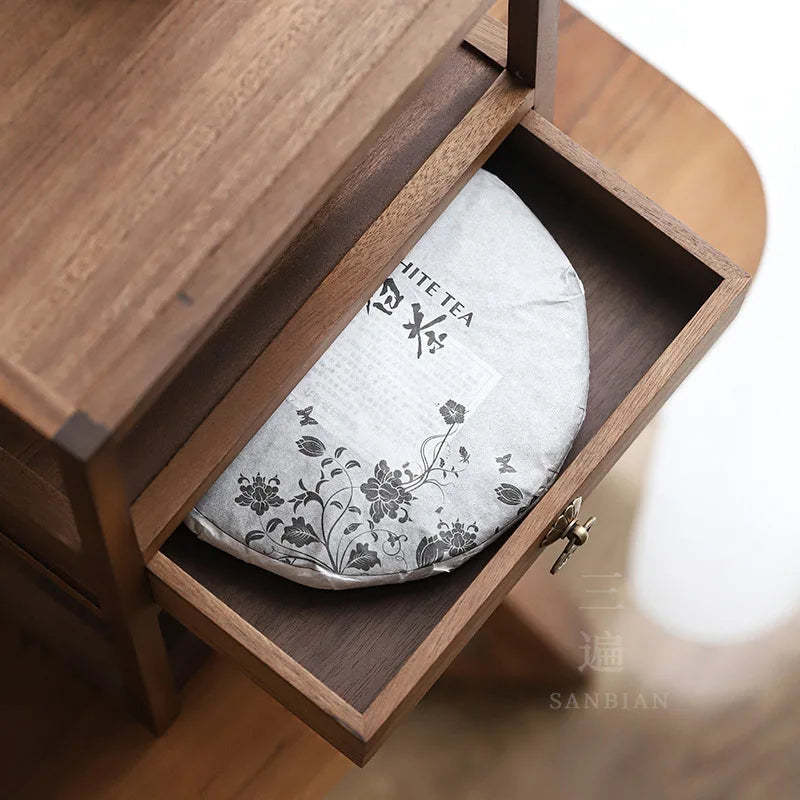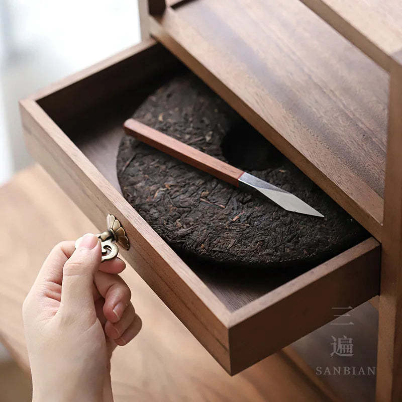 Black Walnut Solid Wood Pu'er Tea Caddy Multi-Layer Storage Brick Tea Storage Box Tea Service Plate Tea Shelf Chinese Decorati