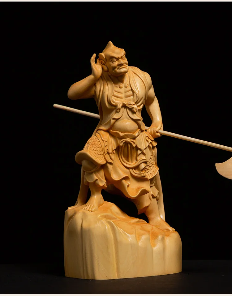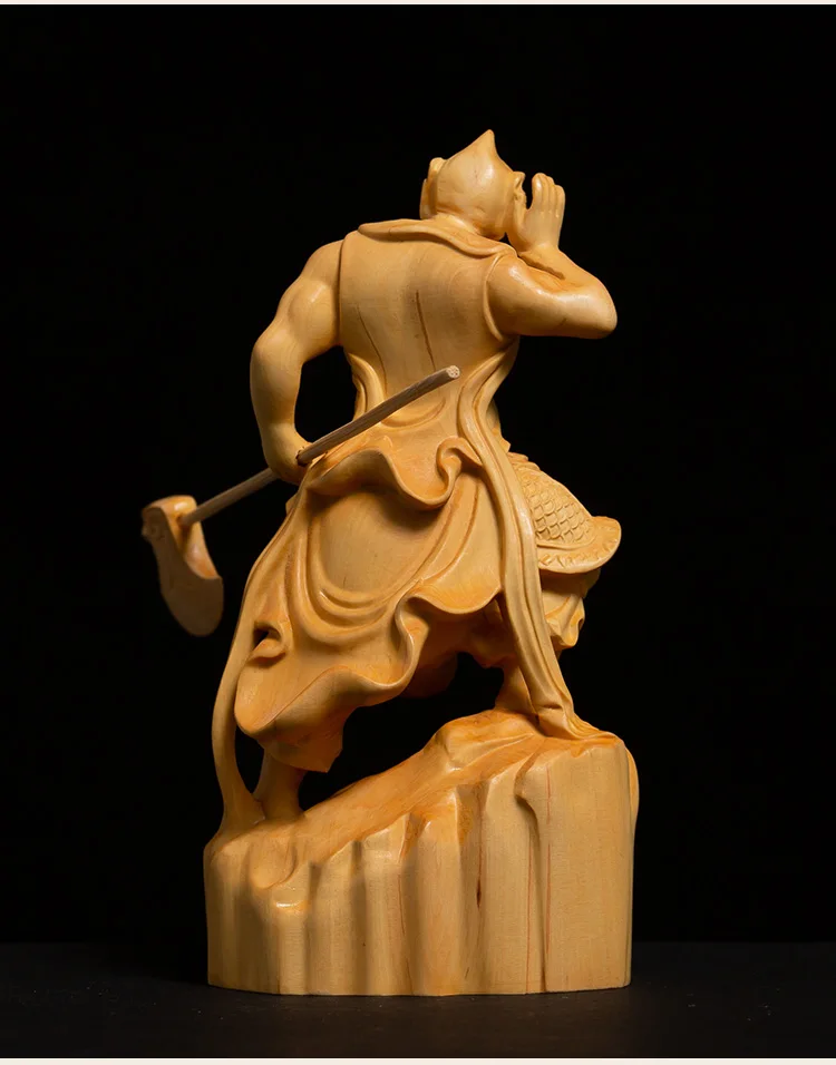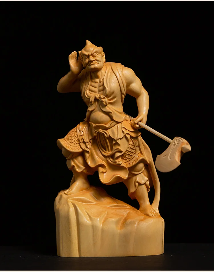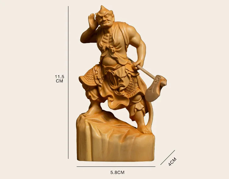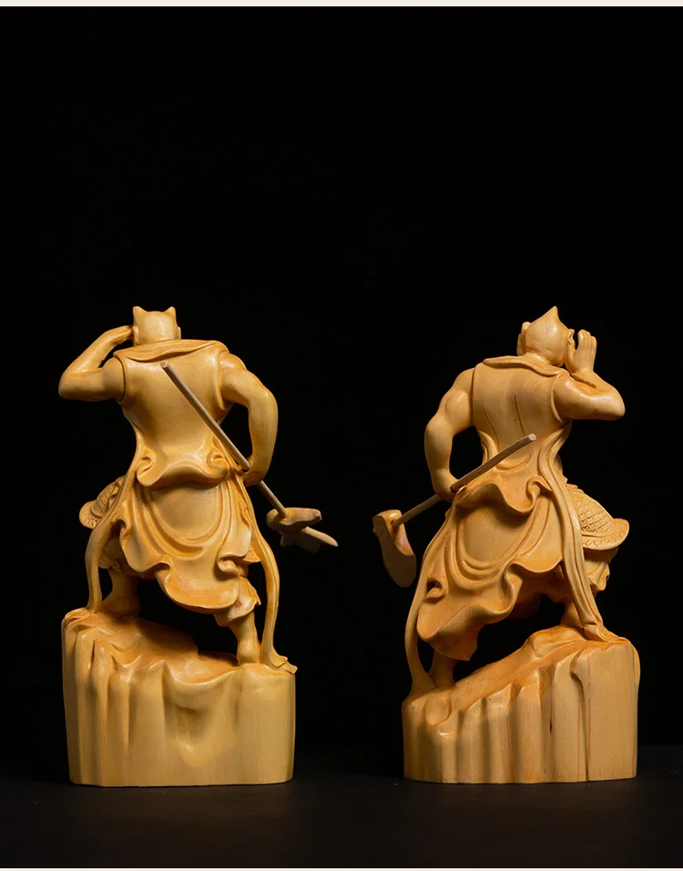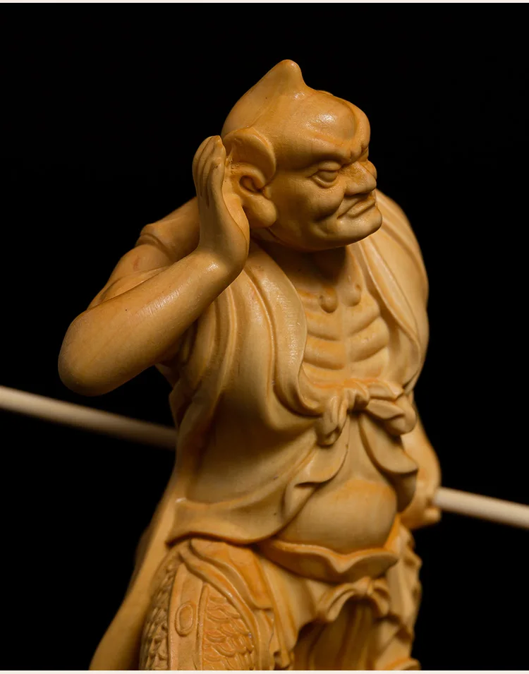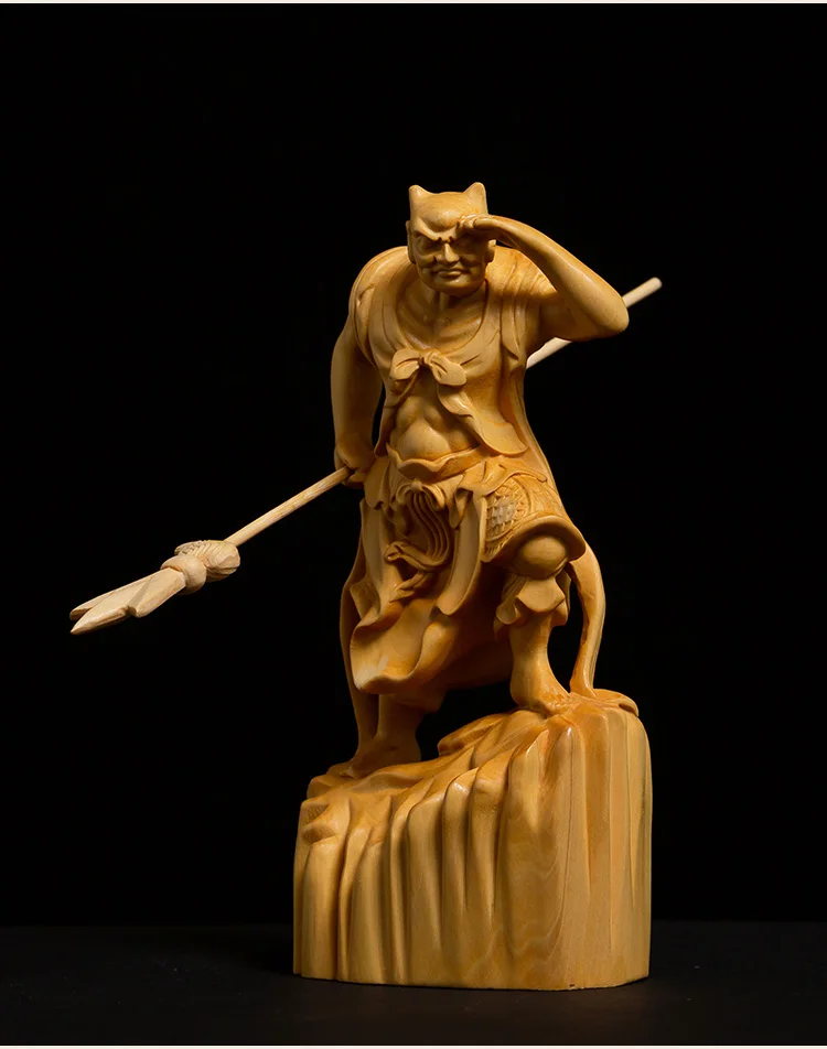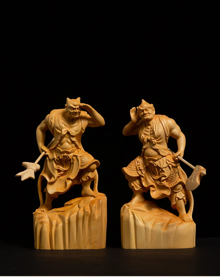Boxwood 11cm Shunfeng'er Qianliyan Sculpture Wood Carving Buddha Statue Door God Home Decor