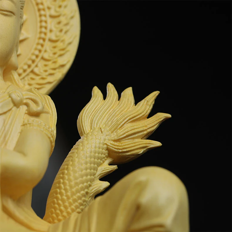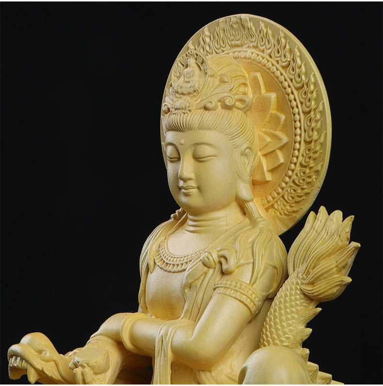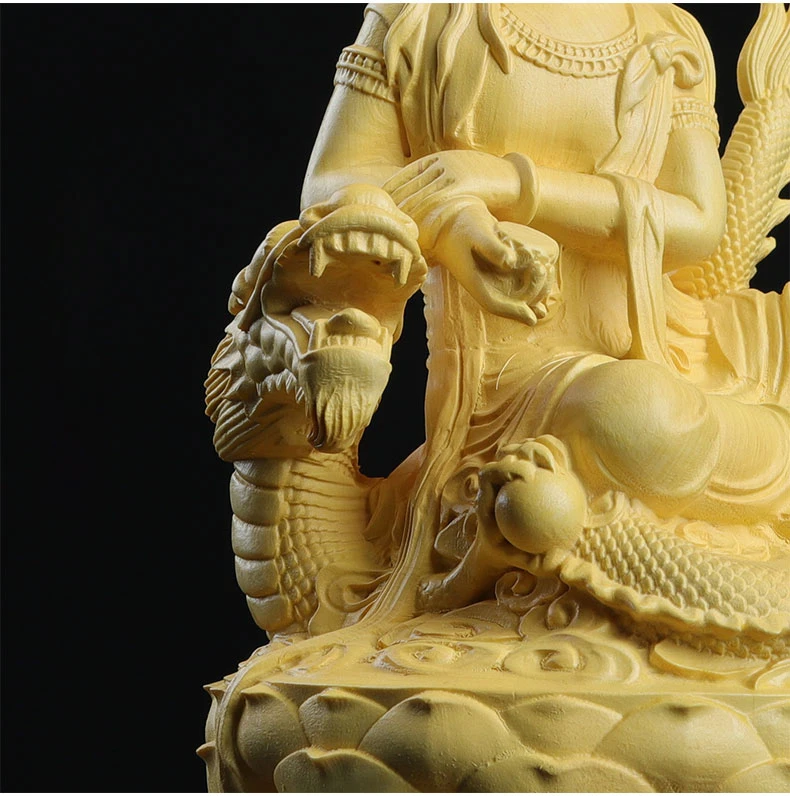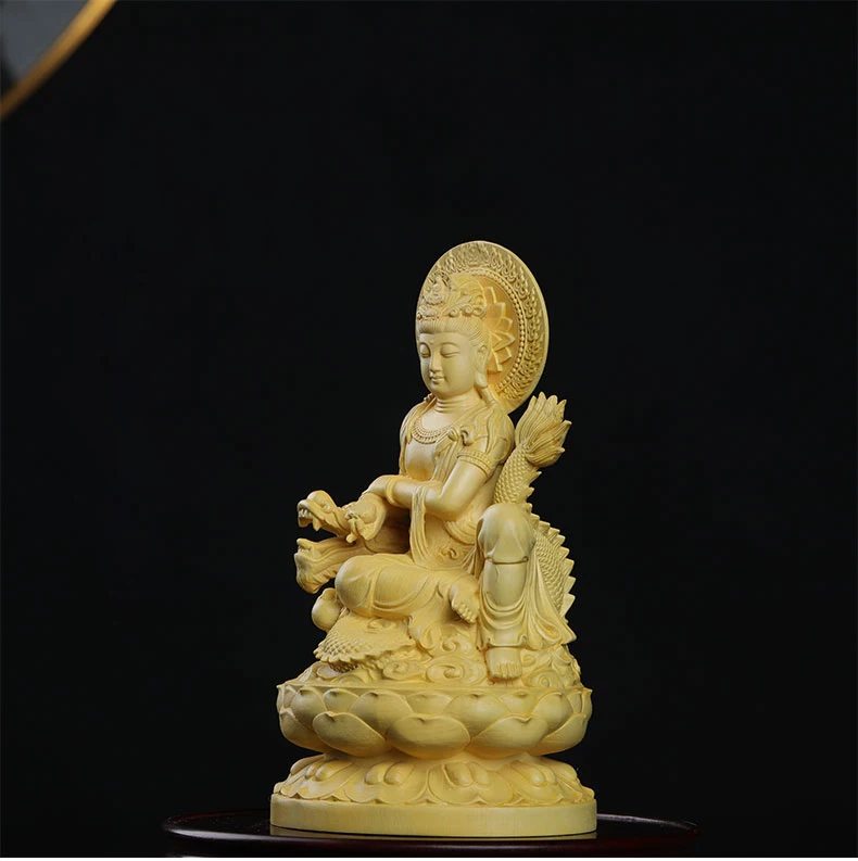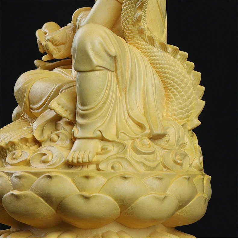 Boxwood 13cm Dragon Guanyin Sculpture Wood Buddha Statue Guan Yin Lucky Worship Feng Shui Home Decor