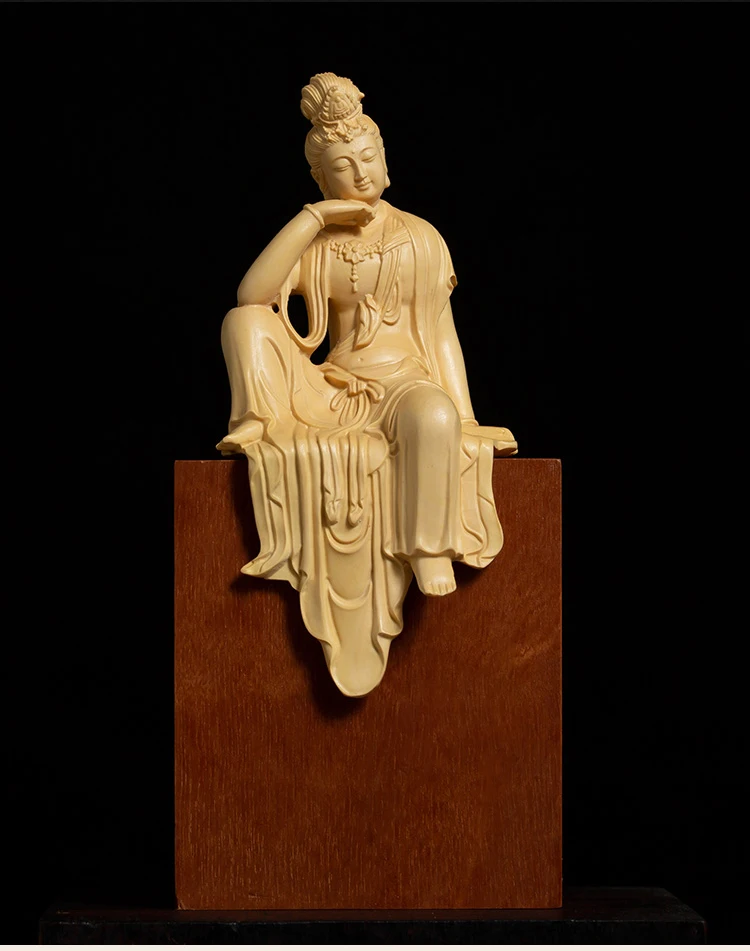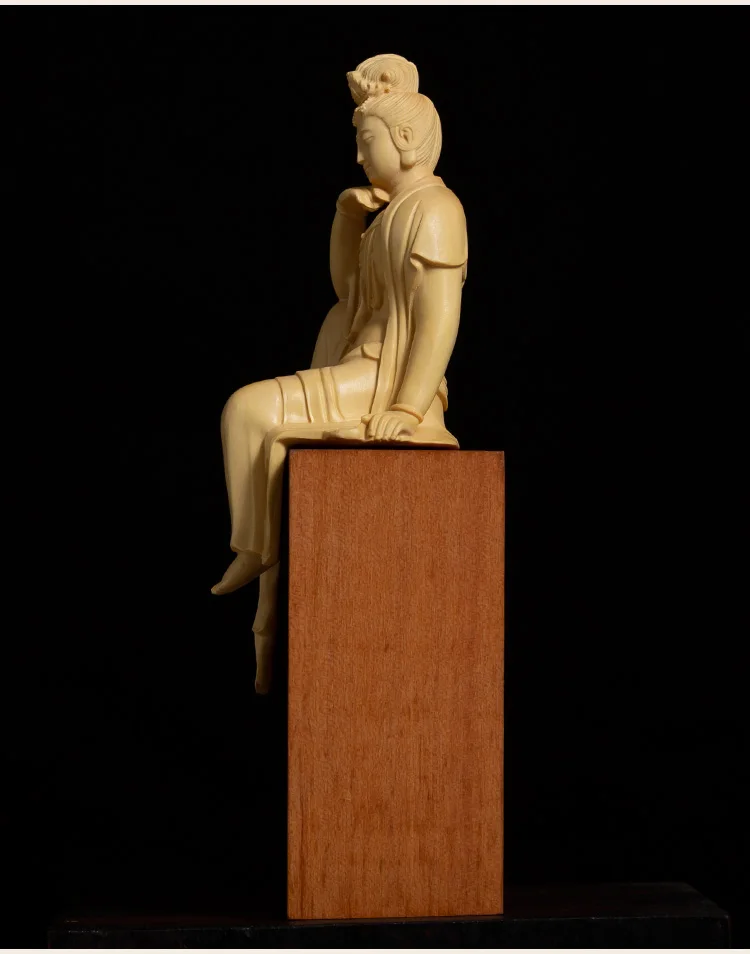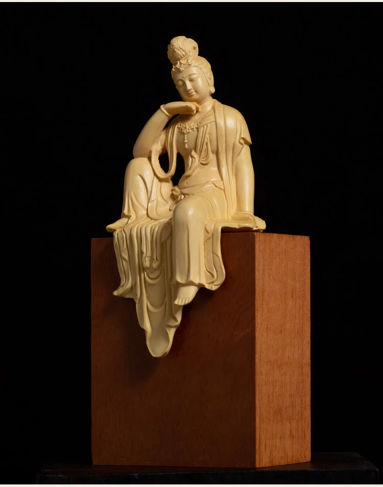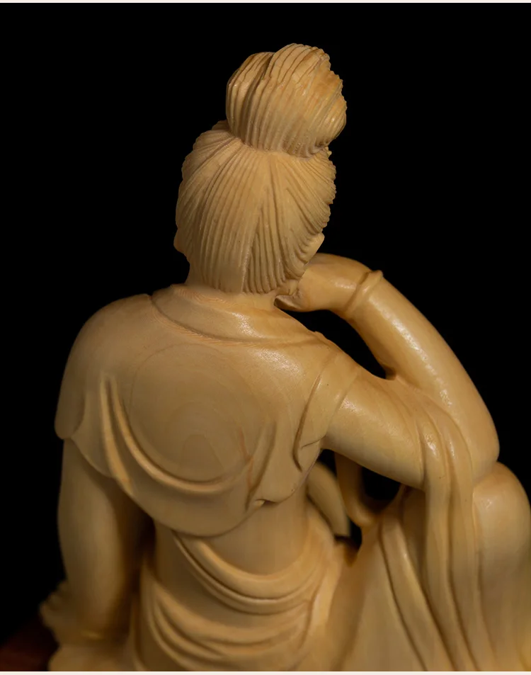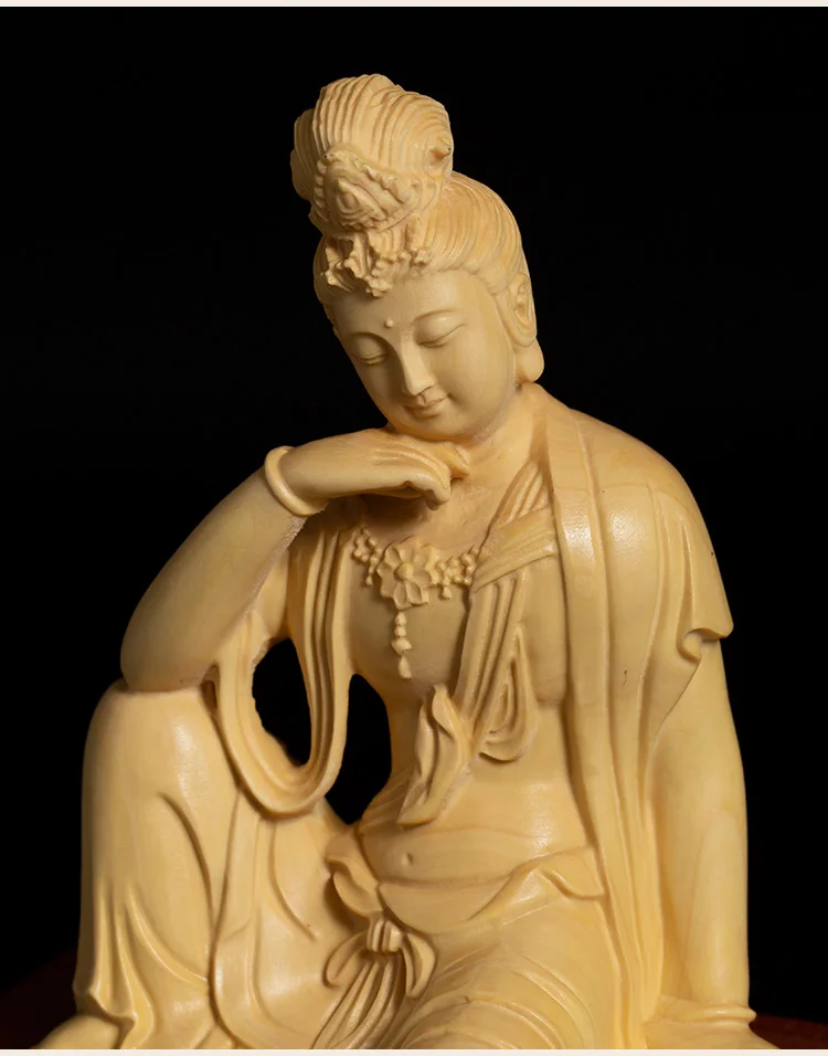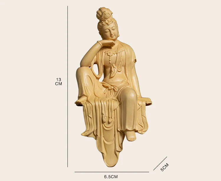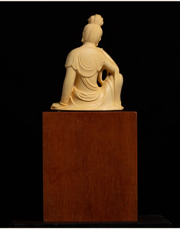Boxwood 13cm Guanyin Bodhisattva Buddha Wood Statue Mascot Myth Figure Statue Home Decor Wood Sculpture