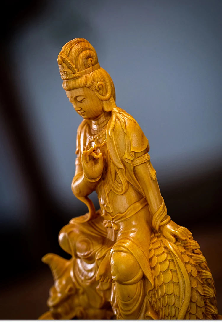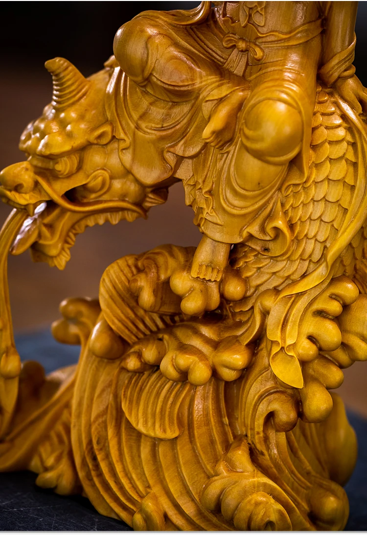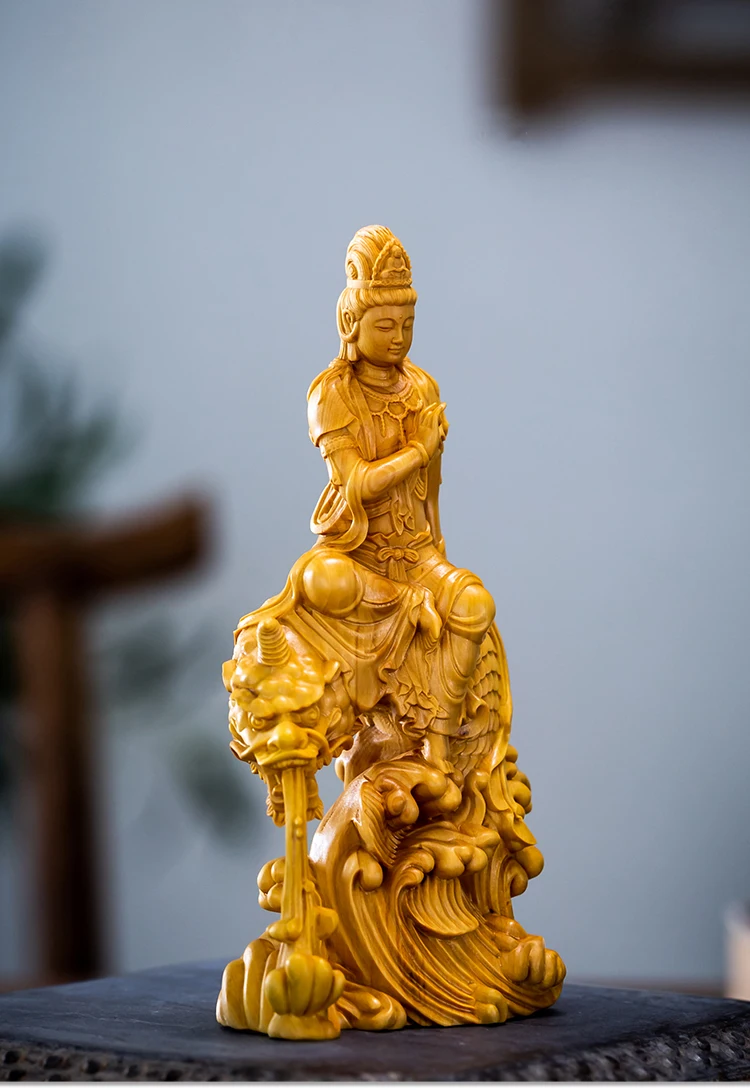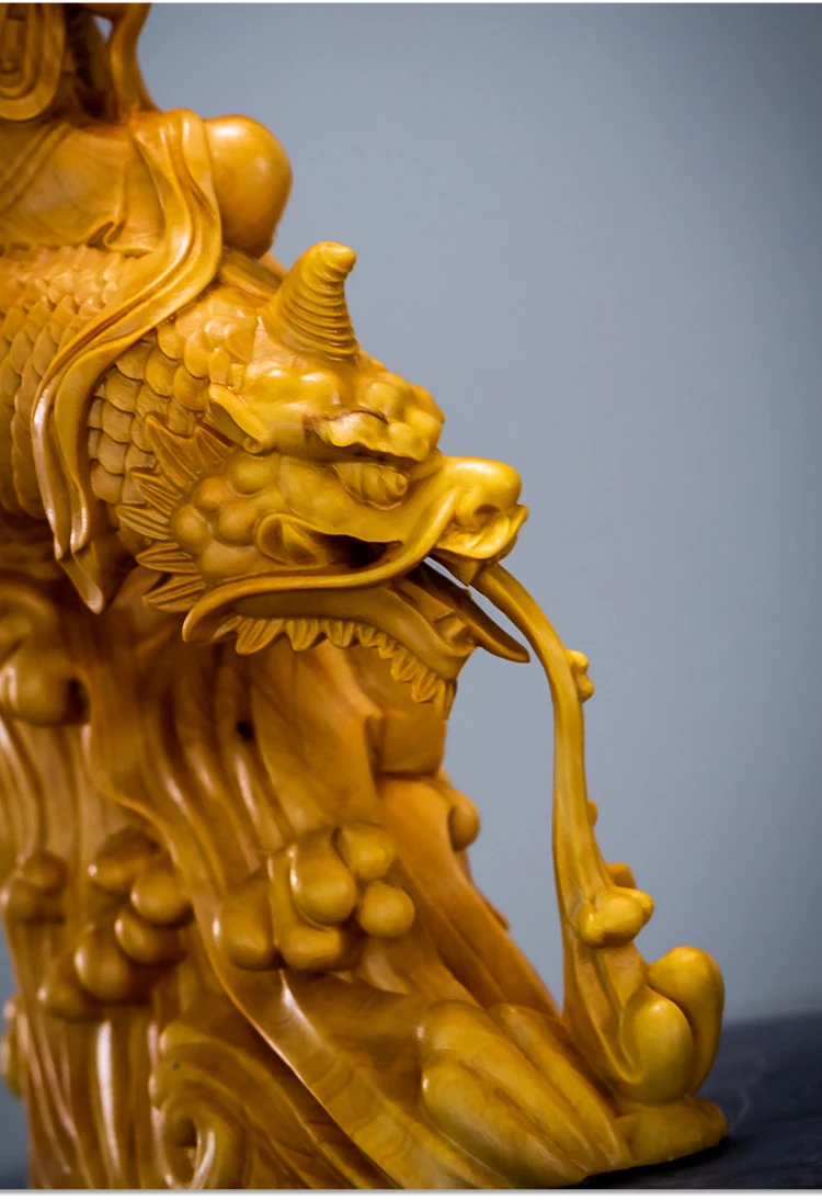 Boxwood 15cm Guan Yin Wood Buddha Statue Dragon Guanyin Bodhisattva Feng Shui