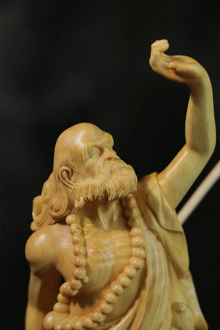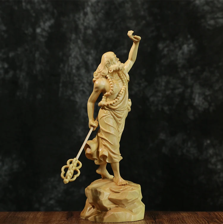 Boxwood 20cm Dharma Wood Carving Zen Buddha Statue Master Feng Shui Sculpture Home Decor