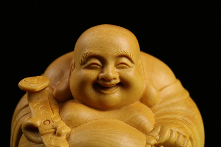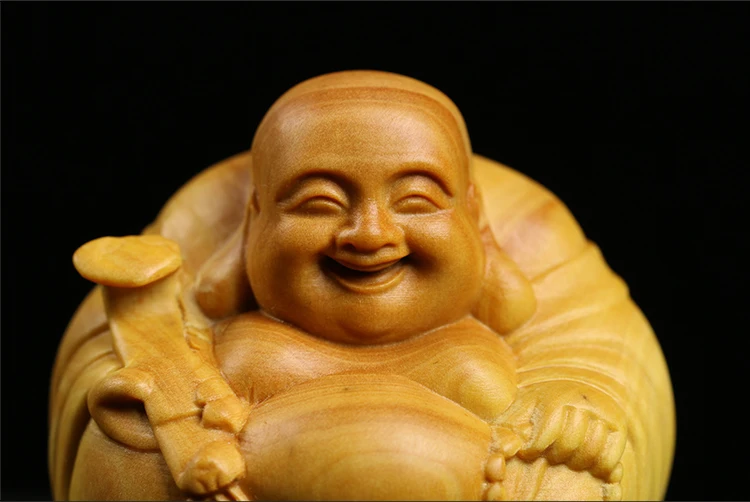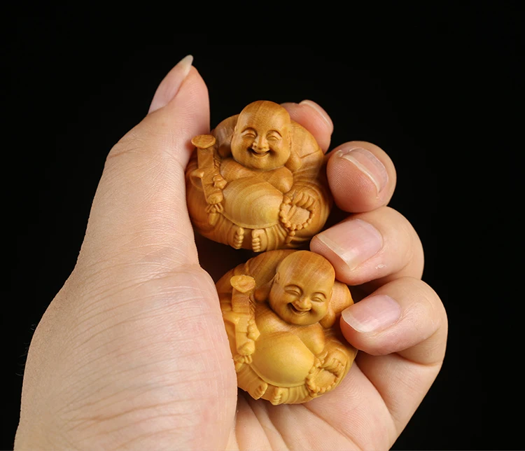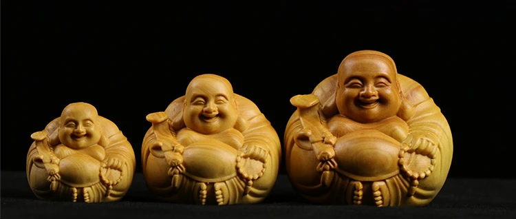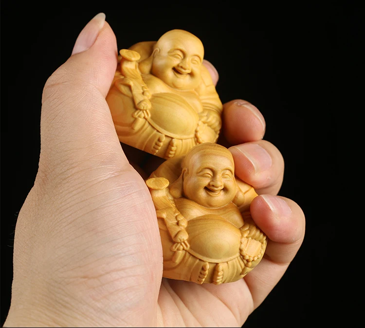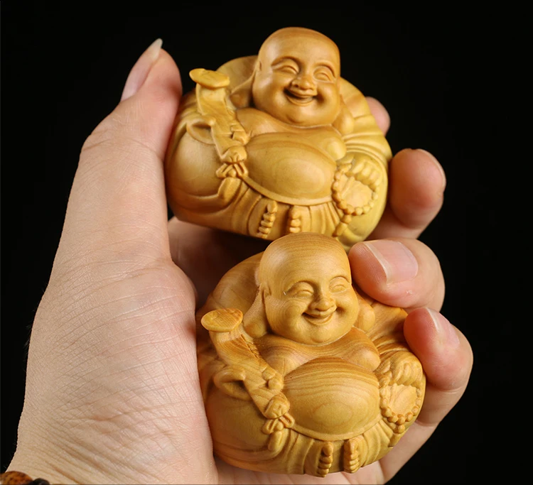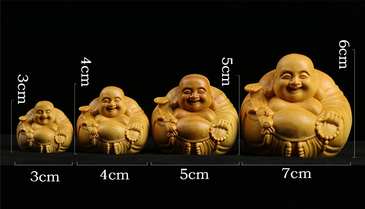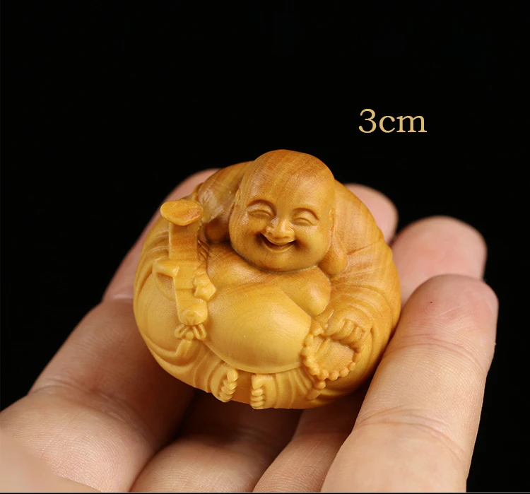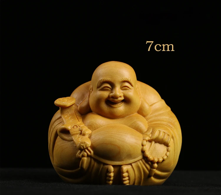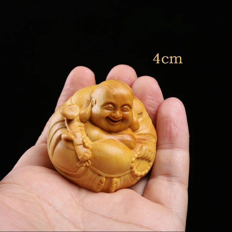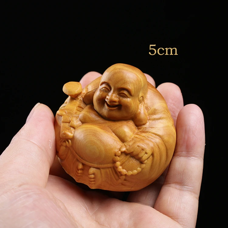 Boxwood 3 4 5 7cm Maitreya Sculpture Wood Carving Buddha Statue Laughing Buddha Home Decor