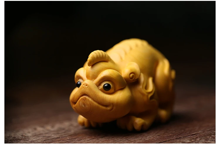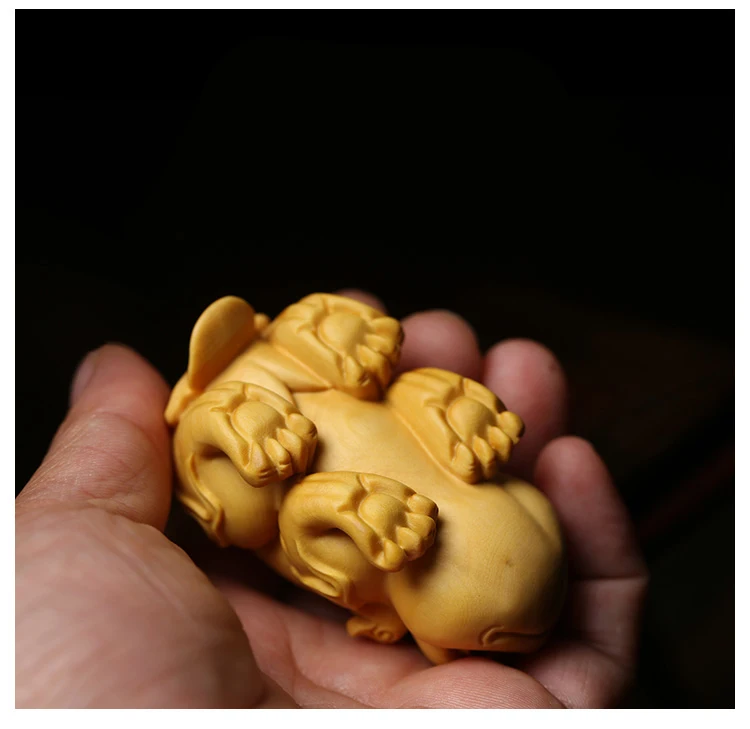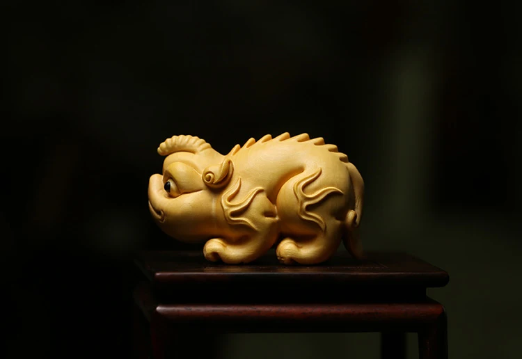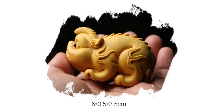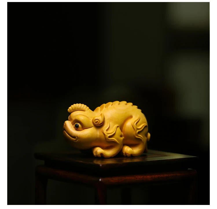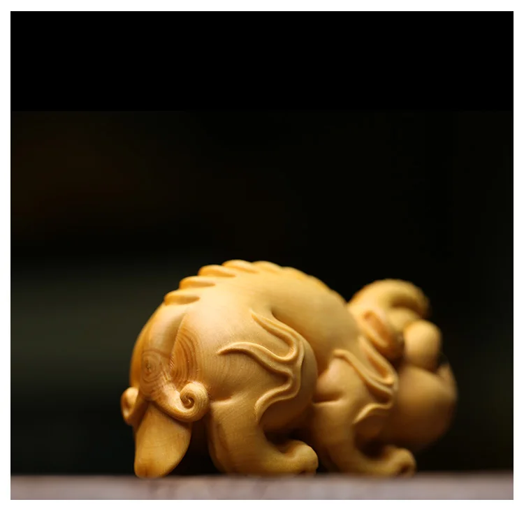 Boxwood 6cm Chinese Unicorn Sculpture Animal Wood Statue Ancient God Beast of China Feng Shui Home Decor