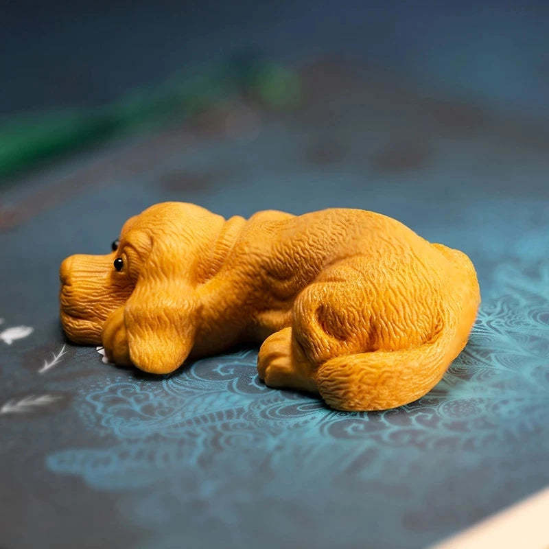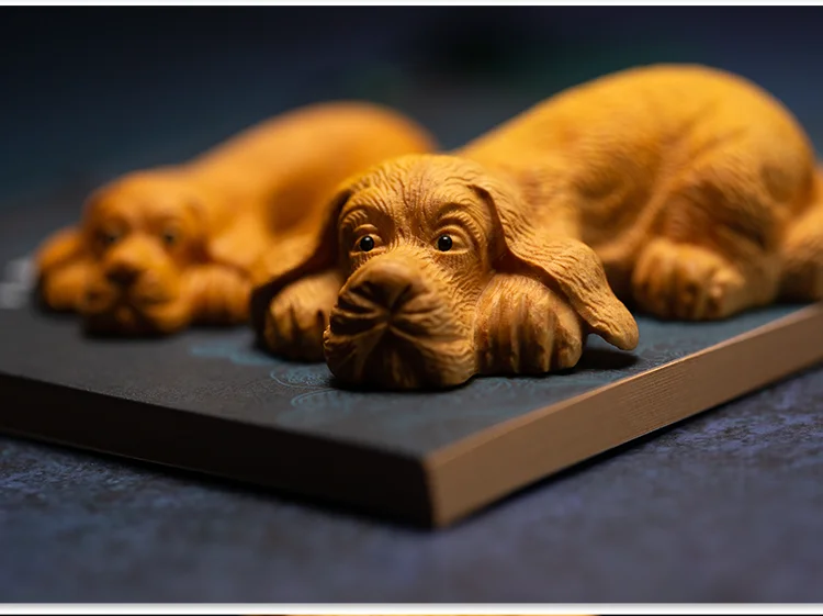 Boxwood 7cm 9cm Dog Sculpture Chinese Zodiac Animal Cute Puppy Wood Statue Home Decor