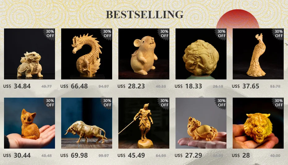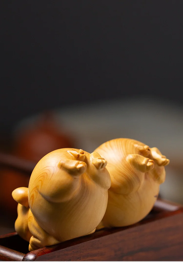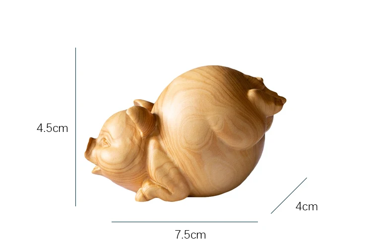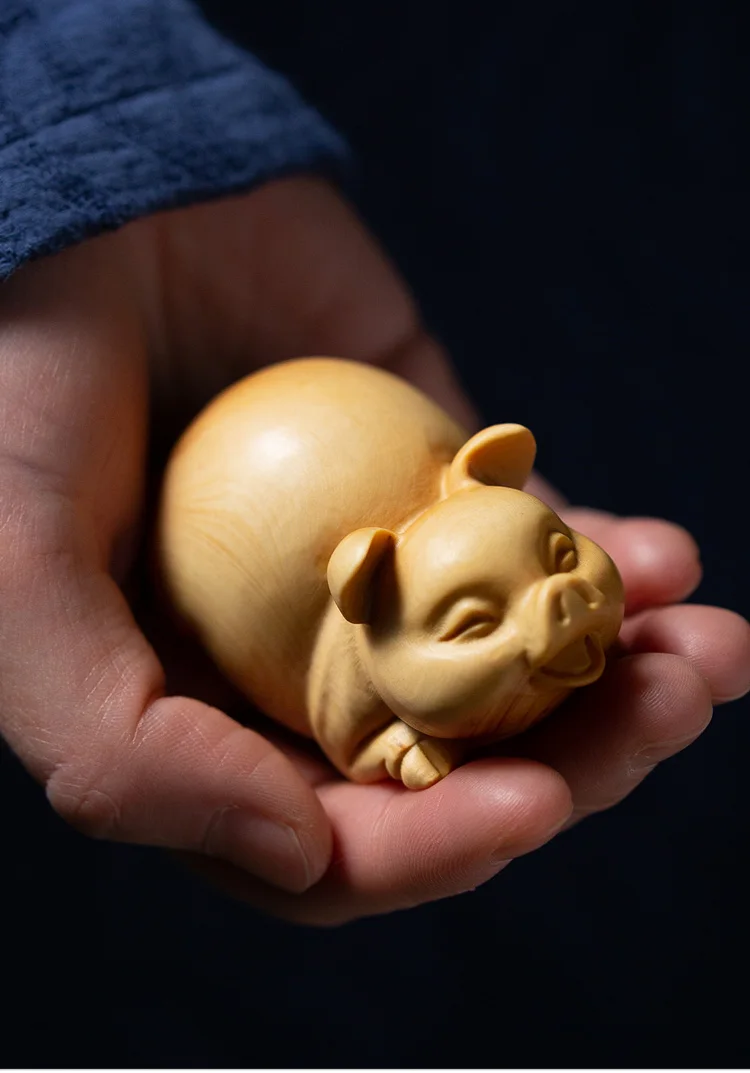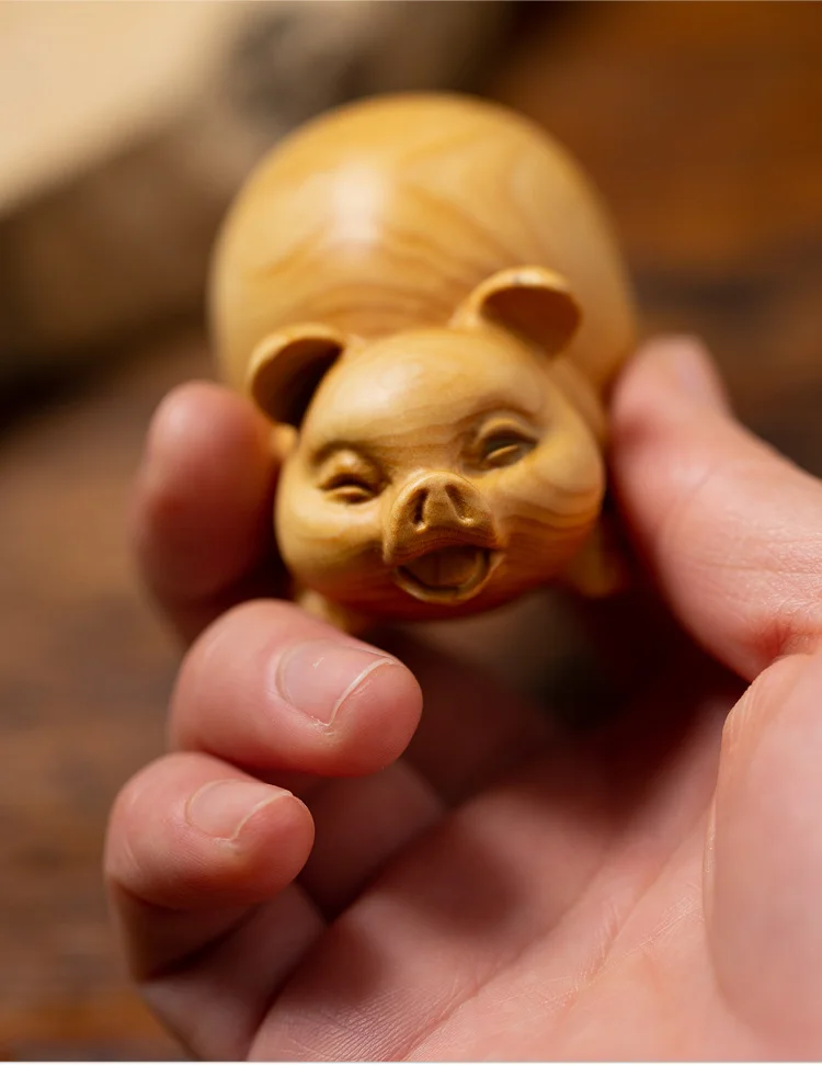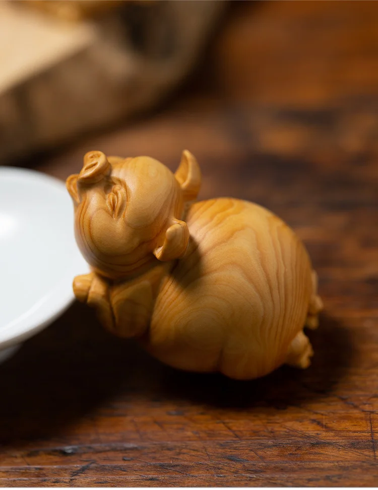 Boxwood 7CM Pig Sculpture Animal Lucky Wood Statue Chinese Zodiac Piggy Home Decor