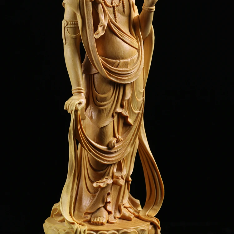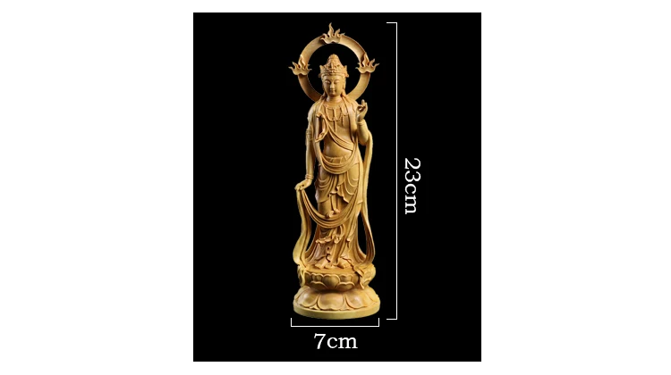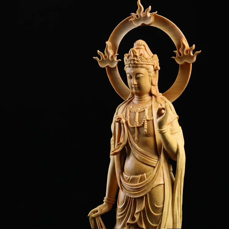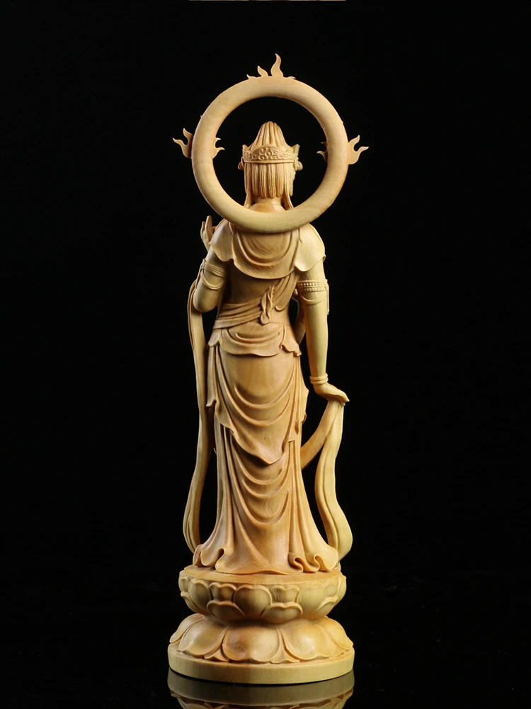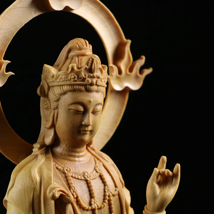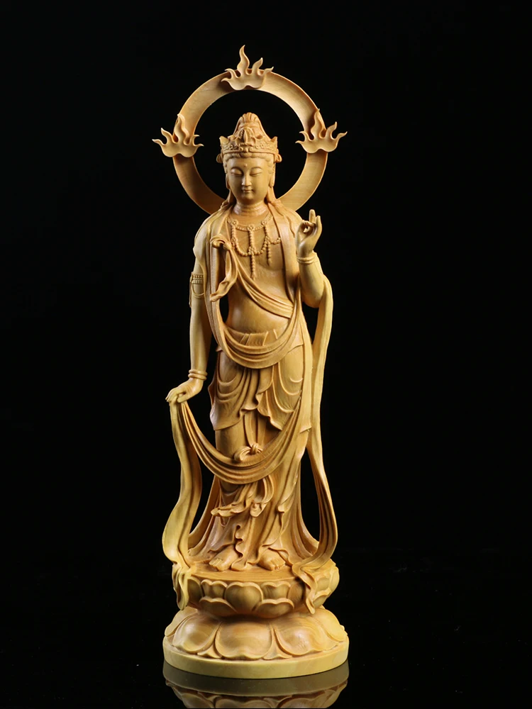 Boxwood Carving Furnishing Ornaments Wood Statue Crafts Real Wood Buddha Statue Gifts Guanyin Sculpture Home Decor