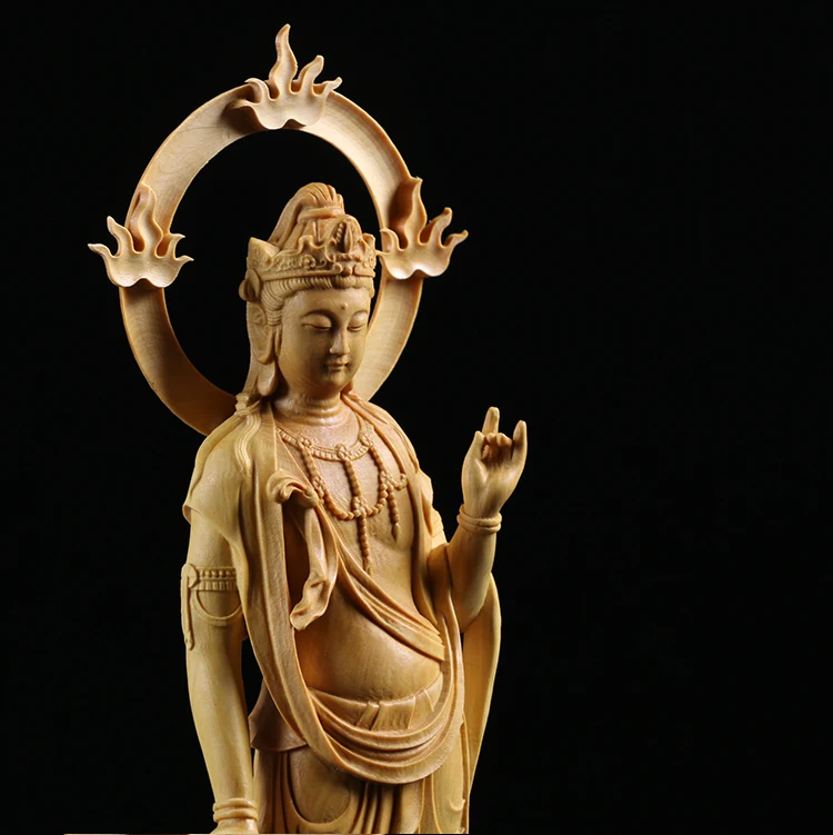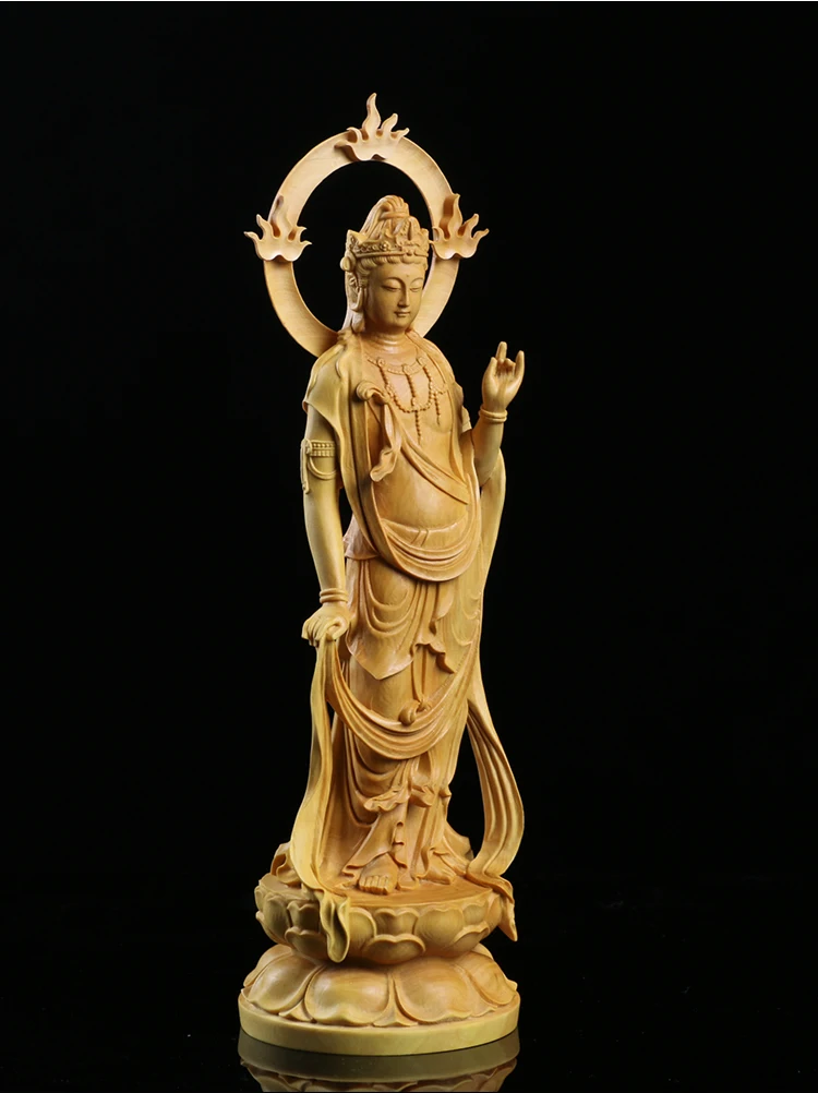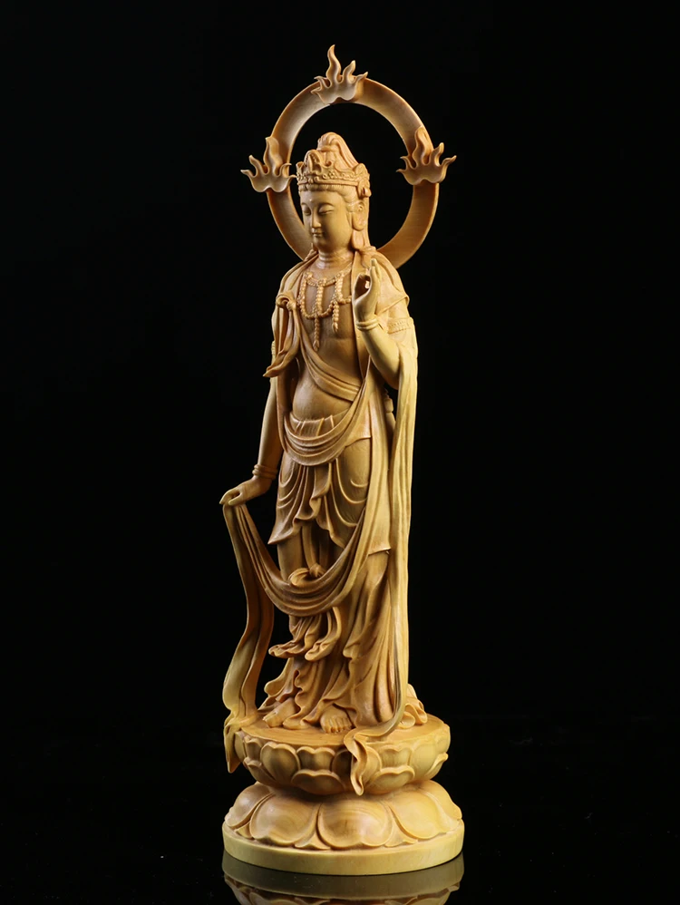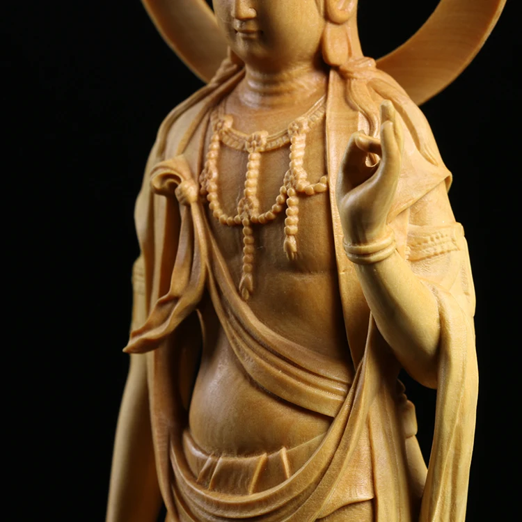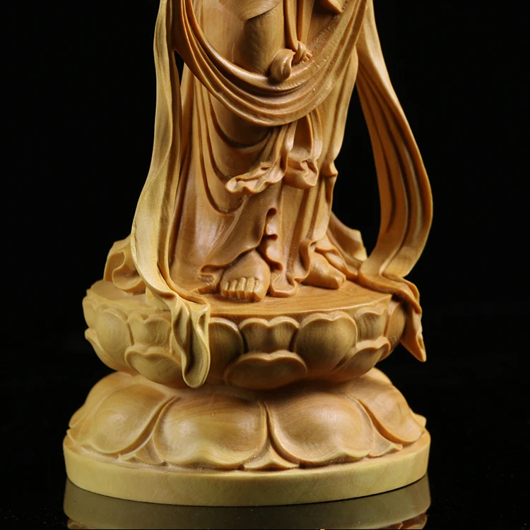 Boxwood Carving Furnishing Ornaments Wood Statue Crafts Real Wood Buddha Statue Gifts Guanyin Sculpture Home Decor
