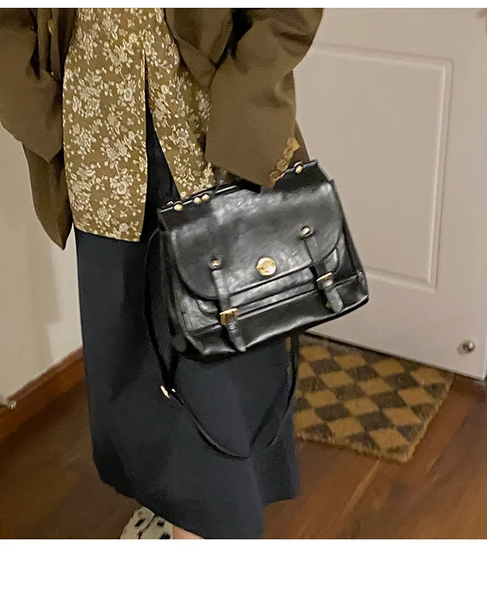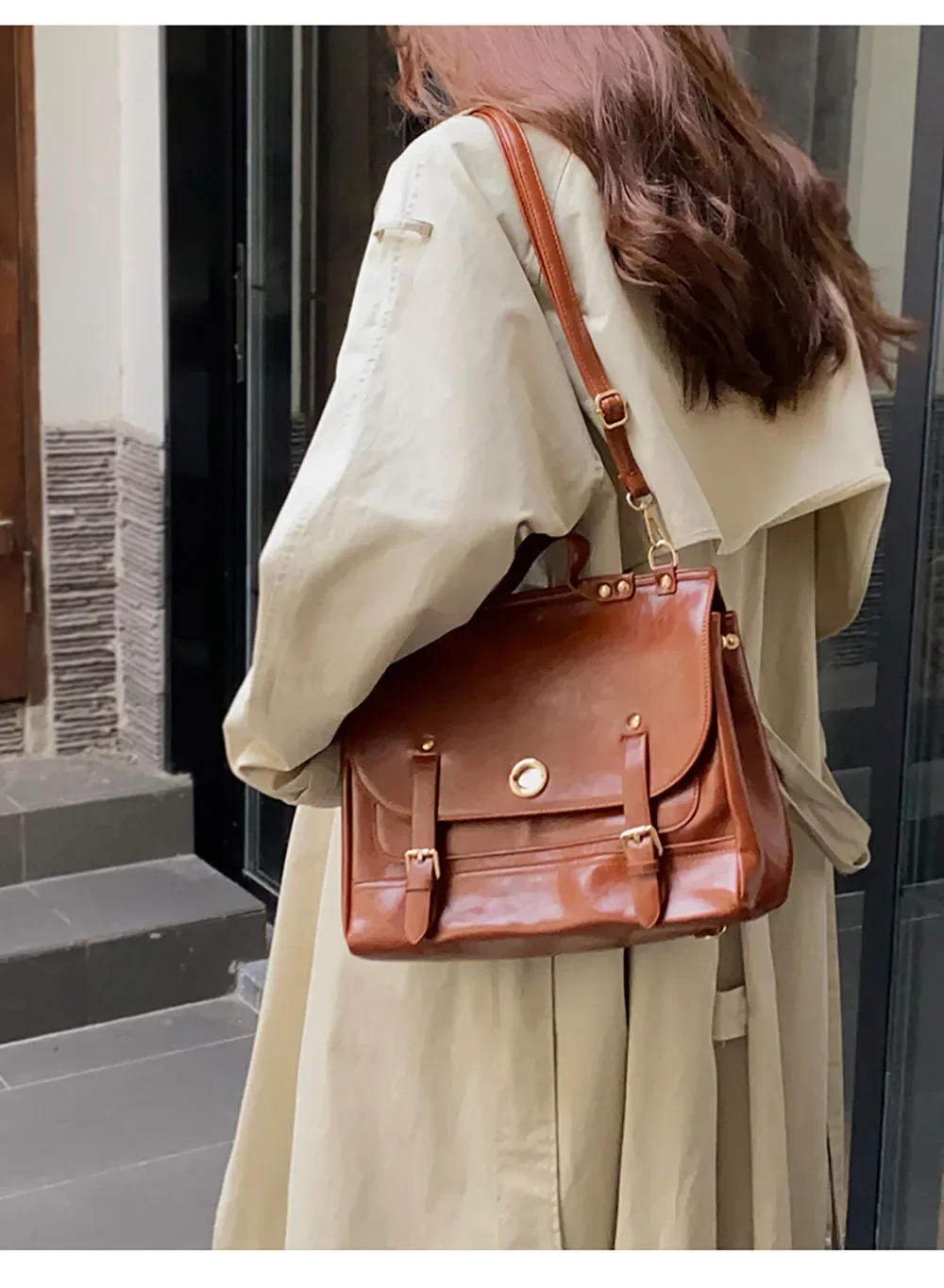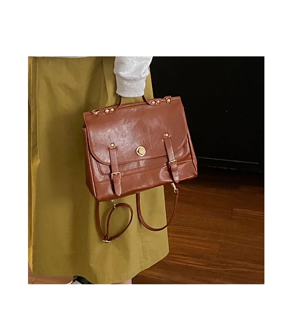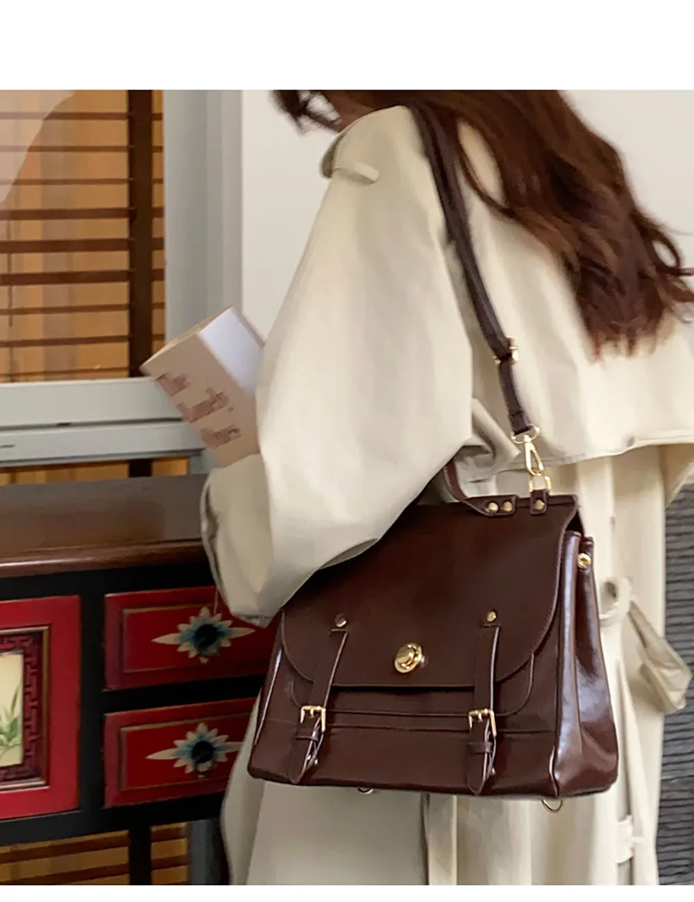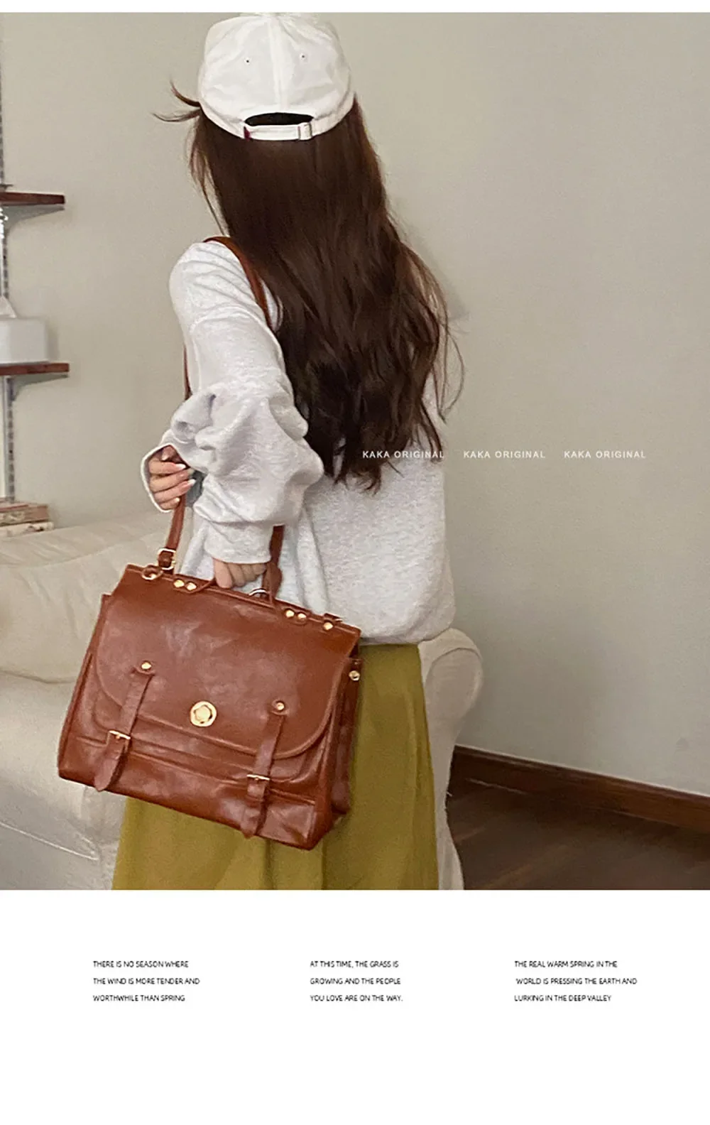 British Style Retro Postman Bag Woman New Fashion Classical Korean Version Briefcase Large Capacity Backpack PU Leather Textured