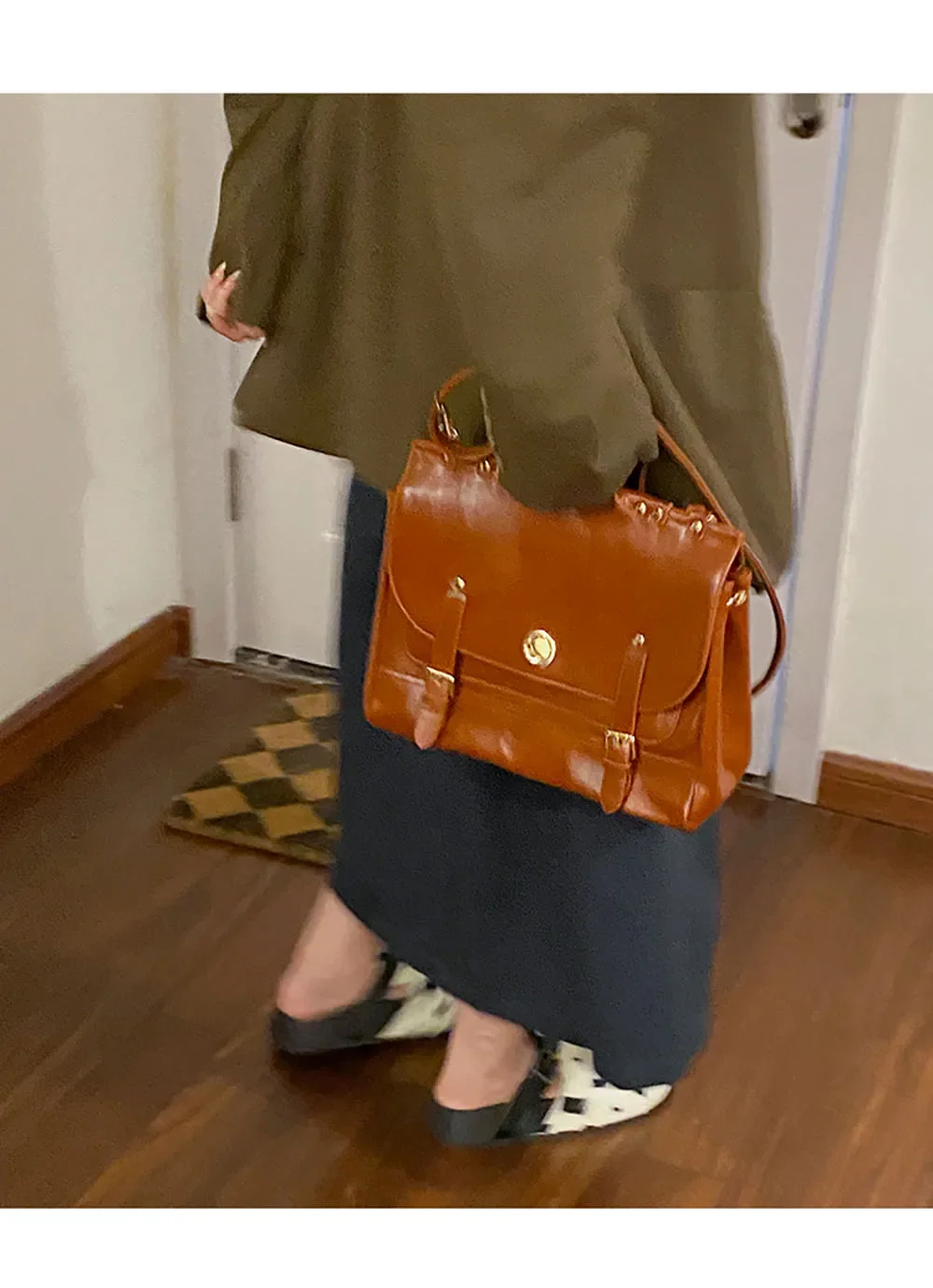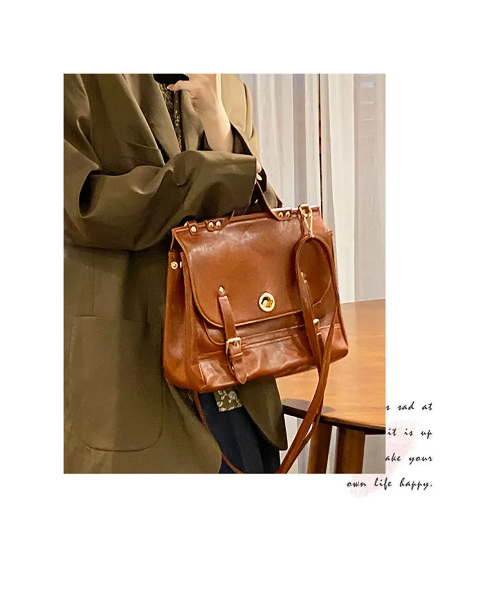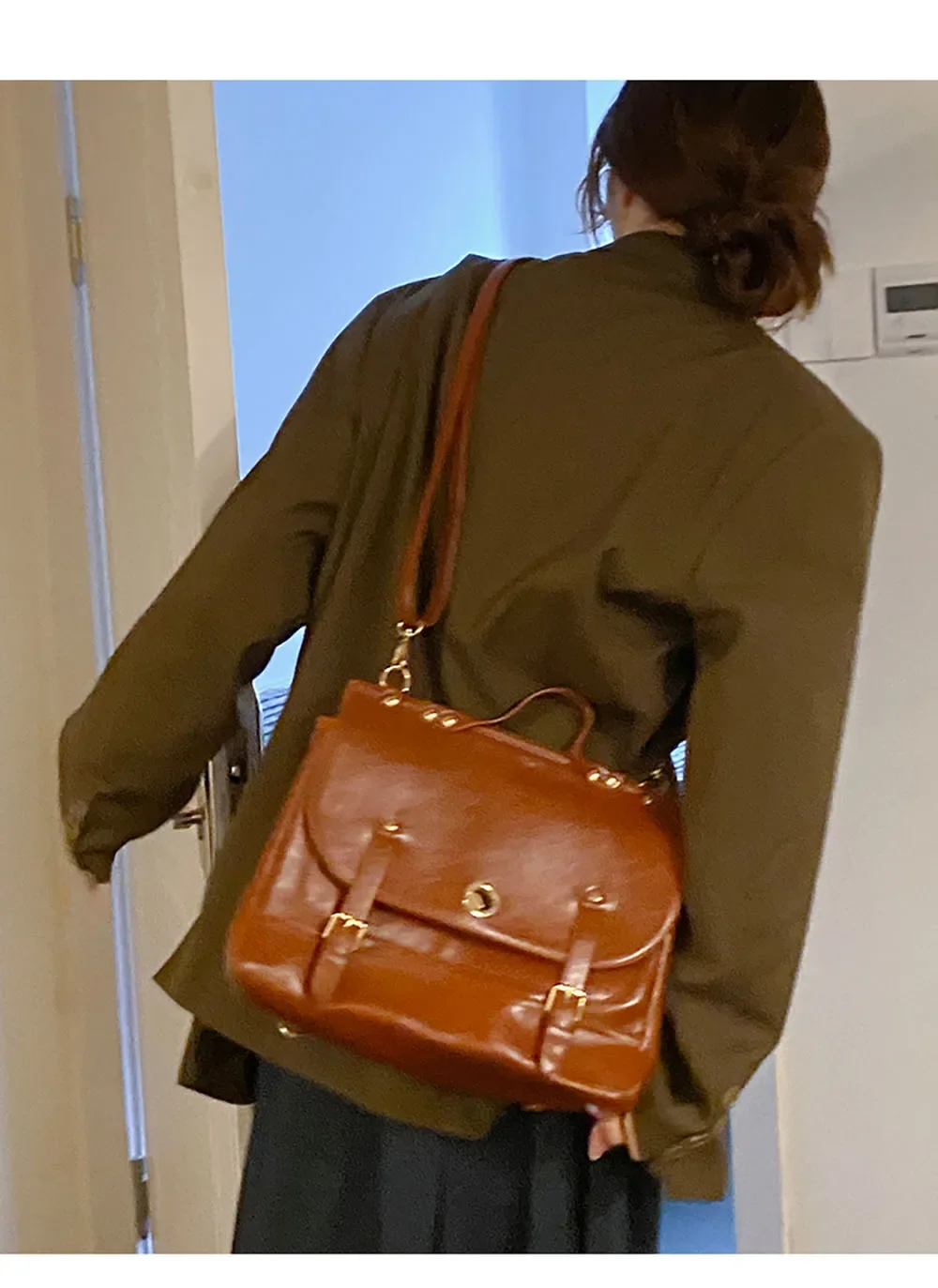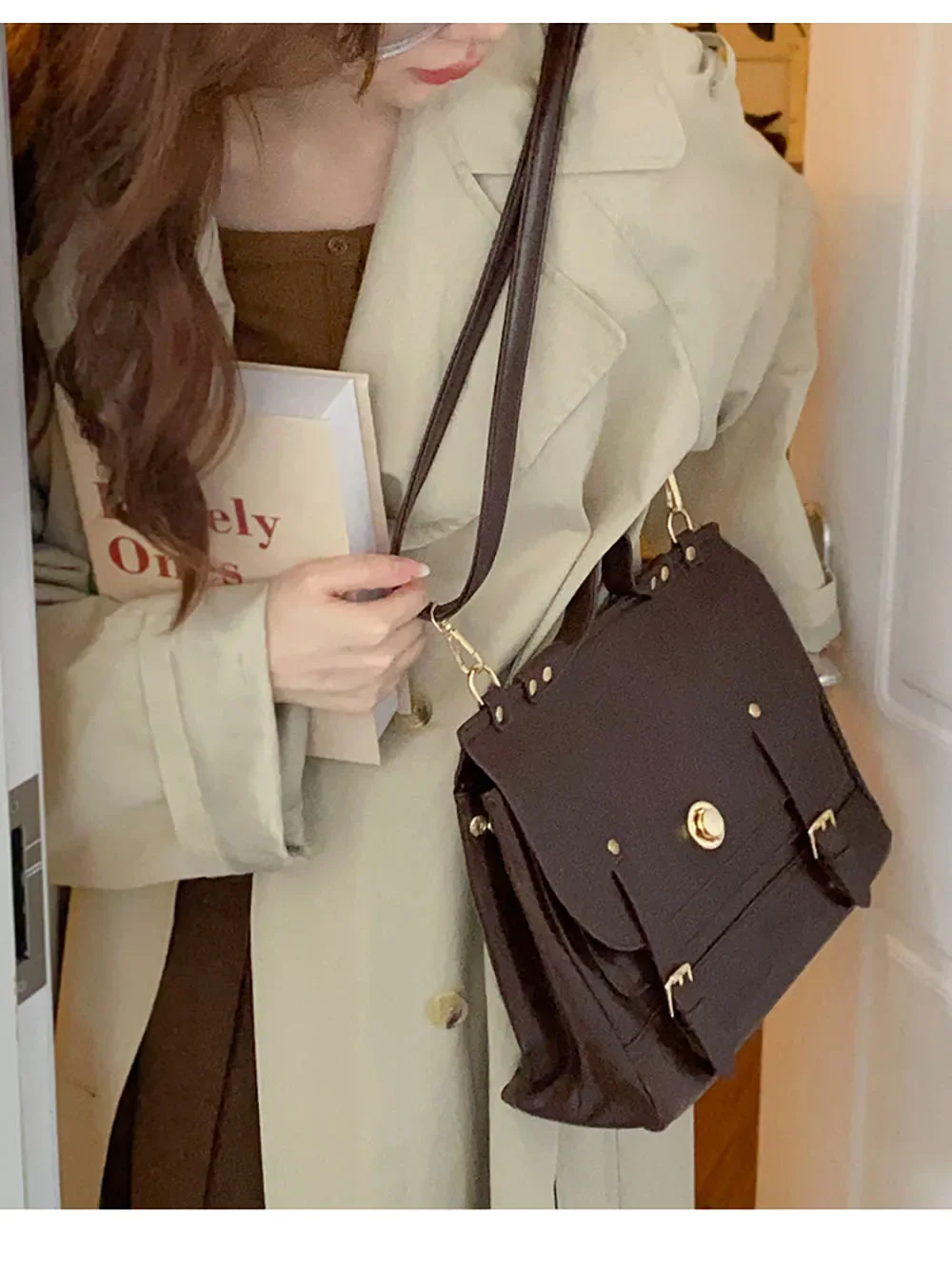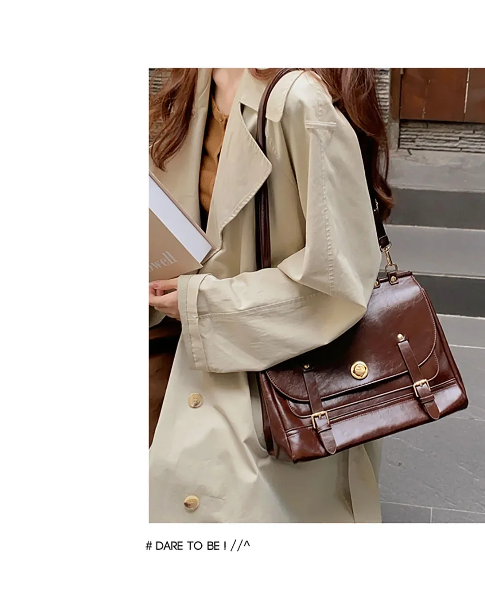 British Style Retro Postman Bag Woman New Fashion Classical Korean Version Briefcase Large Capacity Backpack PU Leather Textured