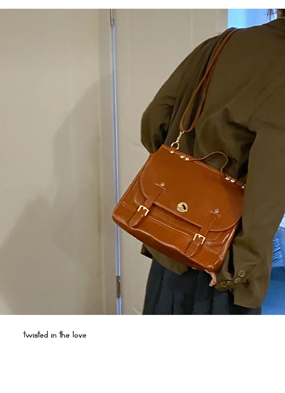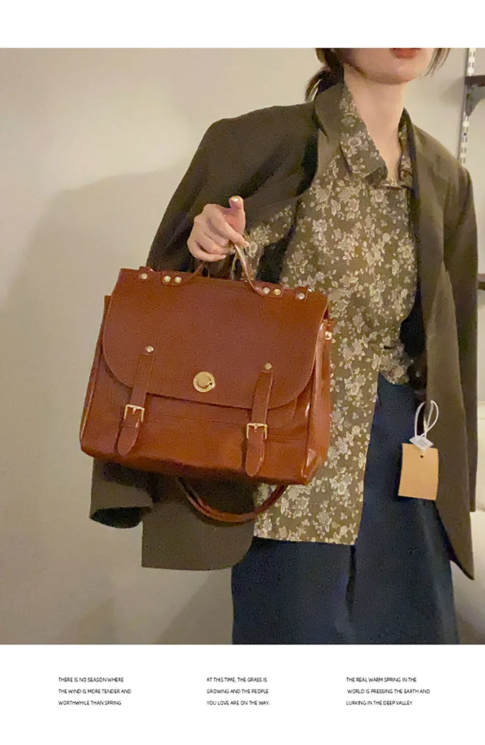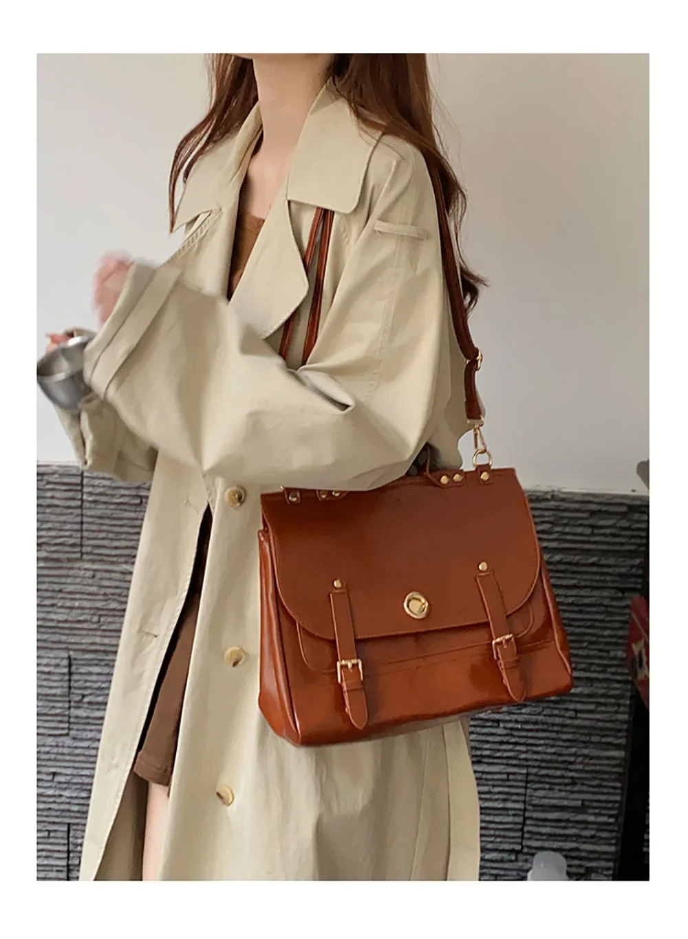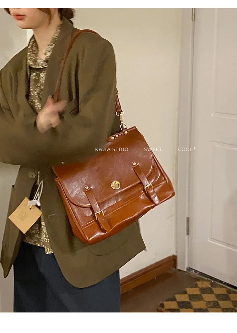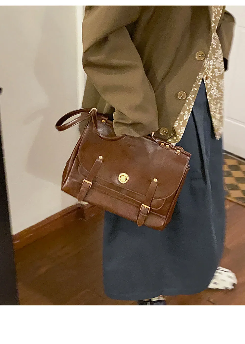 British Style Retro Postman Bag Woman New Fashion Classical Korean Version Briefcase Large Capacity Backpack PU Leather Textured