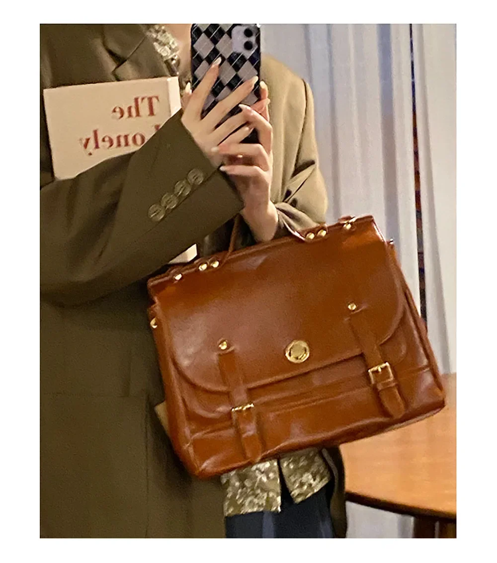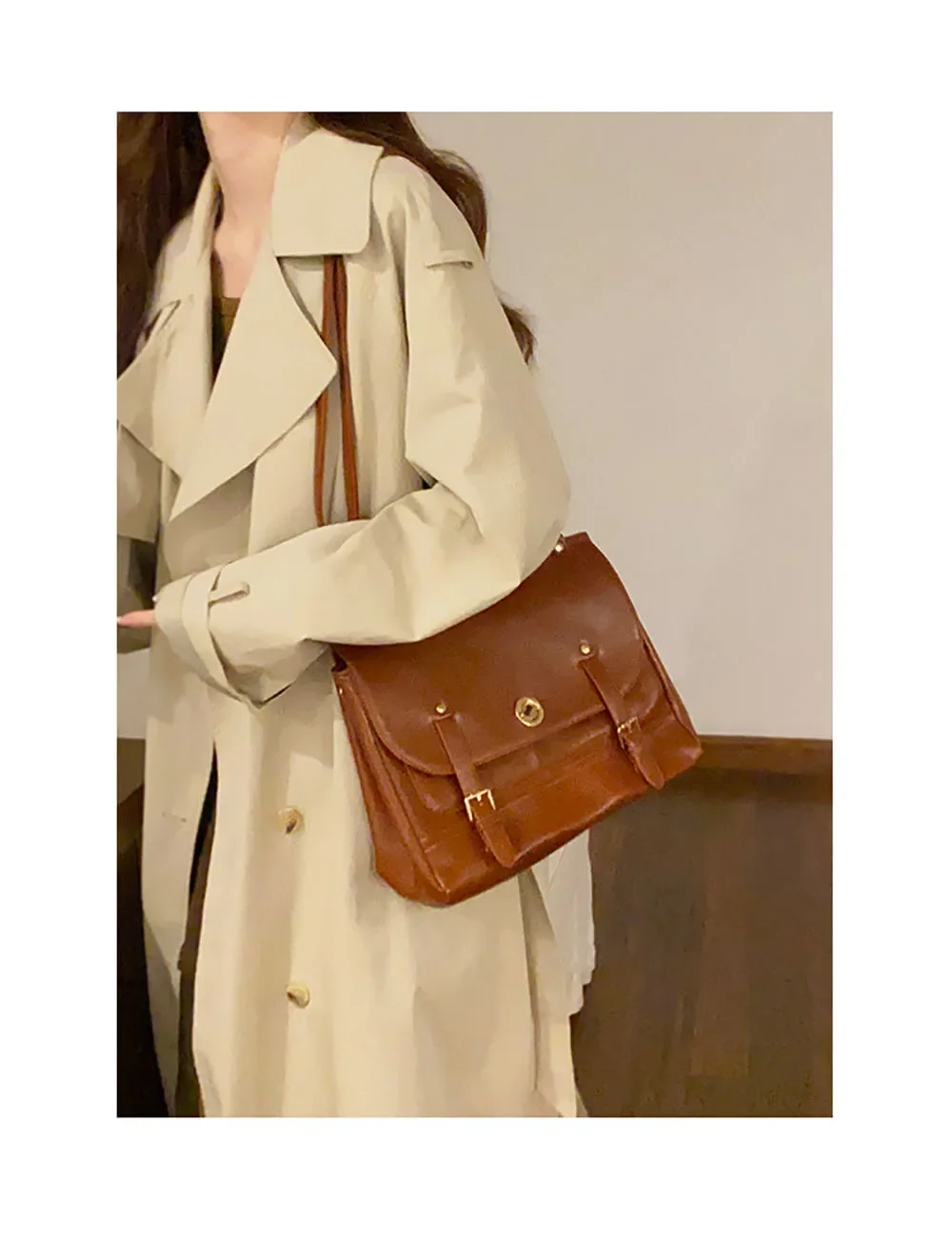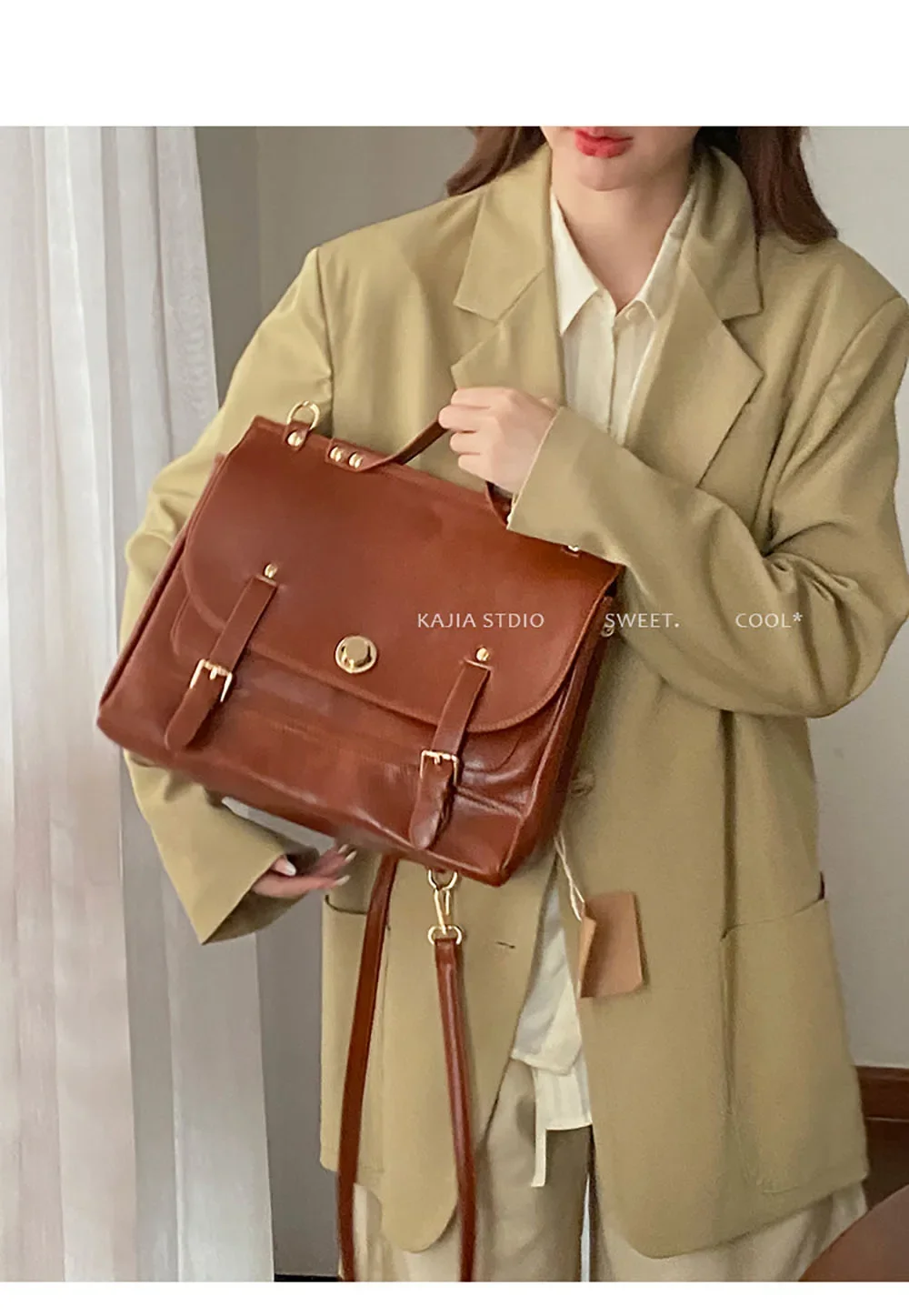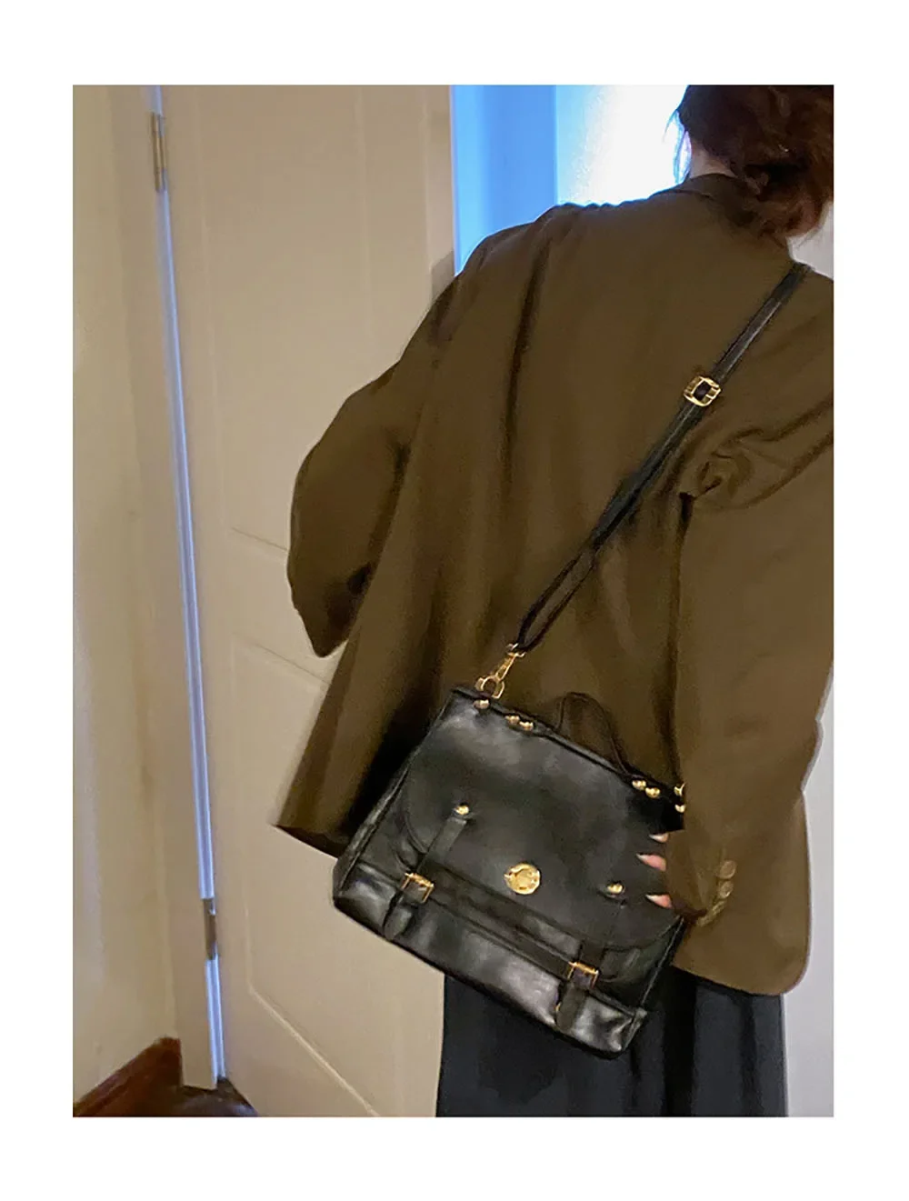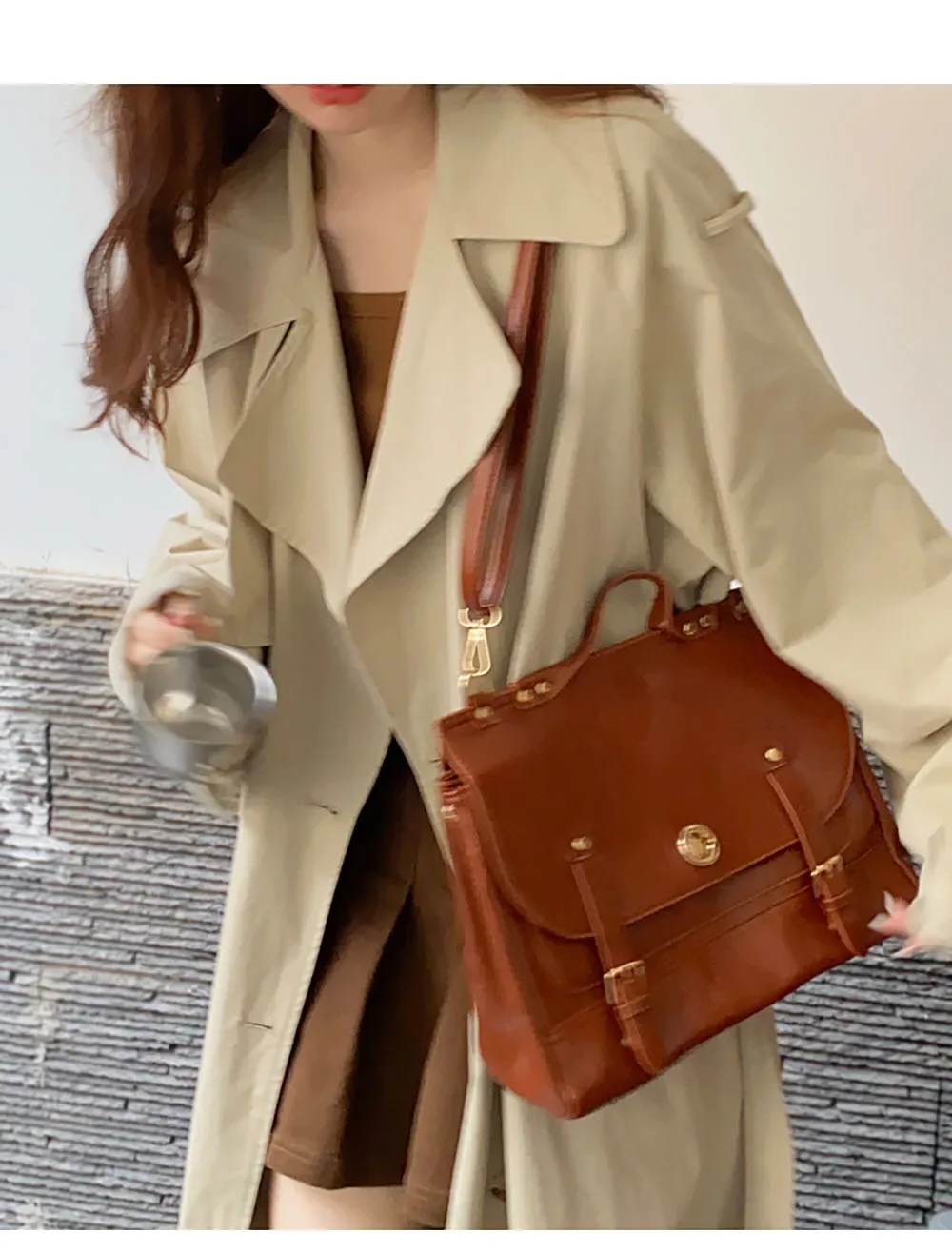 British Style Retro Postman Bag Woman New Fashion Classical Korean Version Briefcase Large Capacity Backpack PU Leather Textured